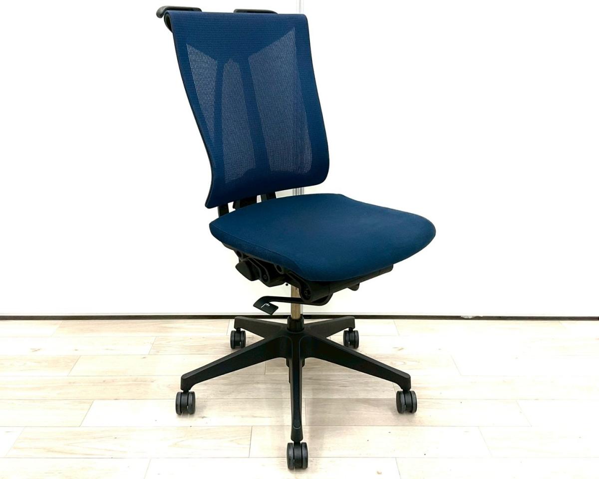 【クレジット決済優先】【2脚限定】【定価約12万円】イトーキ製 セレーオシリーズ ネイビーブルー ブラックフレーム メッシュ背面 ハンガー付 座るとわかる快適さ・骨盤にしっかりフィットする! チェア自らが動き座る人の体を支える「おもてなし」の心を体現した高級チェア! 肘無しハイバックチェア!! オフィスバスターズ 梅田本店