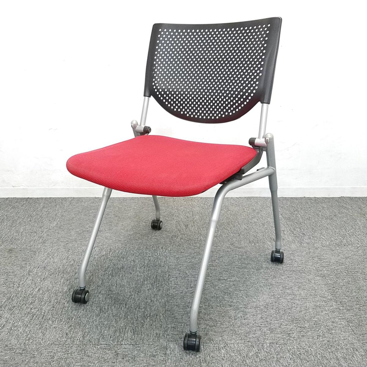 【関西倉庫在庫】 オカムラ プロスタック レッド 明るいカラーのネスティングチェアが入荷 折畳み可能 【自弊社使用欄:A01023656】- 全店共通商品