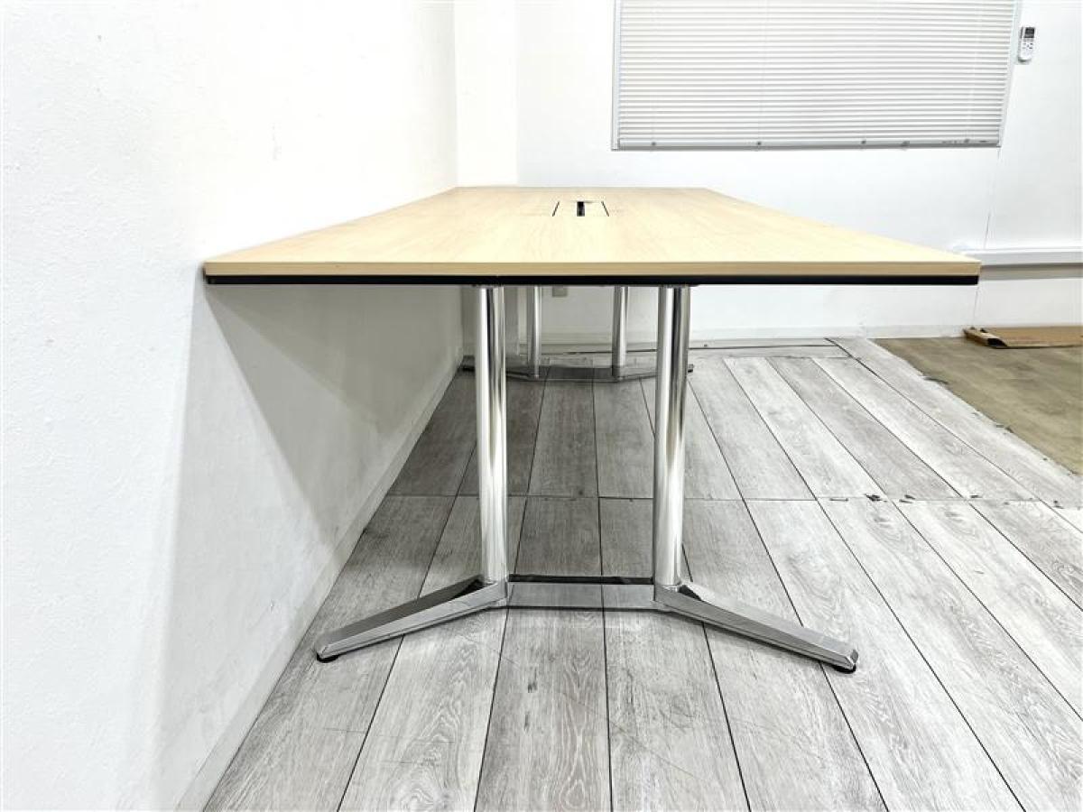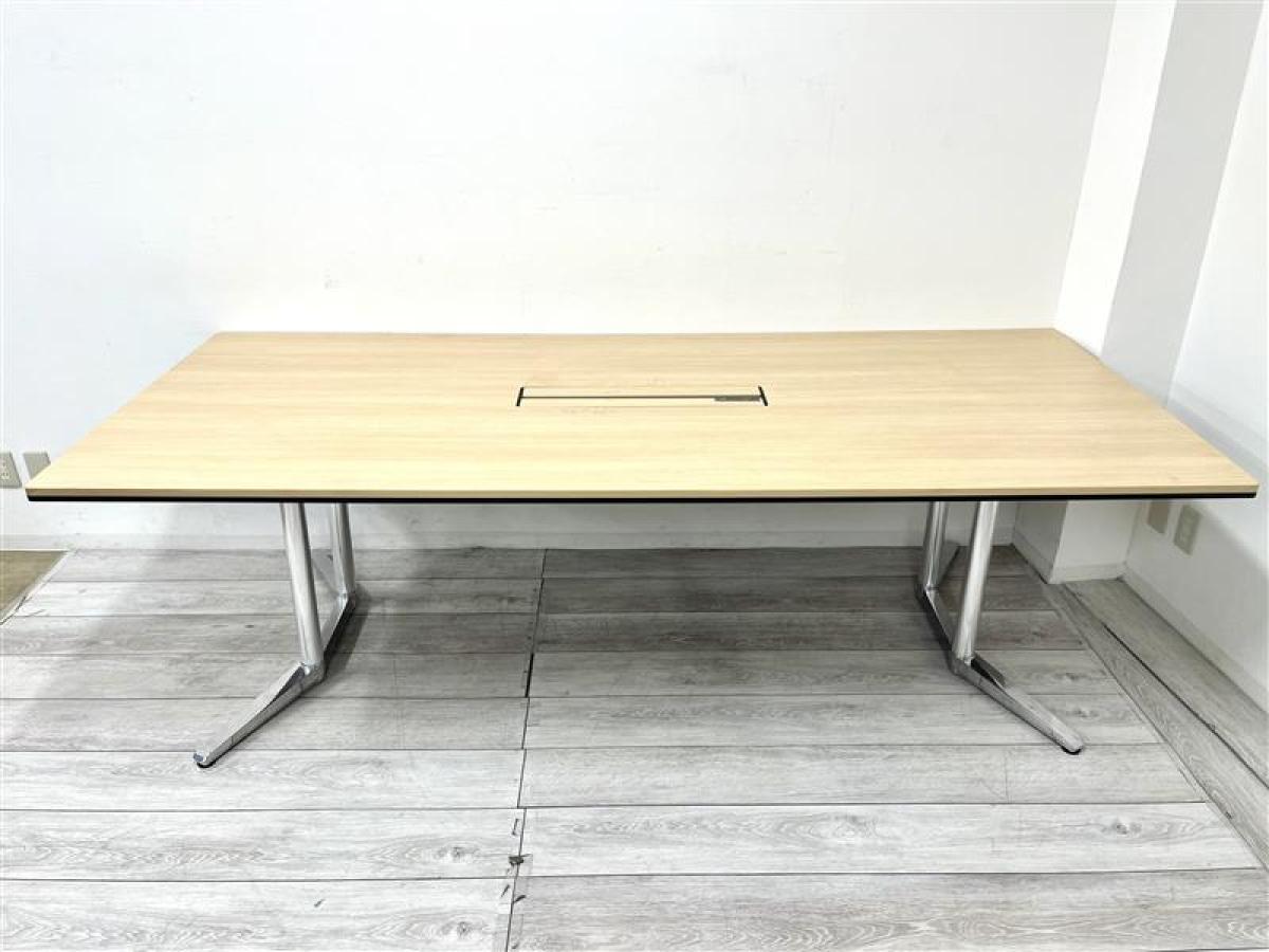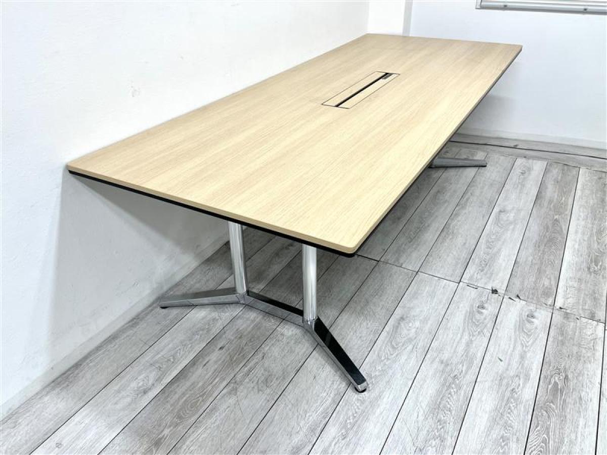 【定価約20万円以上】【木目天板!人気なオカムラ性ラティオシリーズのミーティングテーブル!】■オカムラ/ラティオ ■ナチュラル ■配線カバー付き ■応接室/会議室/ミーティングテーブル ■8~10人使用におすすめ!- 仙台店