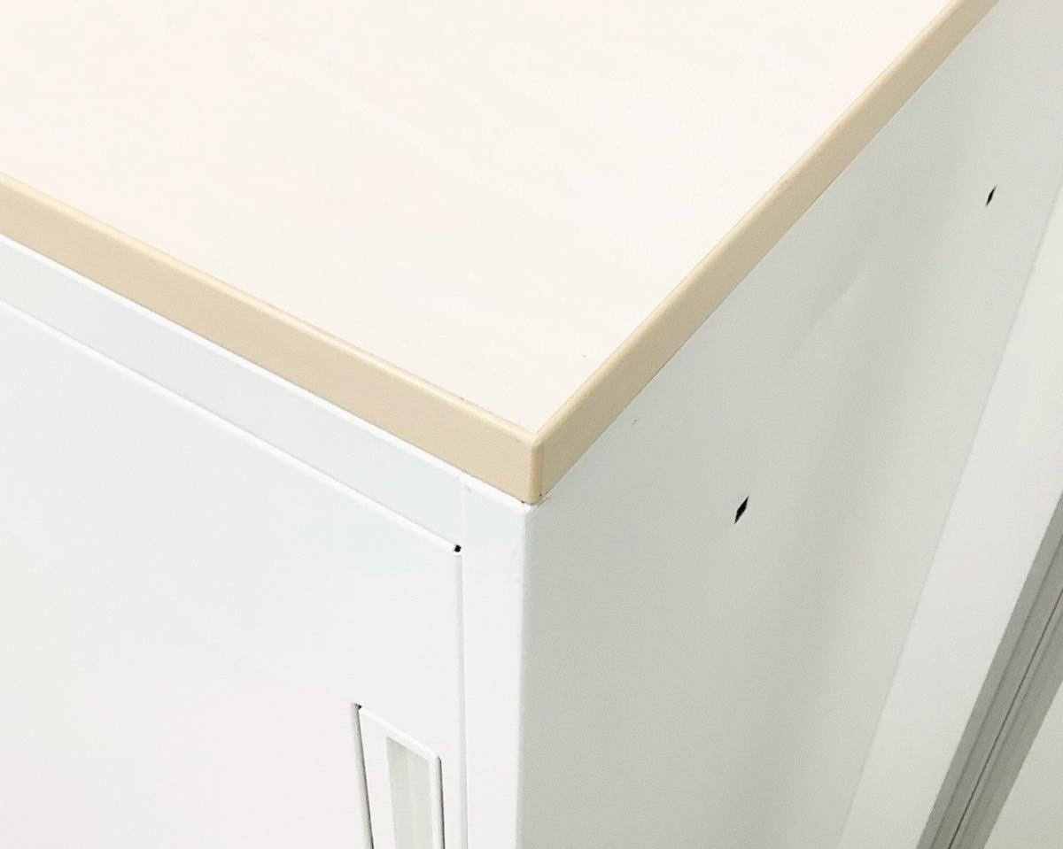 【スライド引き戸だから開閉スペースに困らない!】■コクヨ(KOKUYO)製 エディア(EDIA)シリーズ 2枚引き違い書庫 ローキャビネット シリンダー錠 天板付き ベース付き ホワイト シリンダー錠 収納 中古家具 格安 福岡 オフィス家具 九州最大級《オフィスバスターズ福岡博多店は、福岡を拠点として、日本全国へ中古オフィス用品・オフィス家具を提供しております》