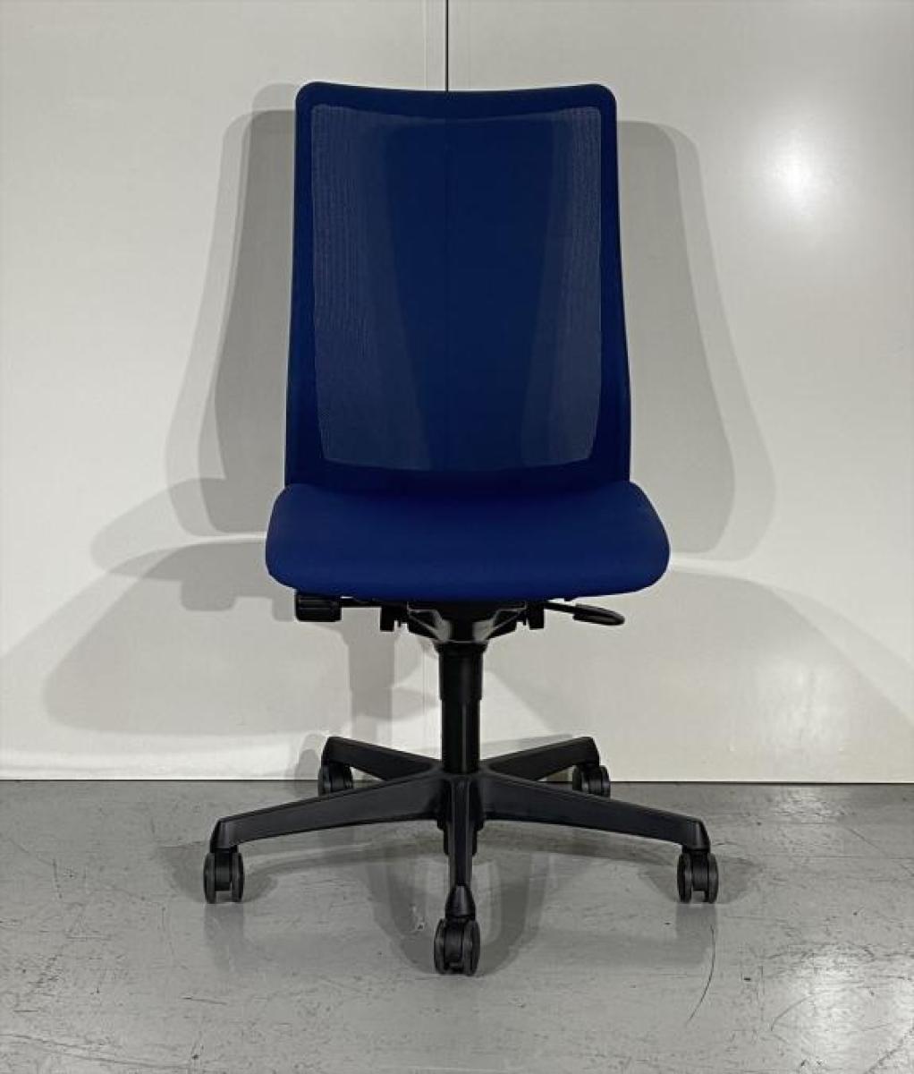 入替セール品につきお値下げ!【オカムラ現行品のメッシュチェア!状態良好品が揃います!】オカムラ フルーエント ミディアムブルー ハイバック 肘無し メッシュ
