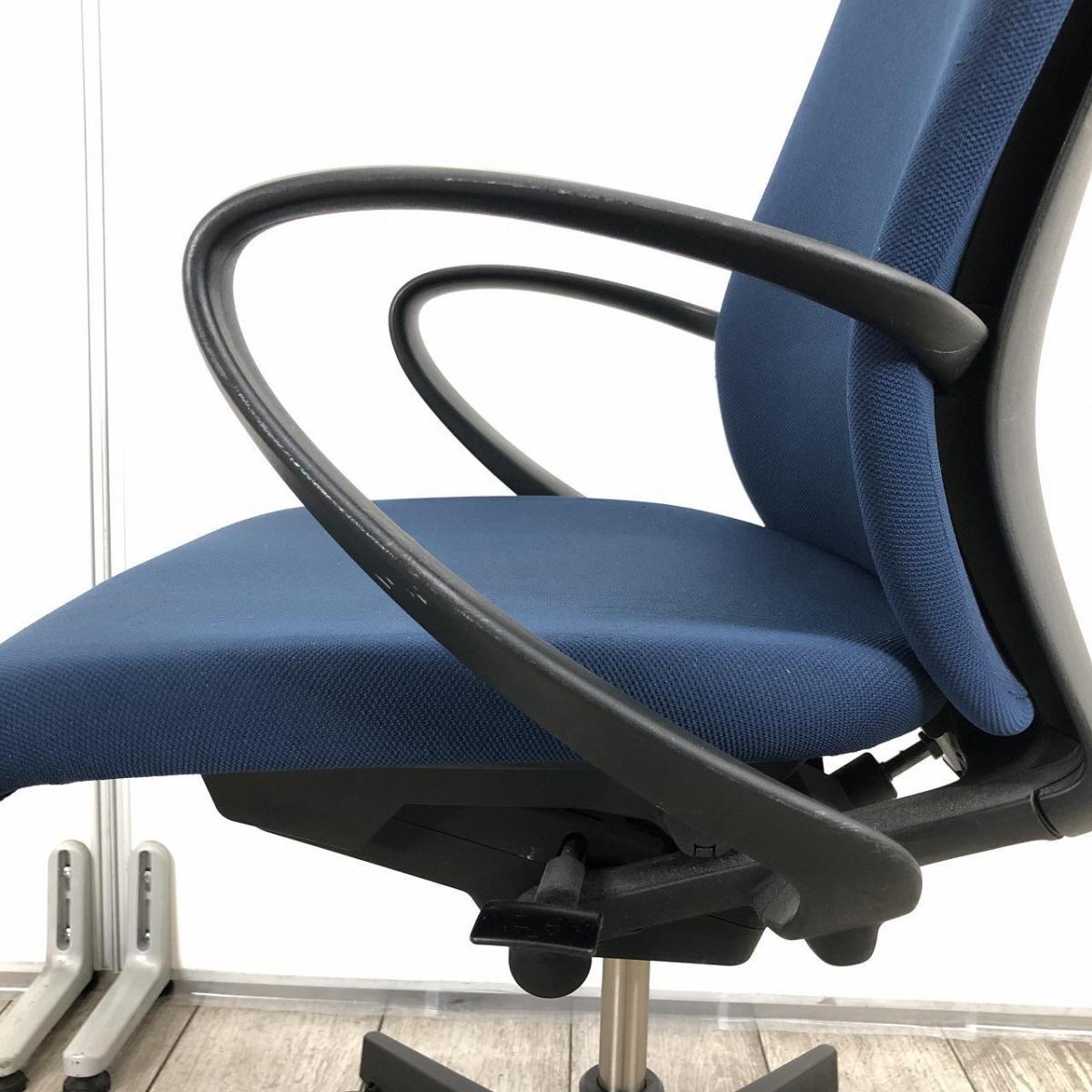 【定価約8万円】【座る人を選ばない、シンプルスタイルな定番シリーズ!把手付きで汚れ対策&持ち運びラクラク!】 ■イトーキ(ITOKI)製 フルゴチェア 肘付ローバック ■固定肘 ■背面:ネイビーブルー/座面:ブラック