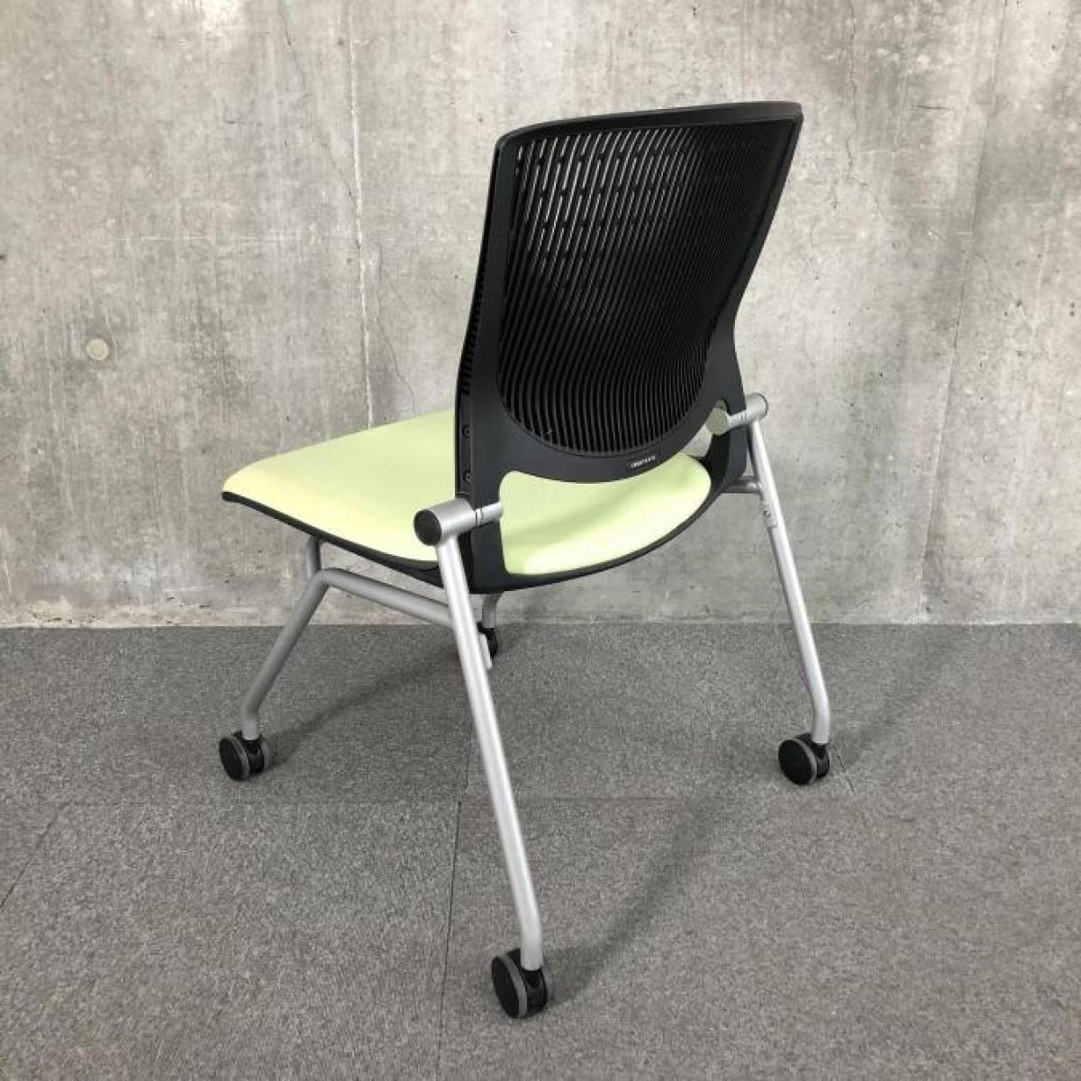 【在庫セール品・8脚限定】【T10】■オカムラ(okamura)製 グラータ (Grata) 肘無しミーティングチェア ネスティングチェア ■背面樹脂メッシュ ■座面:グリーン【スリット構造のシェルがワーカーを軽やかに受け止める!】