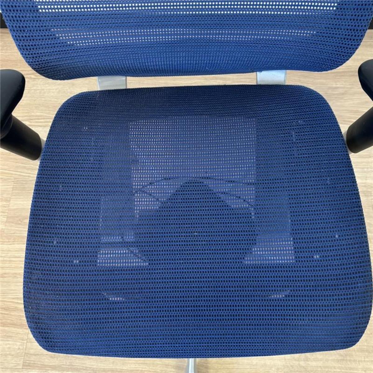 【硬めのメッシュ座面が大人気!国産メッシュチェアの代表格!】■オカムラ(okamura)製 バロン(Baron)チェア ハイバック 肘付き ■背面メッシュ ■固定肘 ■色:ダークブルー ■ハンガー付き【IB】
