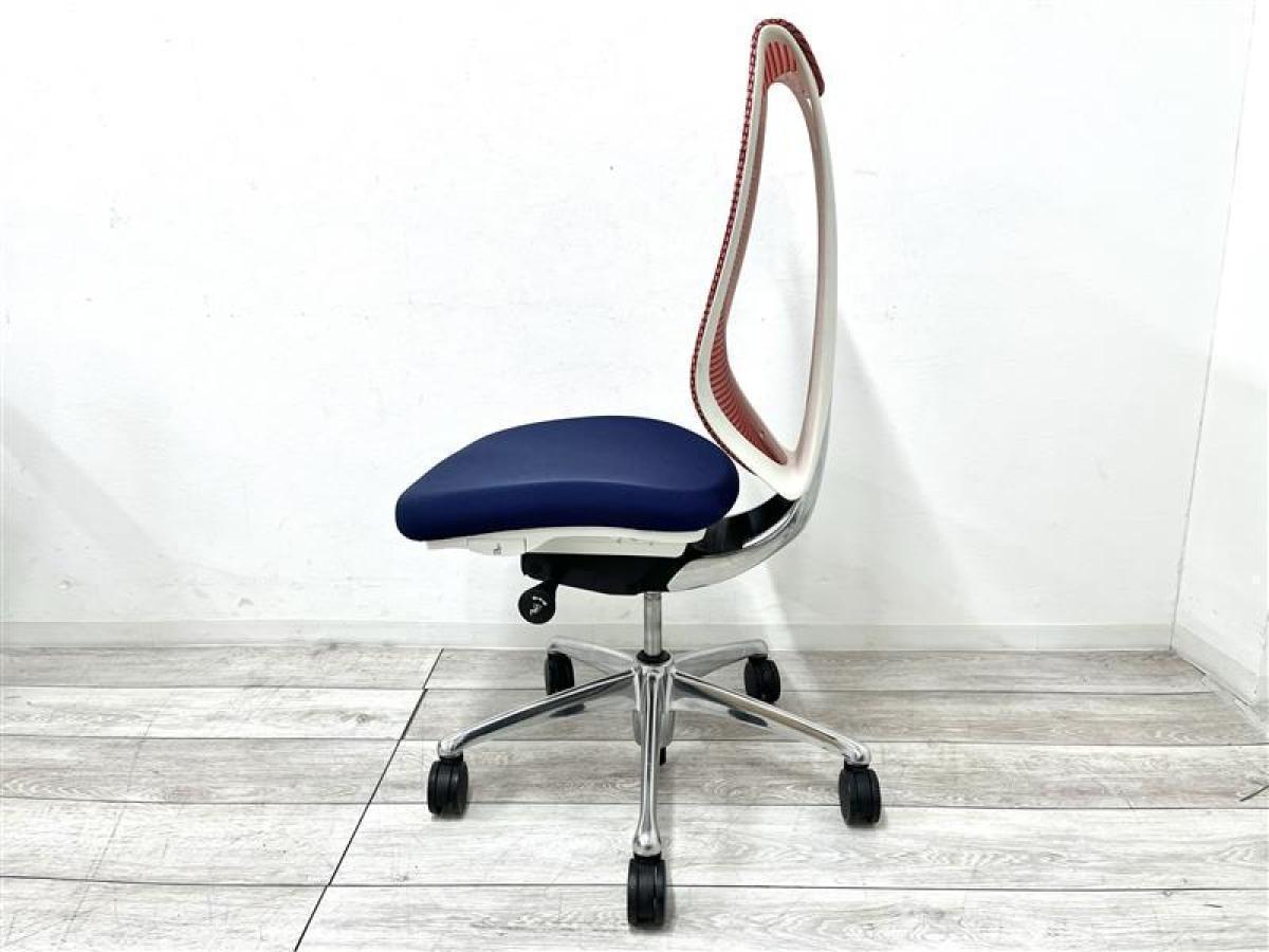 【人間工学から生まれた最先端のワーキングチェア!】■オカムラ サブリナチェア 肘掛け無 背:レッド / 座:ダークブルー ■流れるような美しいフォルム!姿勢に心地よくフィット!【K10】
