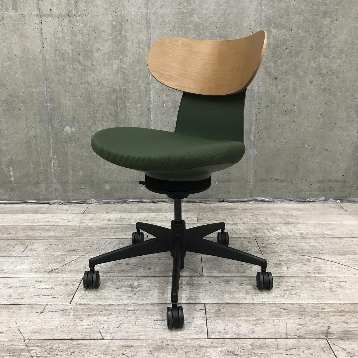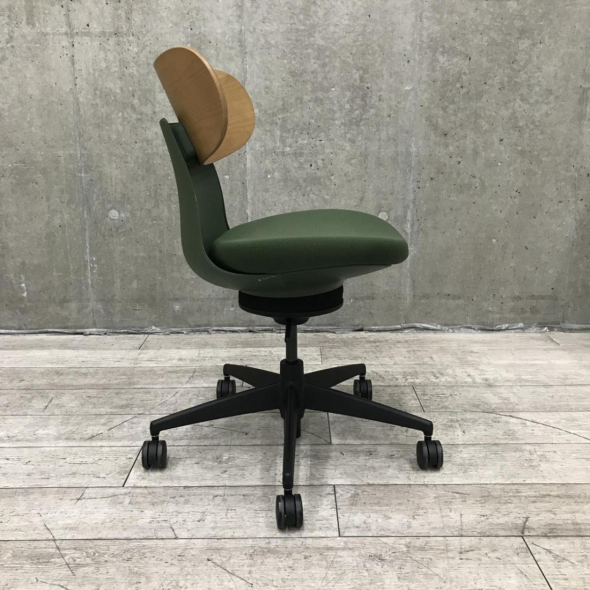 【西】【話題沸騰!】【無重力のような座り心地!座りながらエクササイズ!デスクワークに健康を求める方必見!今人気の新感覚チェアが入荷!】■コクヨ(KOKUYO)製 イングチェア(ing chair) 肘無 ローバック ■ラテラルタイプ ■背面木製 ■ディープグリーン- 在庫数