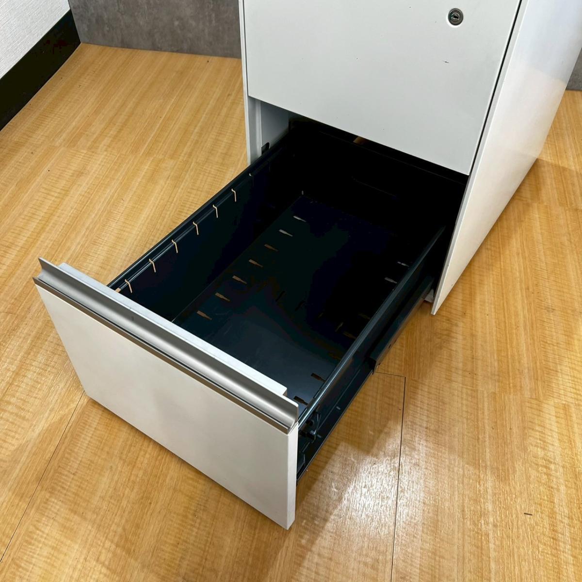 【定価6万円】【シャープなデザイン!平机・フリーアドレスデスクのお供に!】■イトーキ(ITOKI)製 インクルード (IncLude) フリアド用ワゴン 3段ワゴン H650mm ■ホワイト ■シリンダー錠 中古 キャスター付