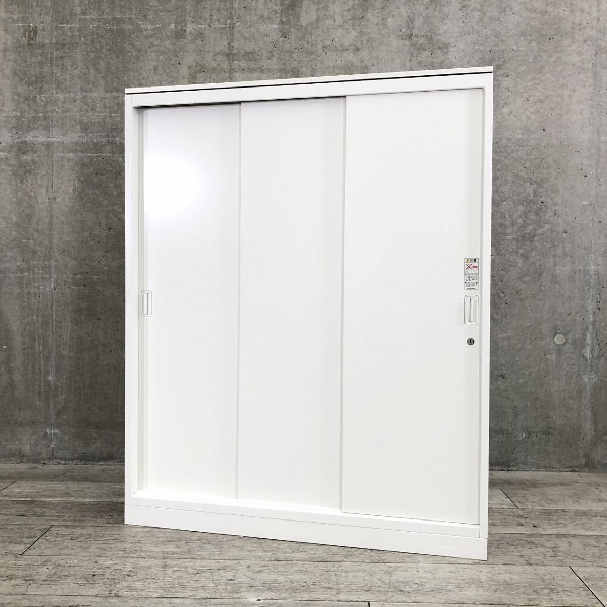 オカムラ製 人気レクトラインシリーズ ホワイト シリンダー W800xD450XH1050 3枚引戸 ※ベースなし 3枚引き違い書庫!!