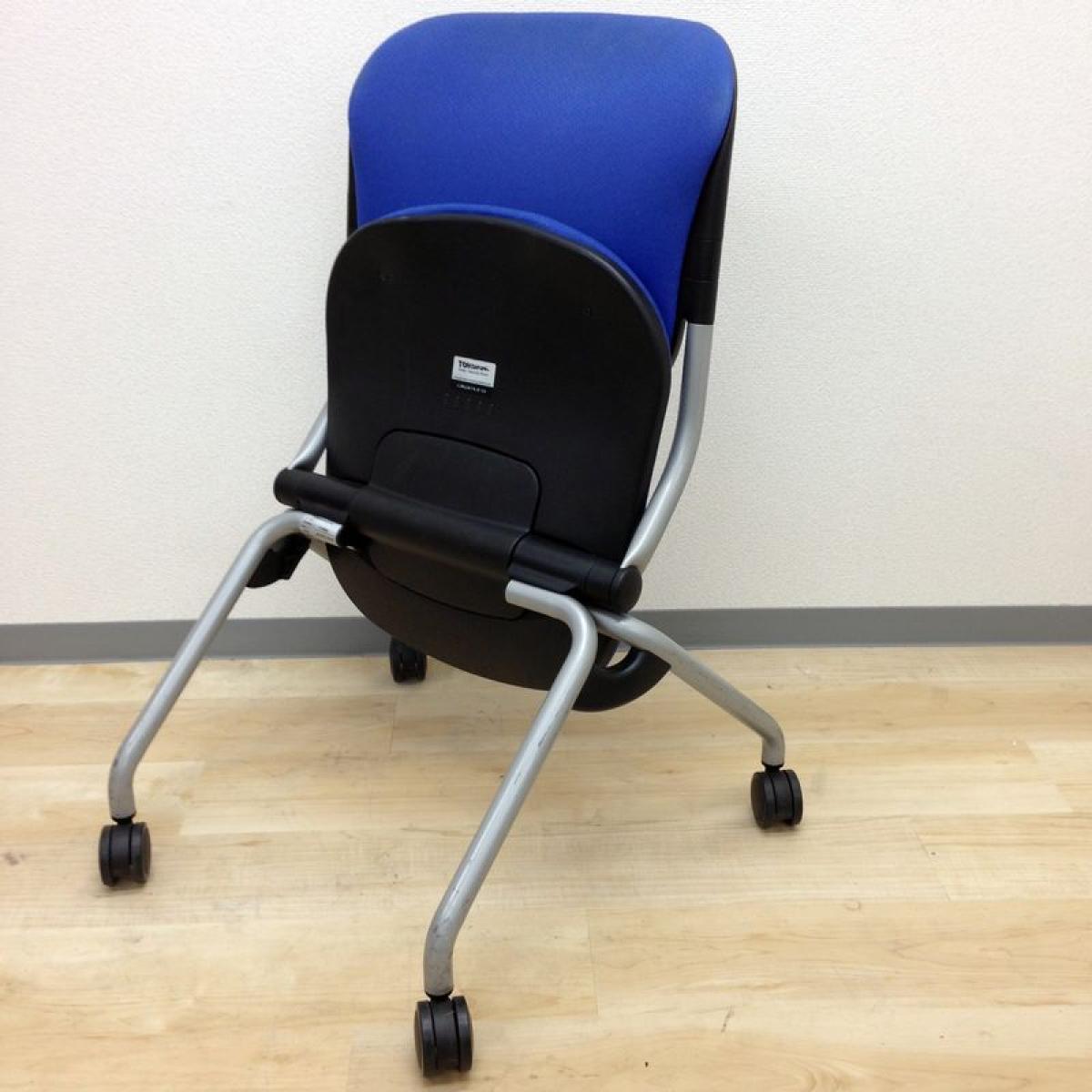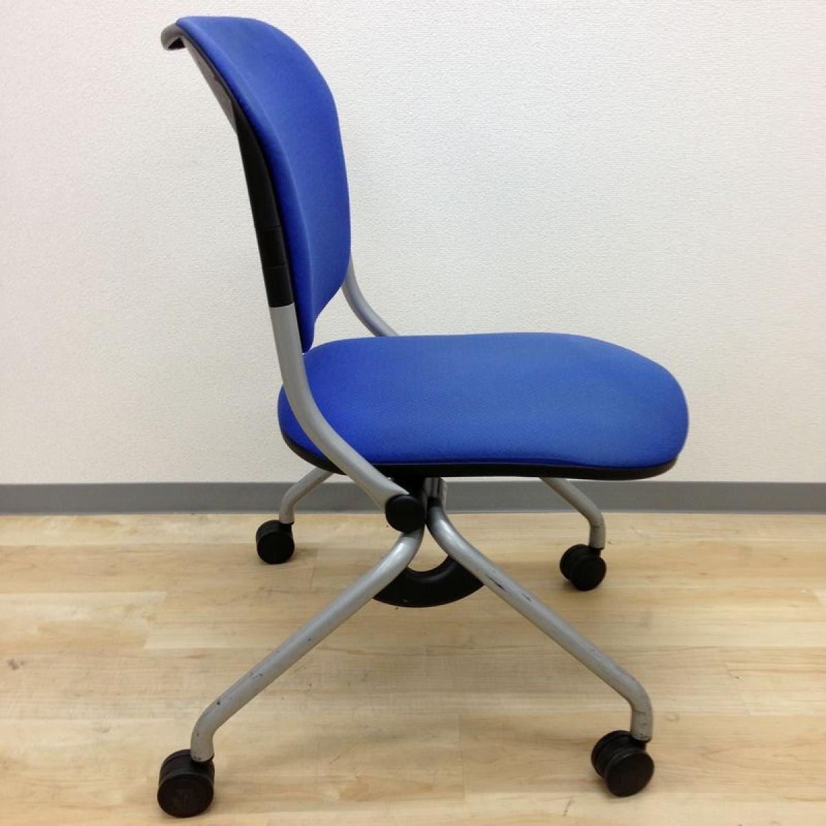 【ミーティングチェアが4脚揃います!】オカムラ ネスティングチェア トーションライン ブルー キャスター付き 【会議・打ち合わせ・面接などにおすすめ!】- 品川・三田店