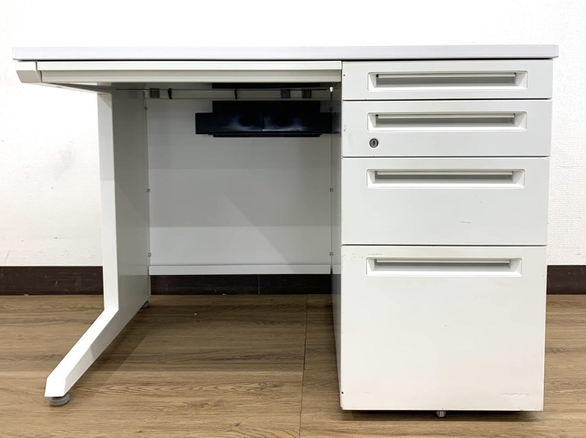 【T11】【商品入替のため、残り6台限り】オカムラ製 アドバンシシリーズ ホワイトカラー 4段収納で整理も完璧! コンパクトで清潔感のあるオフィス W1000片袖机!!