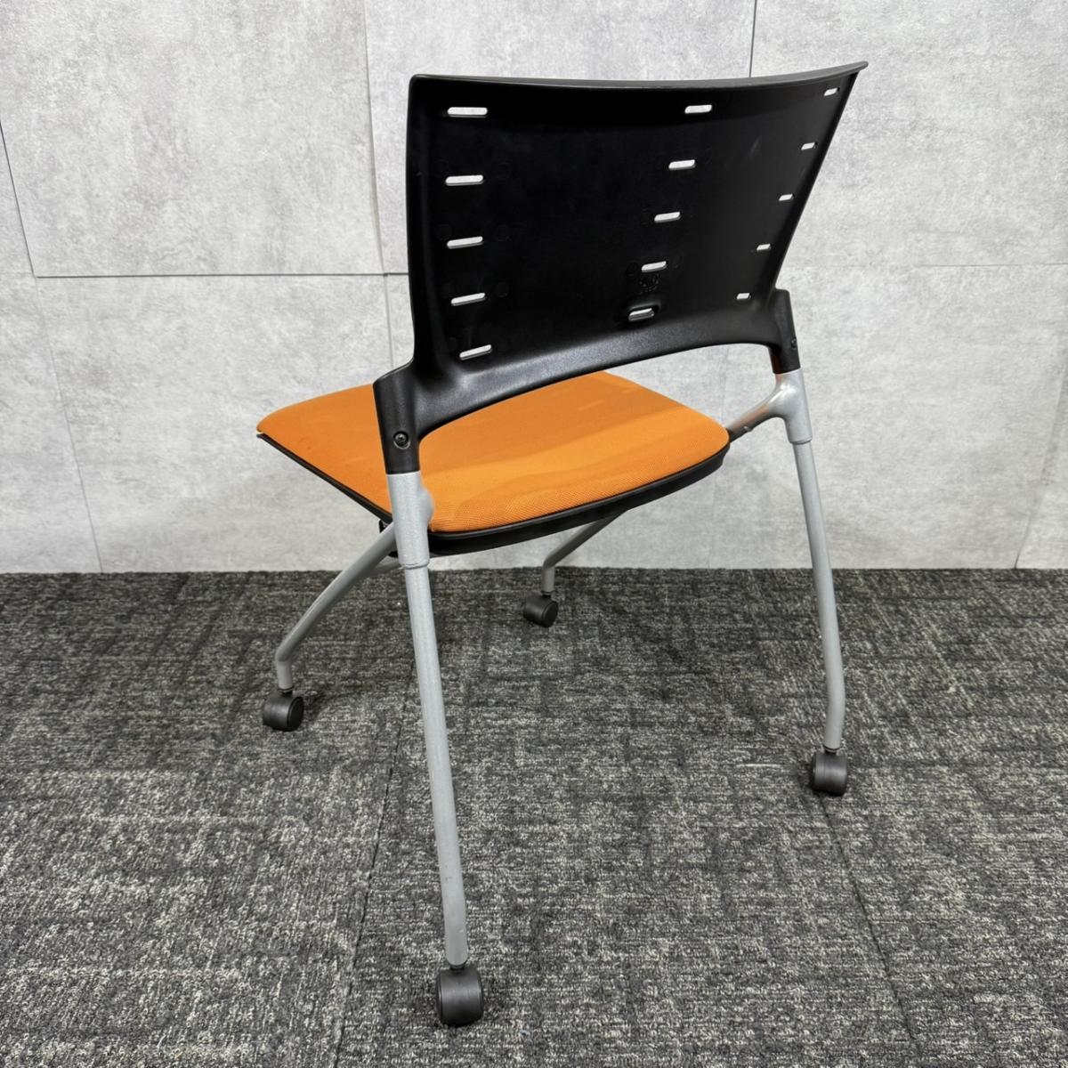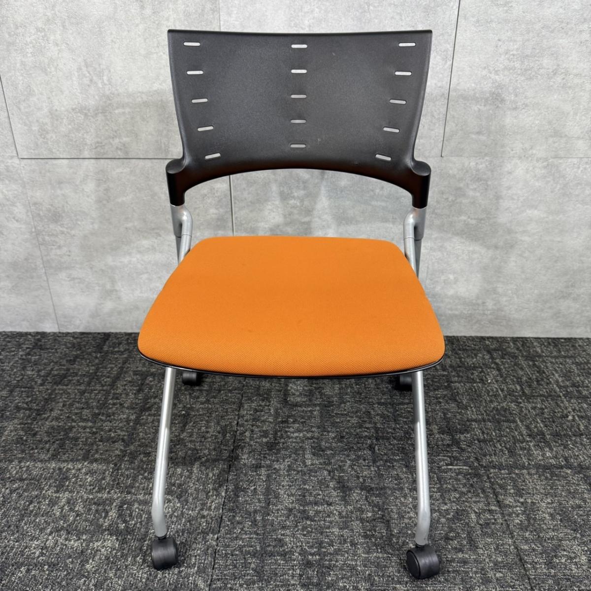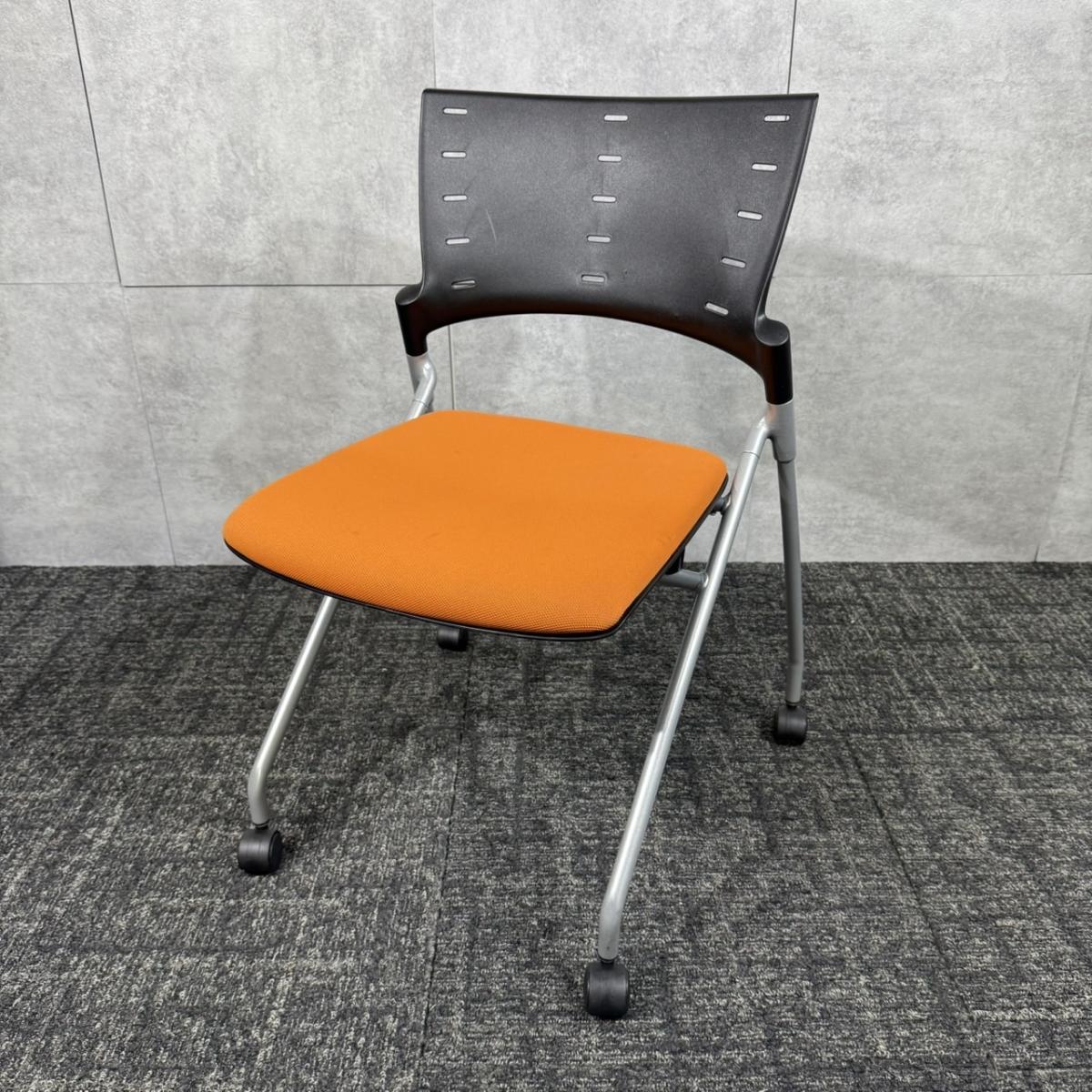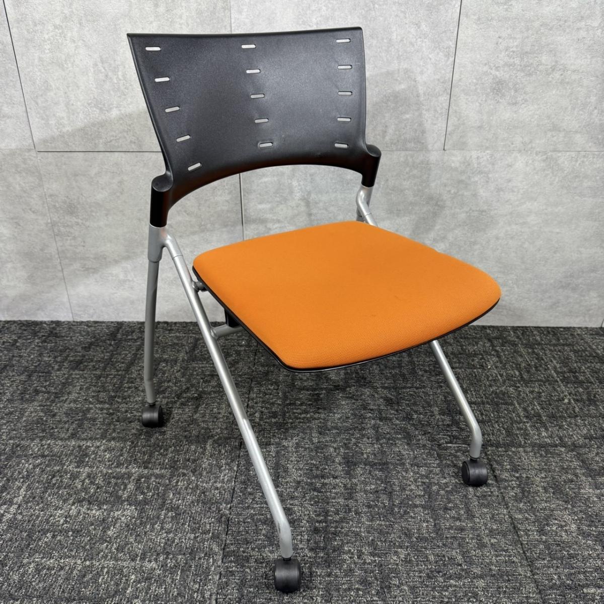 【定価約6万円】【重ねて収納可能!スペースの削減におすすめなネスティングチェア!】■イトーキ/マノス ■ネスティングチェア ■オレンジ