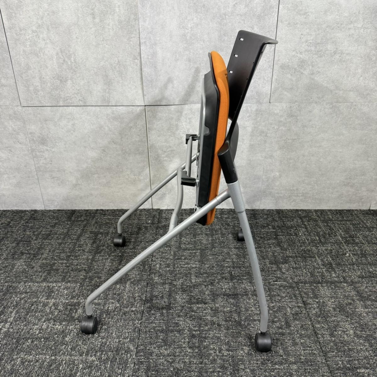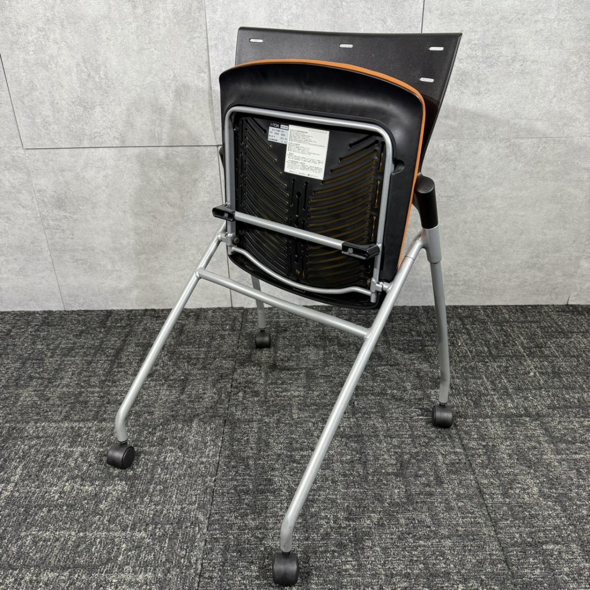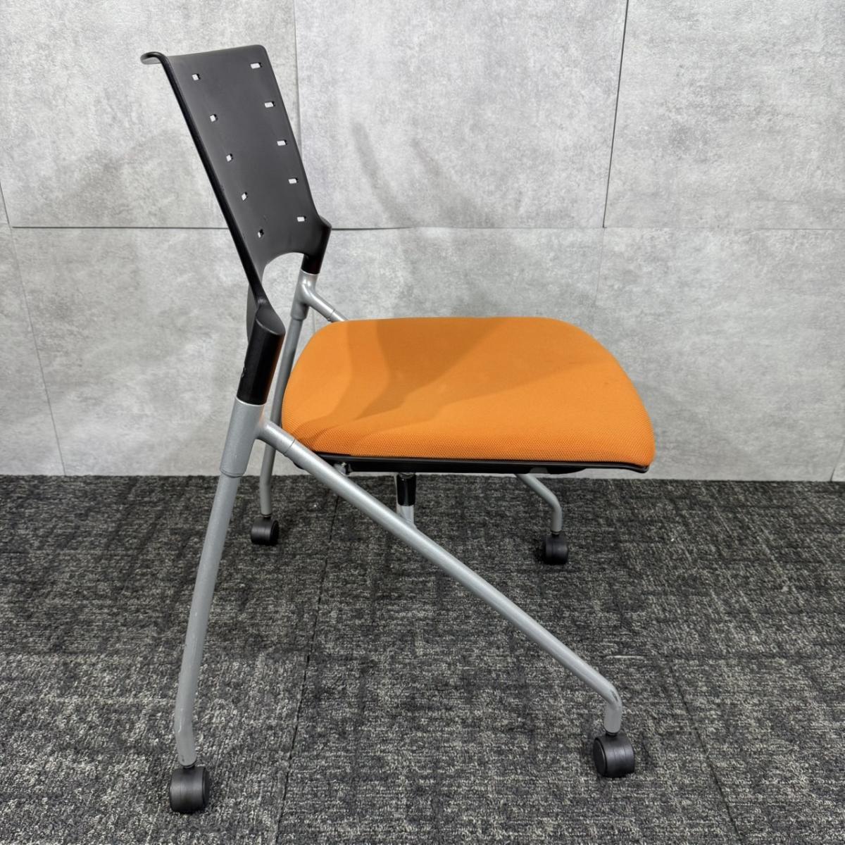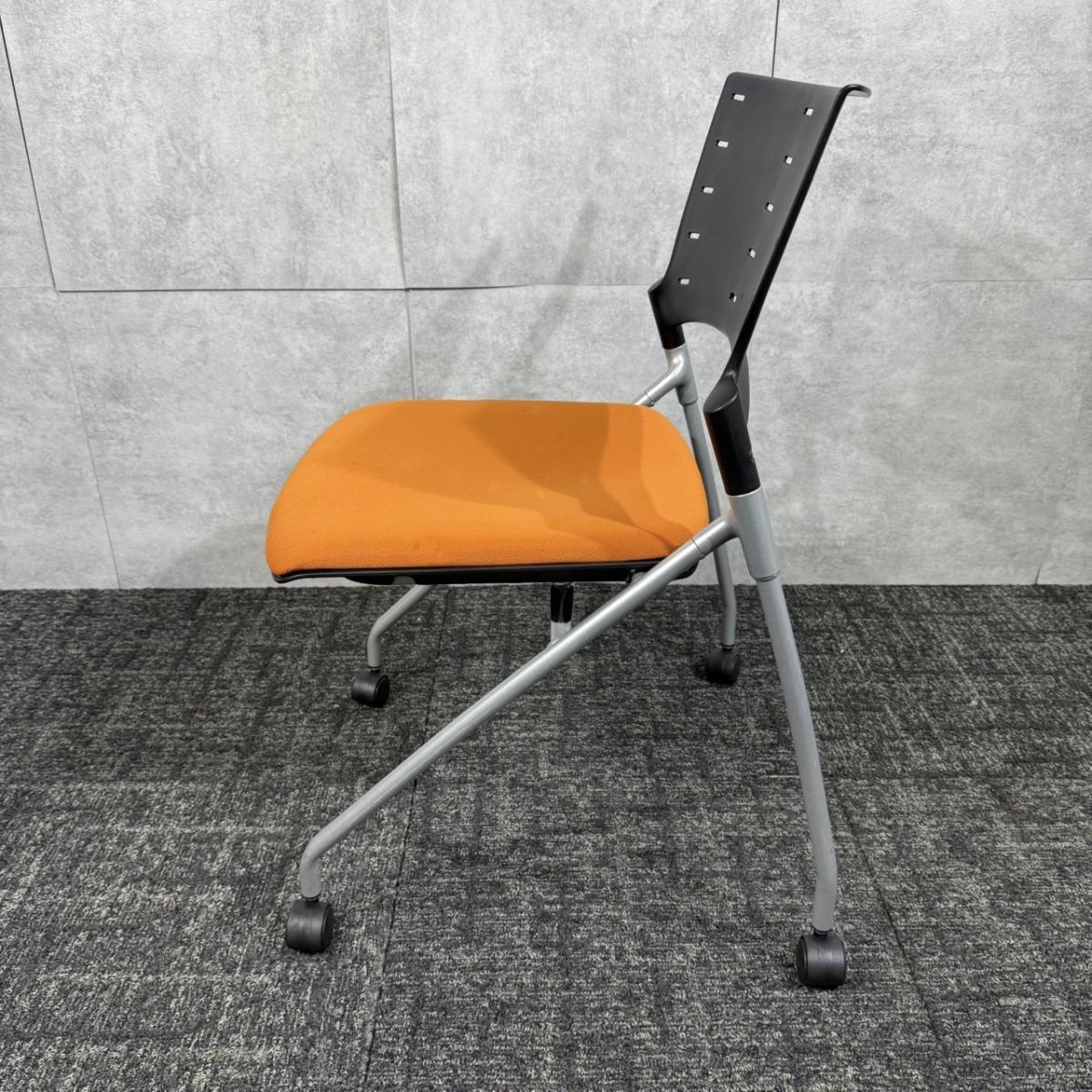 【定価約6万円】【重ねて収納可能!スペースの削減におすすめなネスティングチェア!】■イトーキ/マノス ■ネスティングチェア ■オレンジ