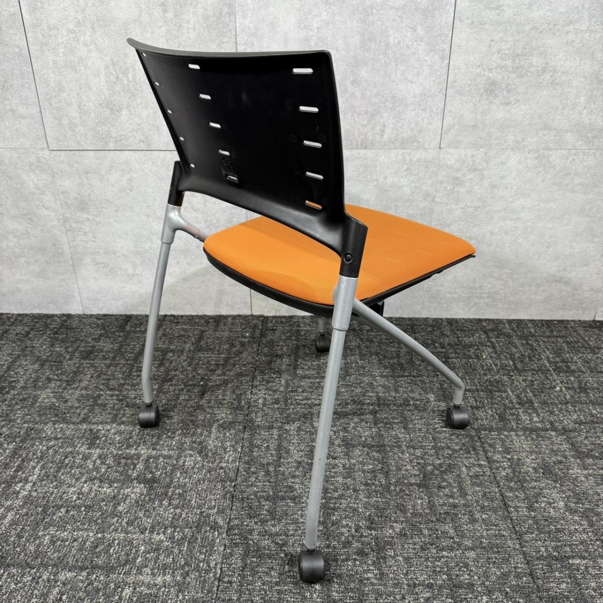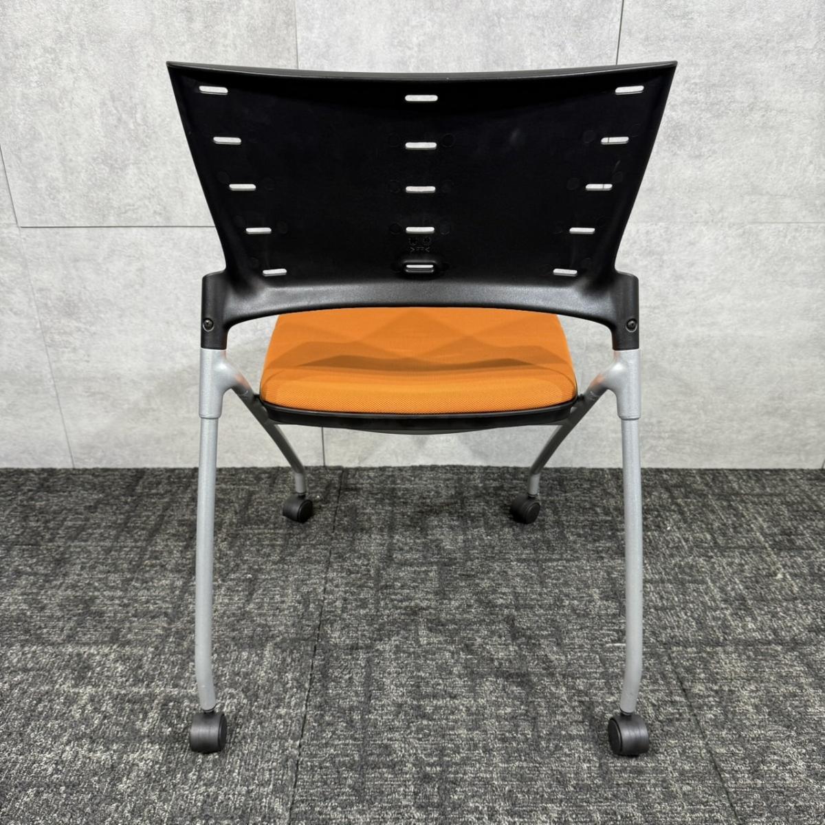 【人気のネスティングチェア!ミーティングスペースに最適!】■イトーキ(ITOKI) マノス(MANOSS) ネスティングチェア ミーティングチェア ■背パッドなし キャスター付き ■アンバーオレンジ×背面ホワイト【入替セールにつき30%OFF!】