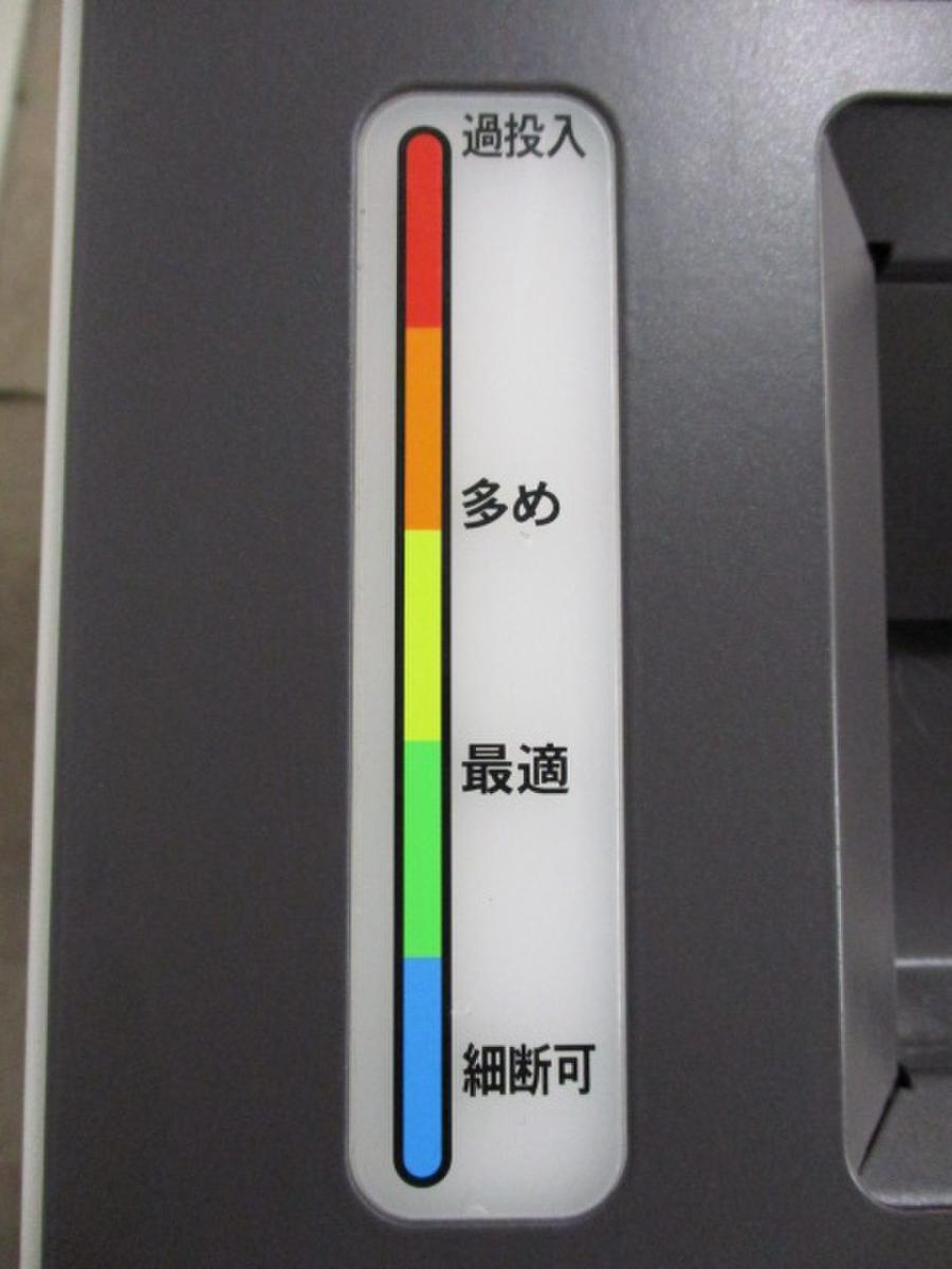 細断する紙の投入量に応じて色が変化し、過投入による紙詰まりを防止します