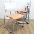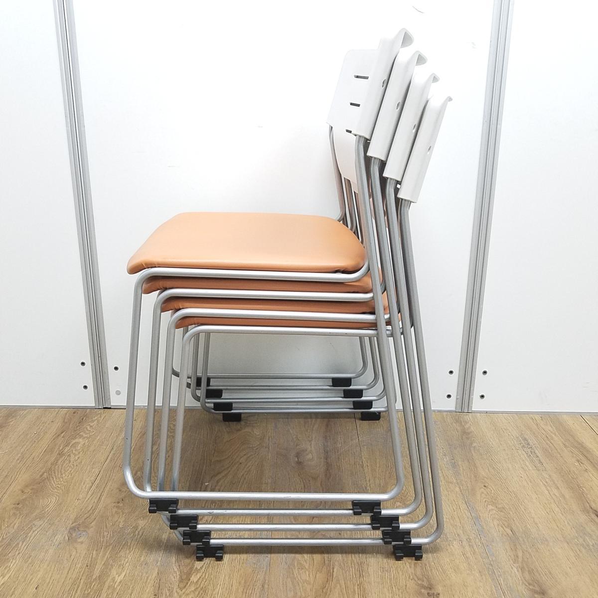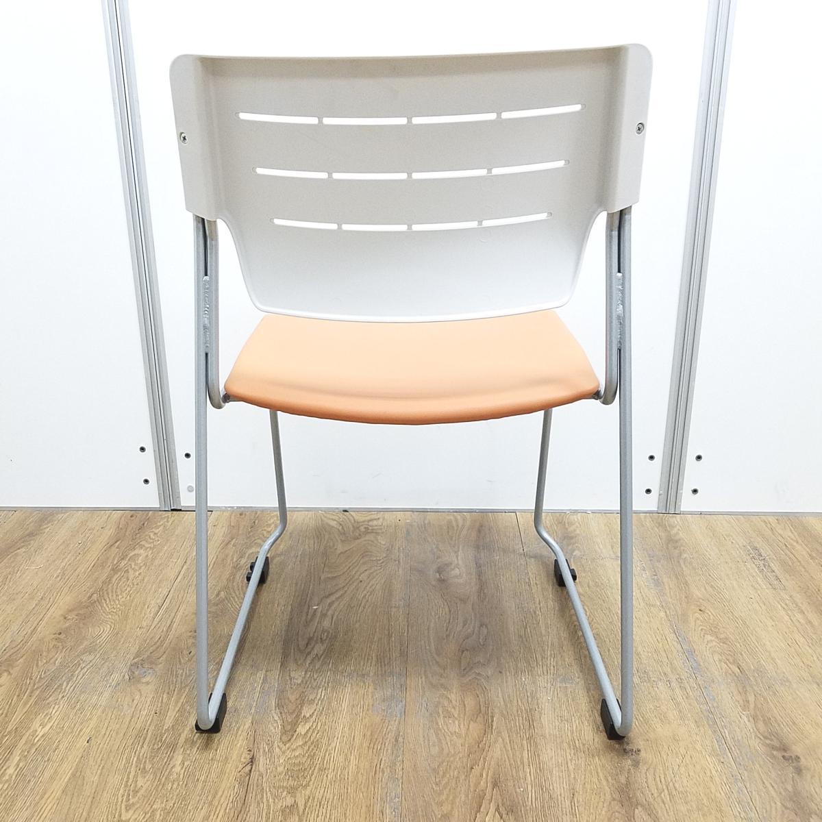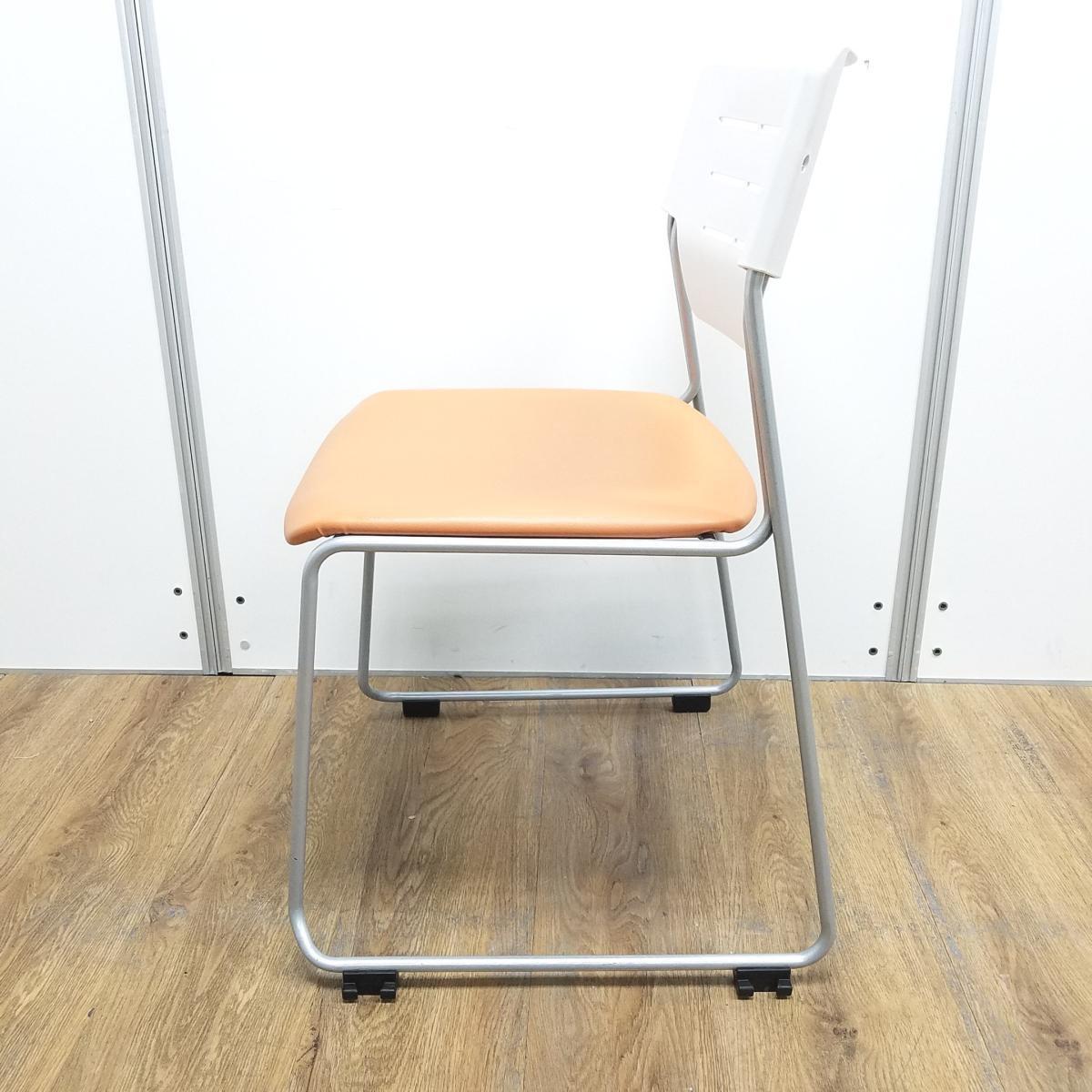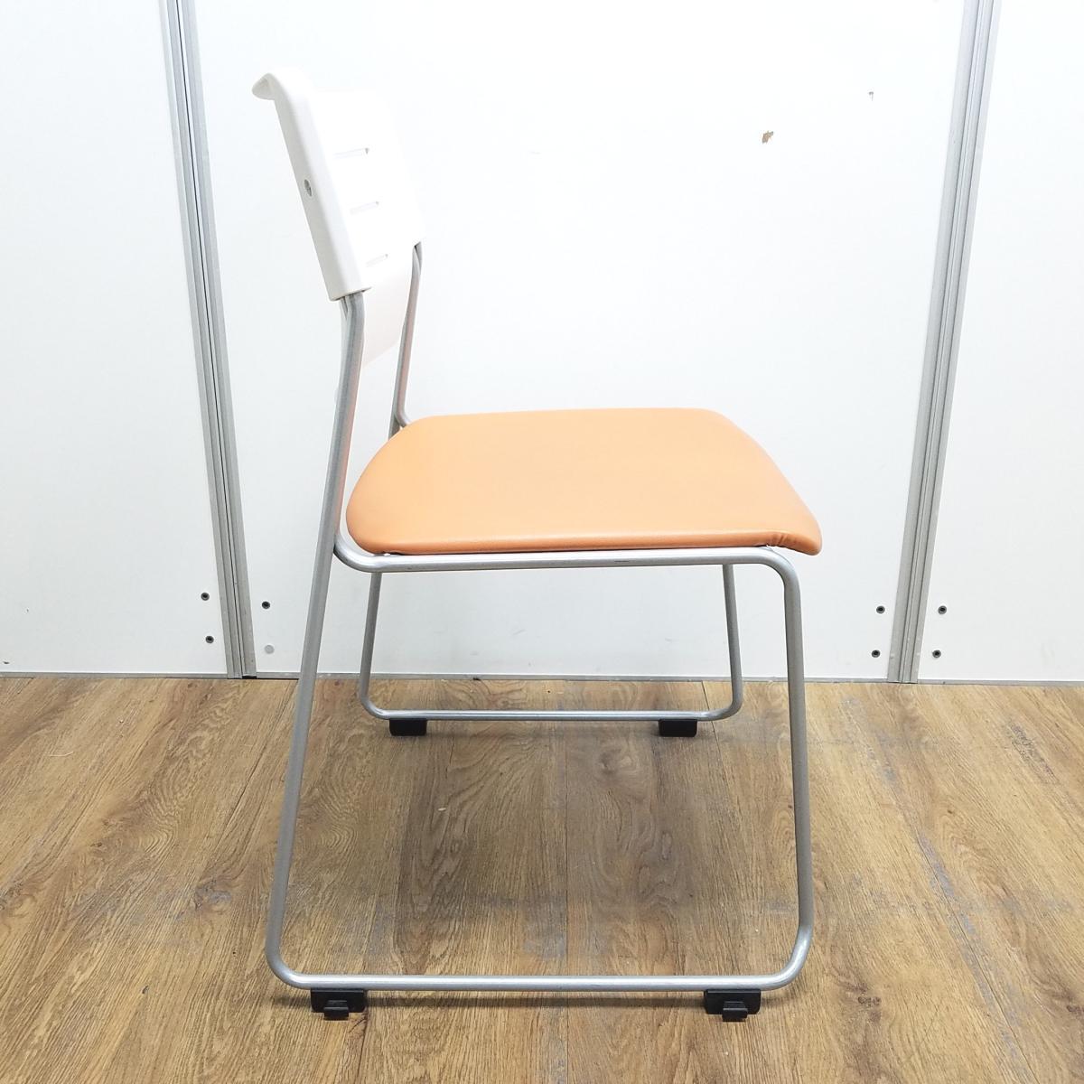 【4脚セット!!】イトーキ製 エレック ソフトオレンジ 背面樹脂オフホワイト 座面ビニールレザー キャスター無 重ねられるので収納にも困りません! ミーティングチェア スタッキングチェア!!- 京都東寺店