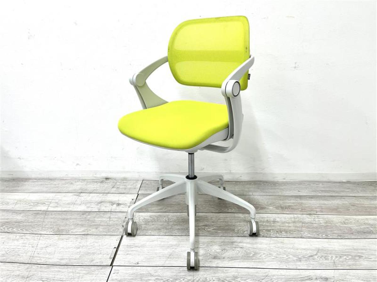 【定価約7万円】【スウィングメカ搭載によりスムーズな姿勢変更が可能!】■イナバ/swin(スウィン) ■肘無OAチェア ■ライトグリーン×ホワイトフレーム ■前傾姿勢 後傾姿勢- 在庫数