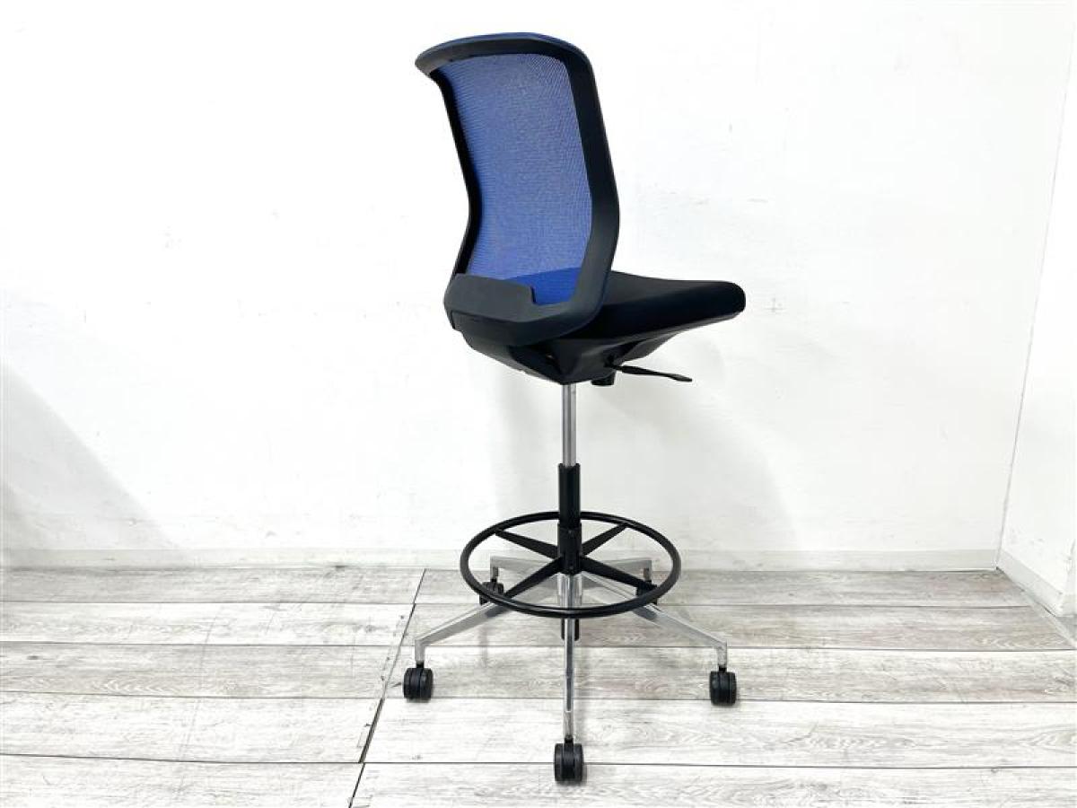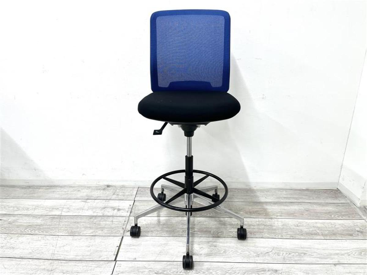【在庫入替セール品】【定価5万円】【背もたれメッシュで通気性バツグンな快適OAチェア】■内田洋行製 カリッサ 肘無カウンターチェア ブルー- 福島郡山サテライト