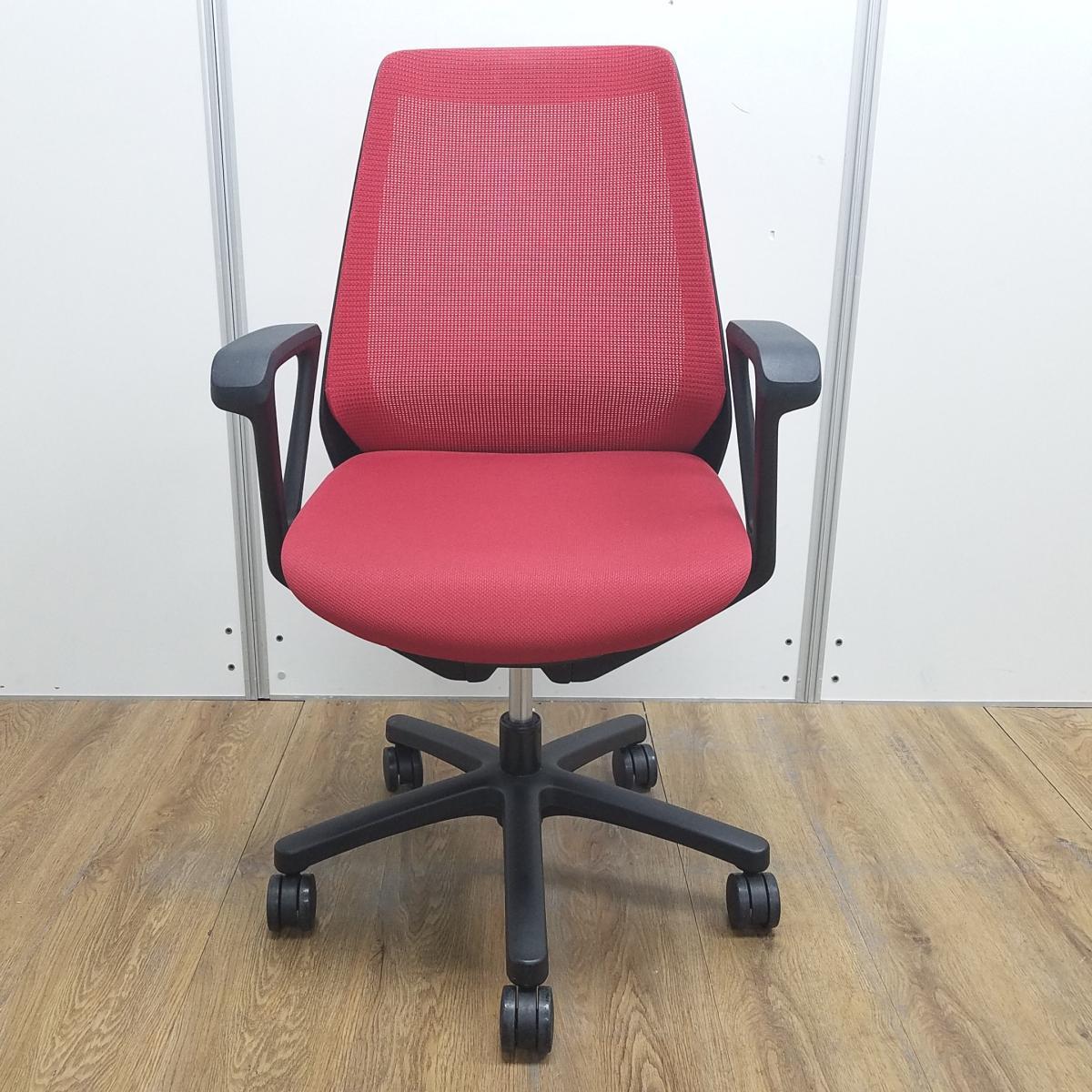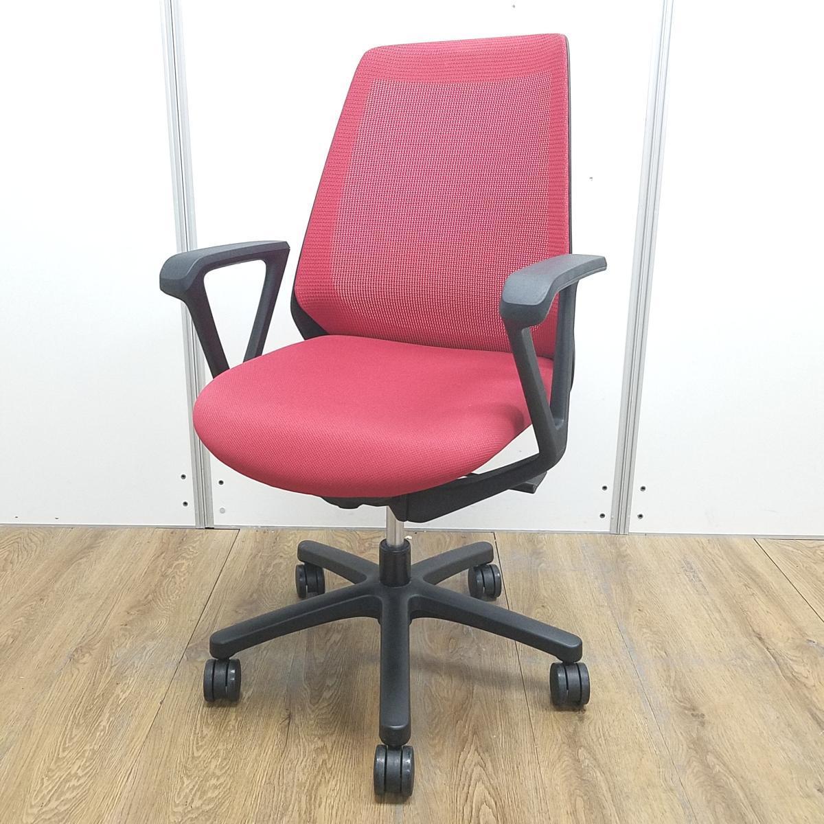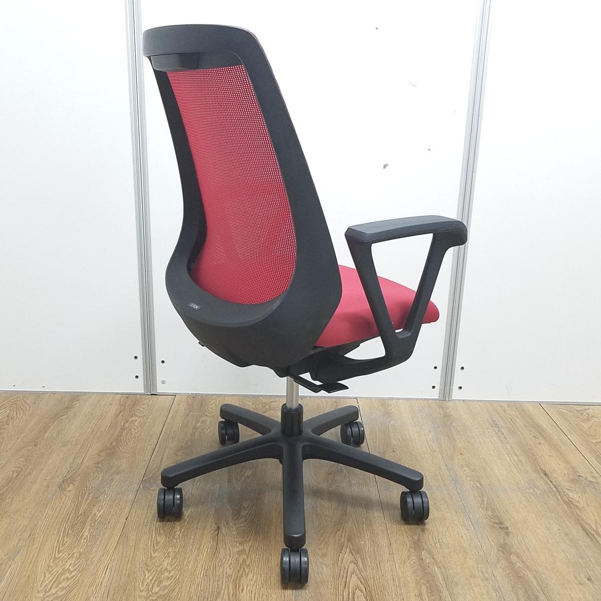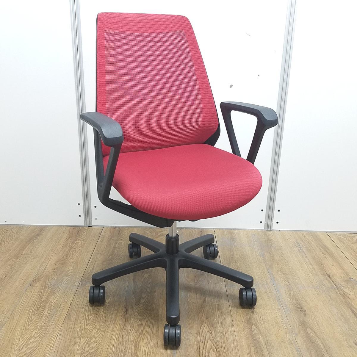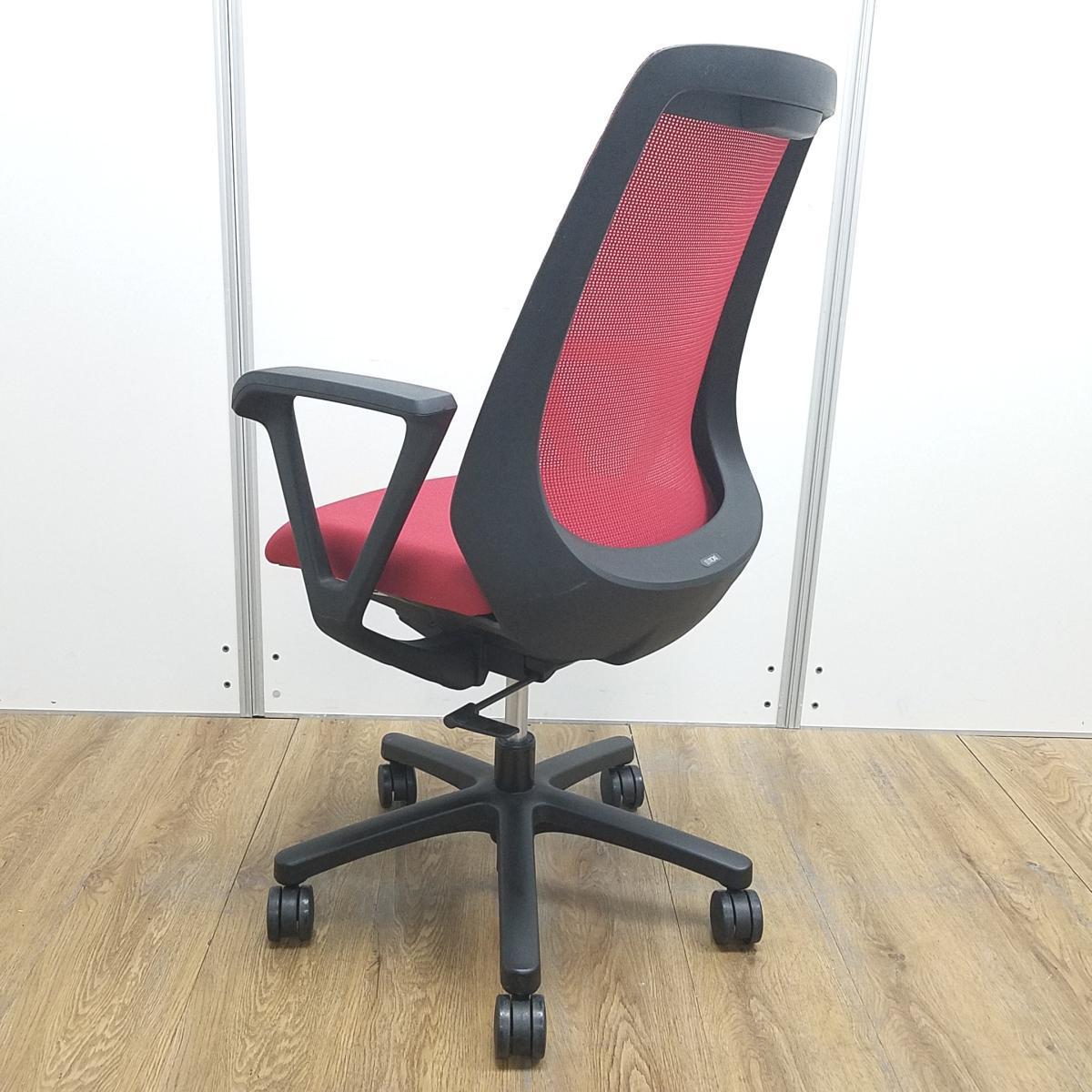 【U倉庫在庫品】★イトーキ製 ノナシリーズ ラズベリーレッド 背面メッシュ ブラックフレーム 背面メッシュ 座りやすくてコンパクト! 肩回りが動かしやすい背面メッシュの人気チェア! 肘付きハイバックチェア!!- 大阪心斎橋店