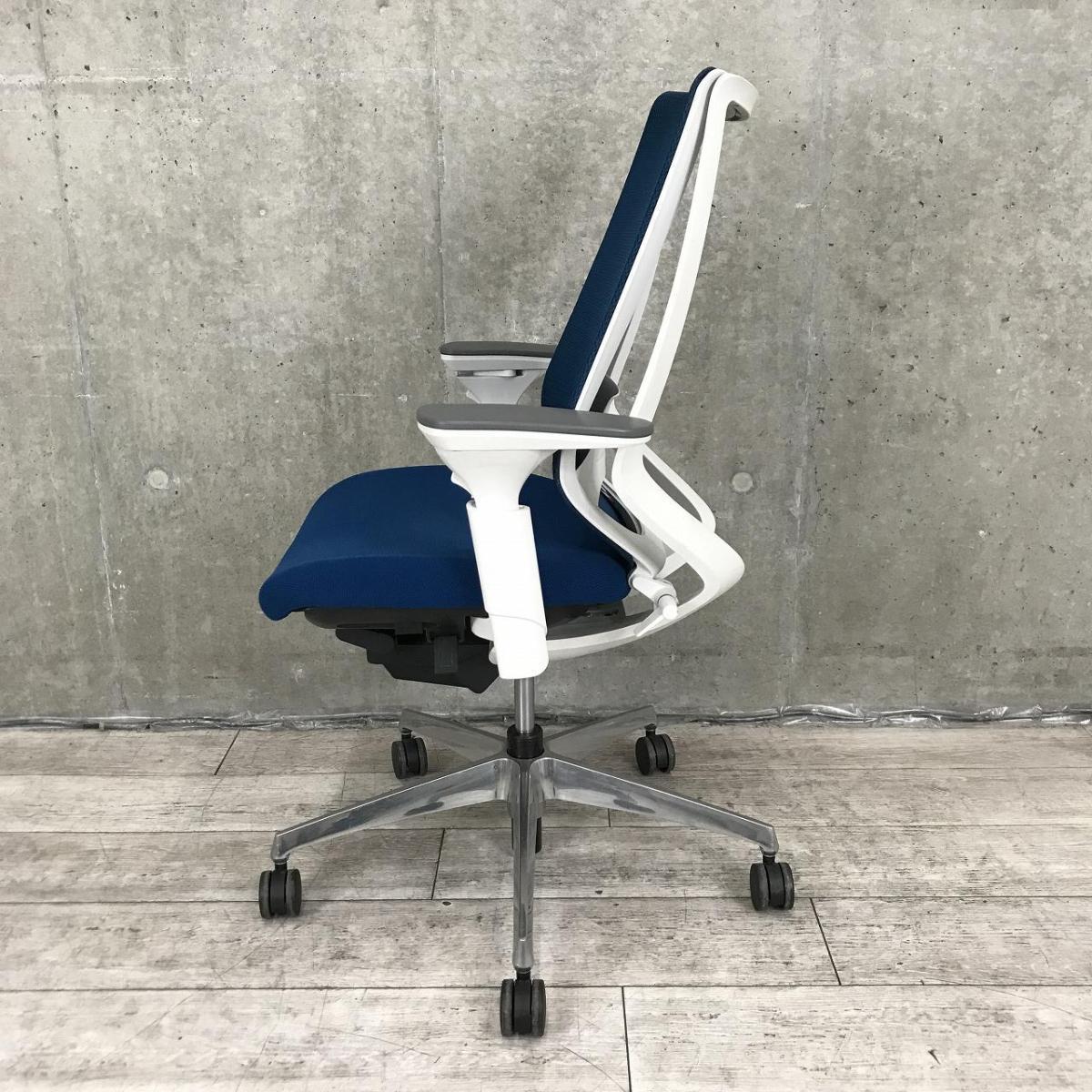 ■KOKUYO/コクヨ ■デュオラ(Duora)チェア ■プルシアンブルー×ホワイトシェル×ブラック脚 ■肘付き/可動肘 ■ハイバック ■背面/メッシュ 座面/布 ■コートハンガー付き ■オススメ/人気/定番商品 【弊社使用欄:A01040309 K】【ID】