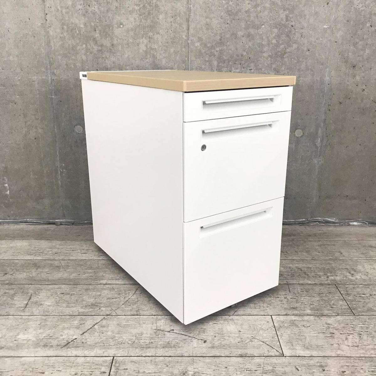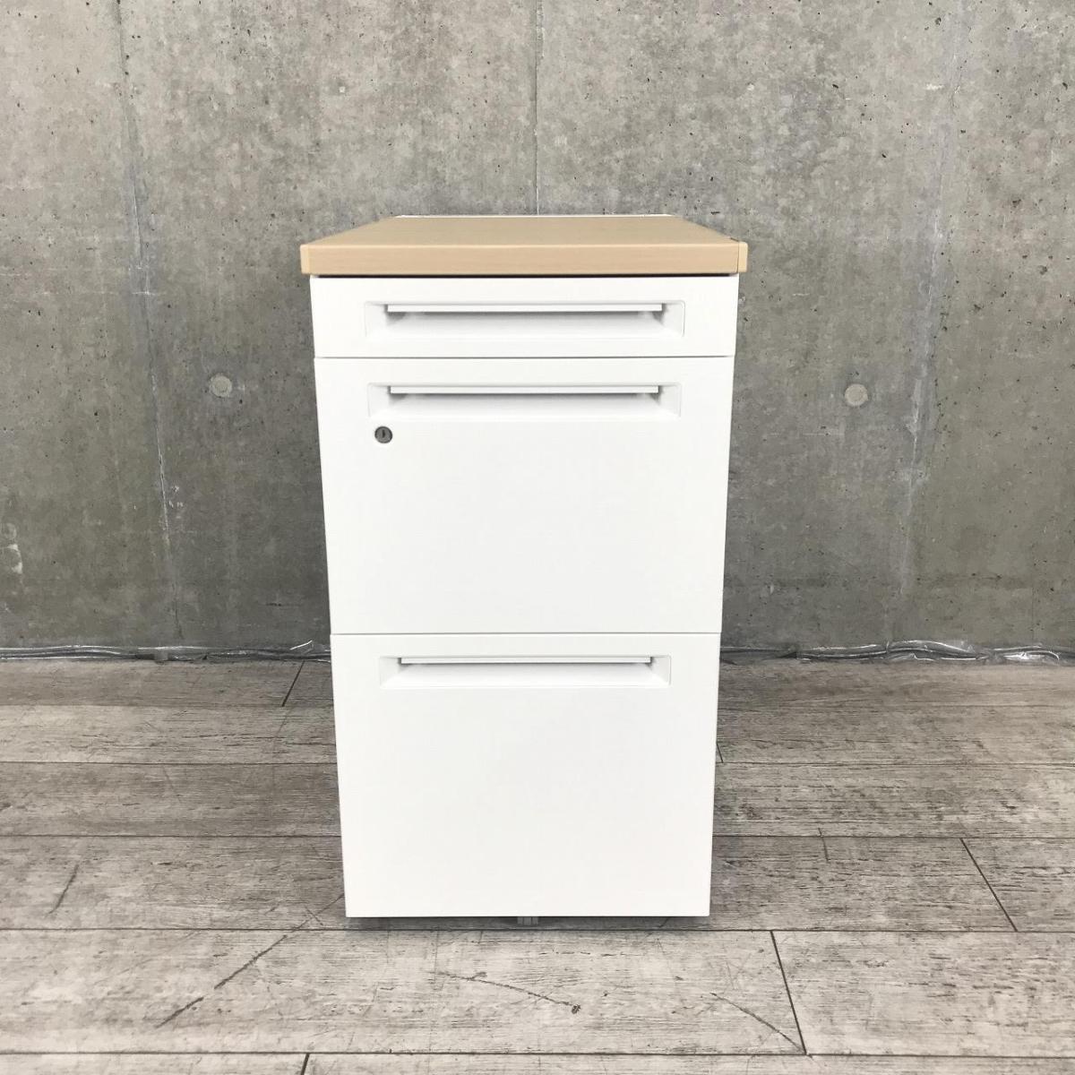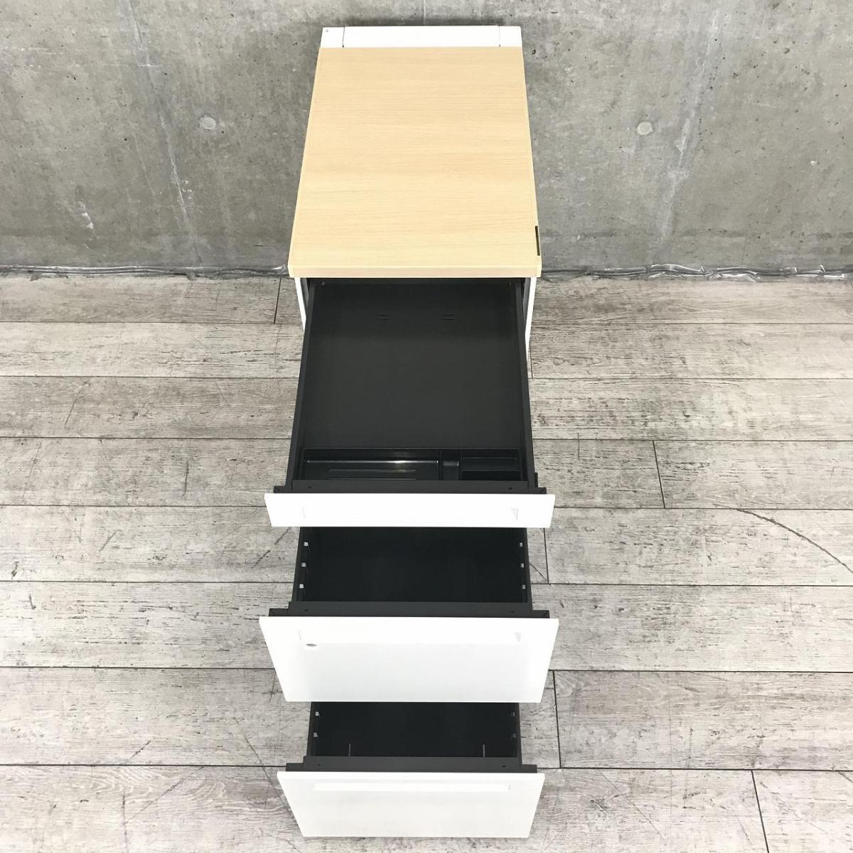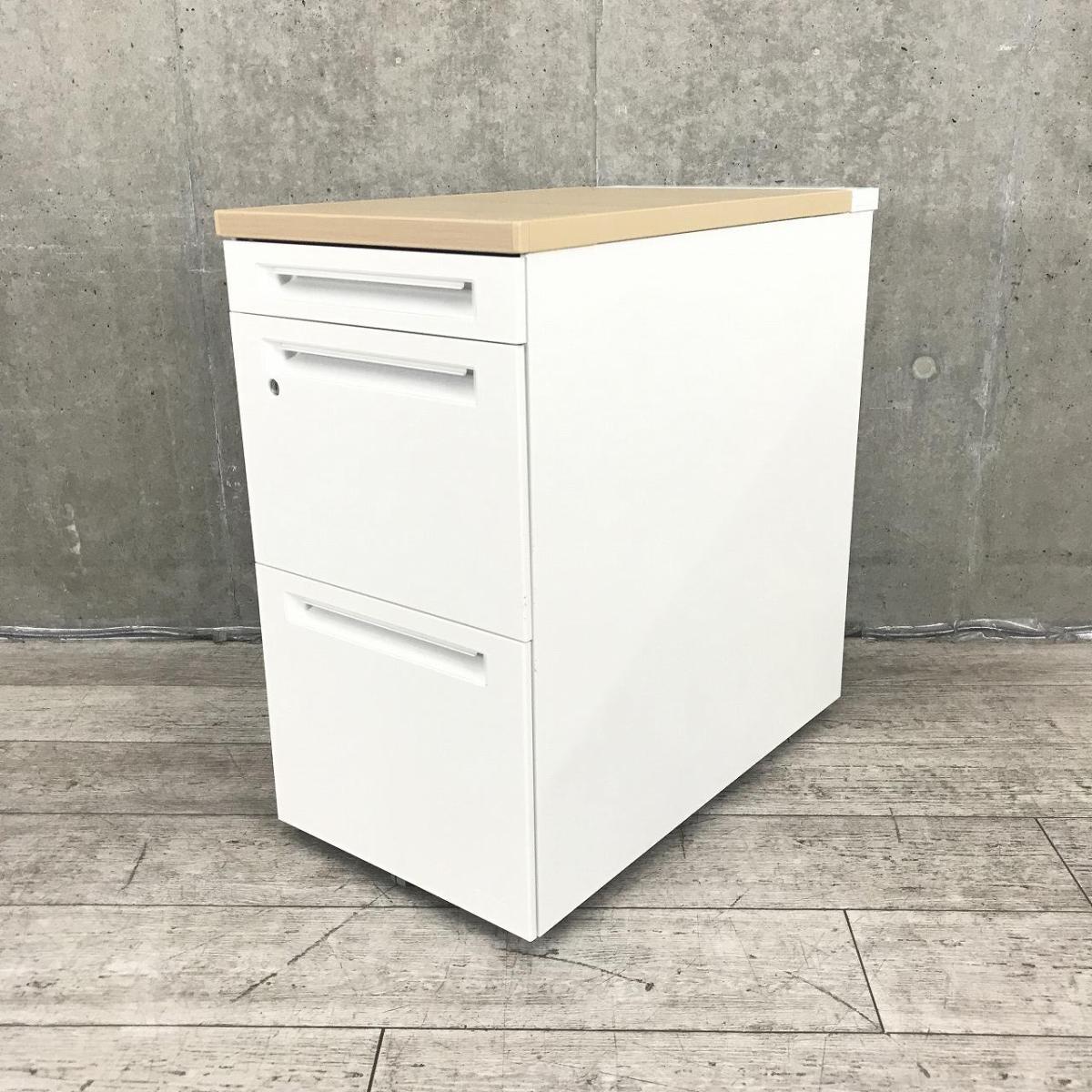 【デスクの拡張におすすめ!人気ナチュラル天板の脇机が入荷!】■オカムラ(okamura)製 アドバンス (ADVANCE) 3段脇机 ■本体:ホワイト 天板:木目ナチュラル ■高さ 720mm ■シリンダー錠【2508】弊社使用欄【A01031009】- 埼玉本店