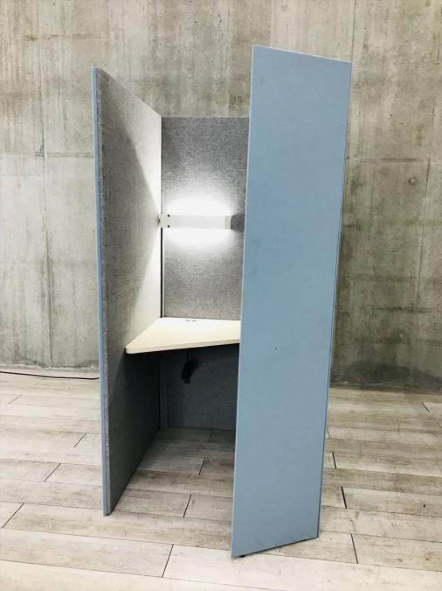 【ワーカーの集中を高めるミニマムなワークブース!】■オカムラ(okamura)製 ドレープシリーズ (テトラタイプ) 集中ワークブース ソロワークブース (W1000/D1000/H1910) ■ブルー×ライトグレー- 在庫数