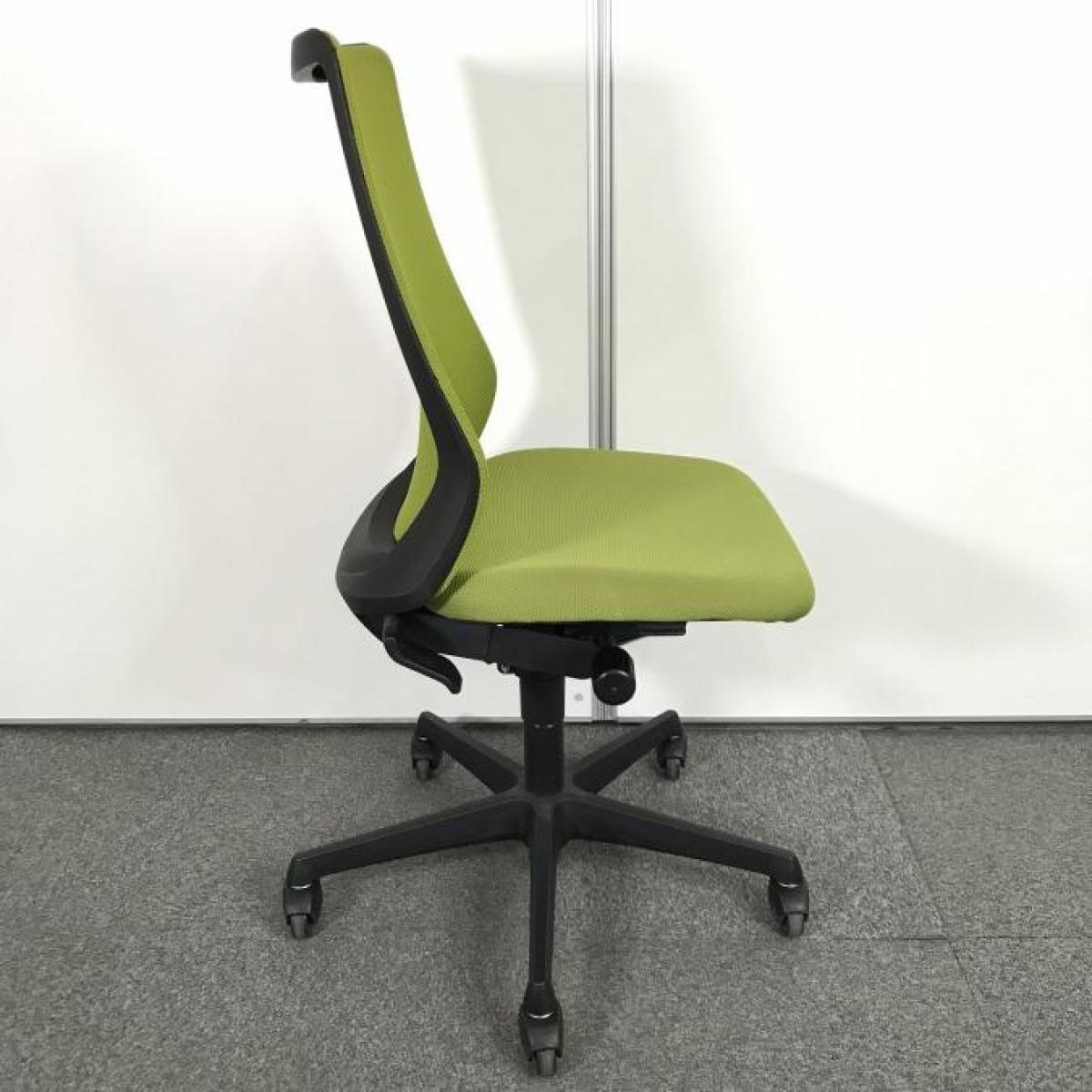 【腰まわりをしっかりホールド!長時間作業も快適フィット!】■オカムラ(okamura)製 フルーエントチェア ハイバック肘無し ■背面メッシュ ■グリーン×ブラックフレーム【IB】- 茨城南店