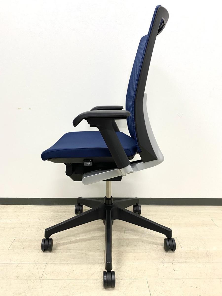 【シャープかつシンプルなデザイン!大きな背面が体にフィット!通気性がよく長時間でも快適な高級チェア!】■イトーキ(ITOKI)製 ヴェント(Vent)チェア 肘付き ハイバック 背面メッシュ ■可動肘・ランバー付き ■ネイビーブルー×ブラックシェル