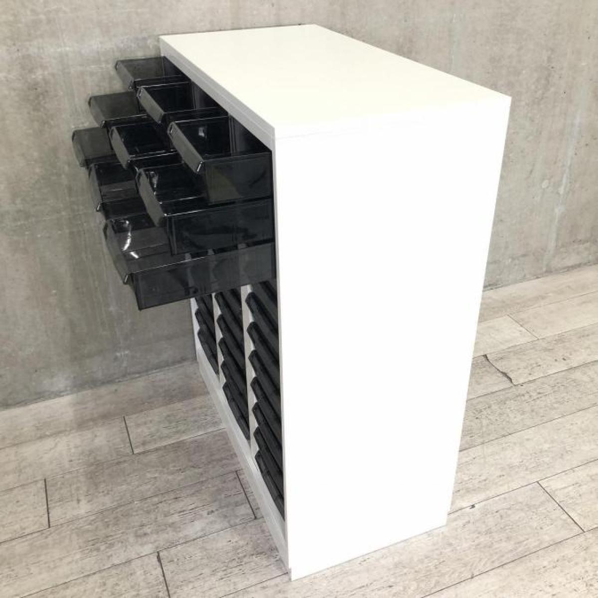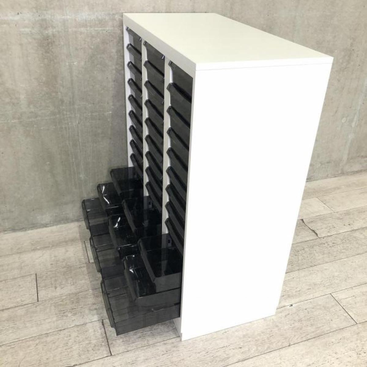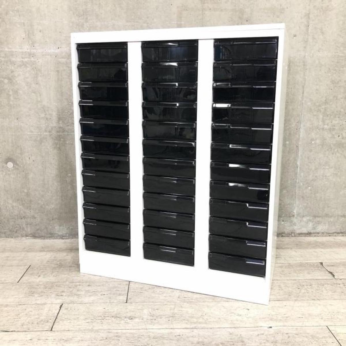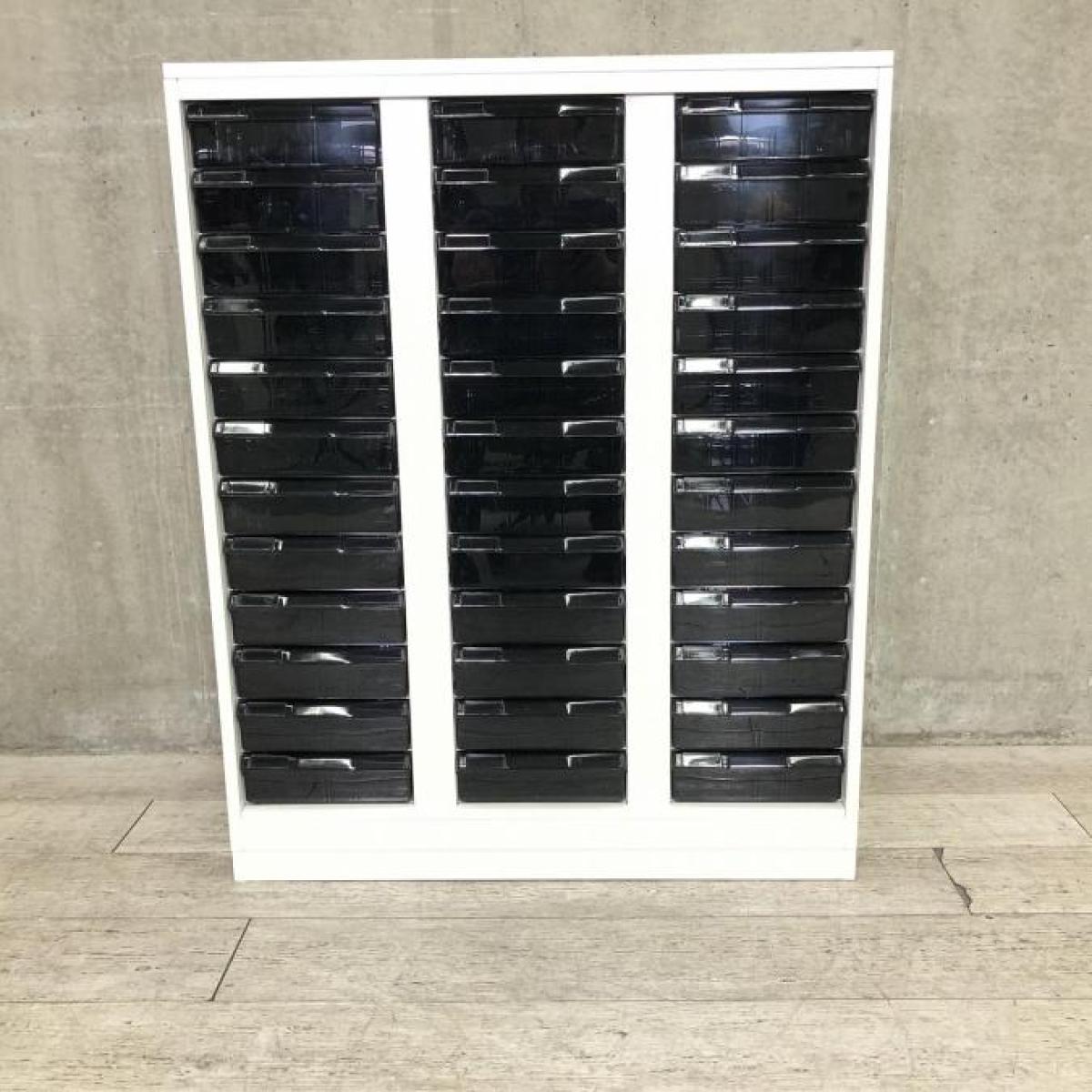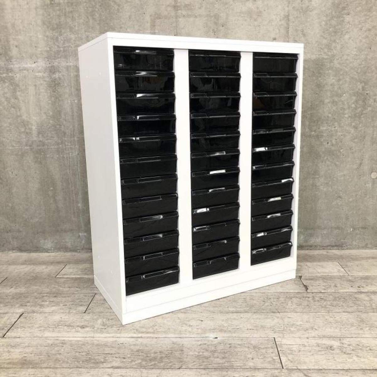 【書類・備品整理の必需品!】【珍しいクリトレが入荷!3列×浅型11段+深型6段】■ウチダ(UCHIDA)製 BEストレージシリーズ クリスタルトレー ローキャビネット ■3列×浅型11段+深型6段 ■色:ホワイト/トレイ:ブラック