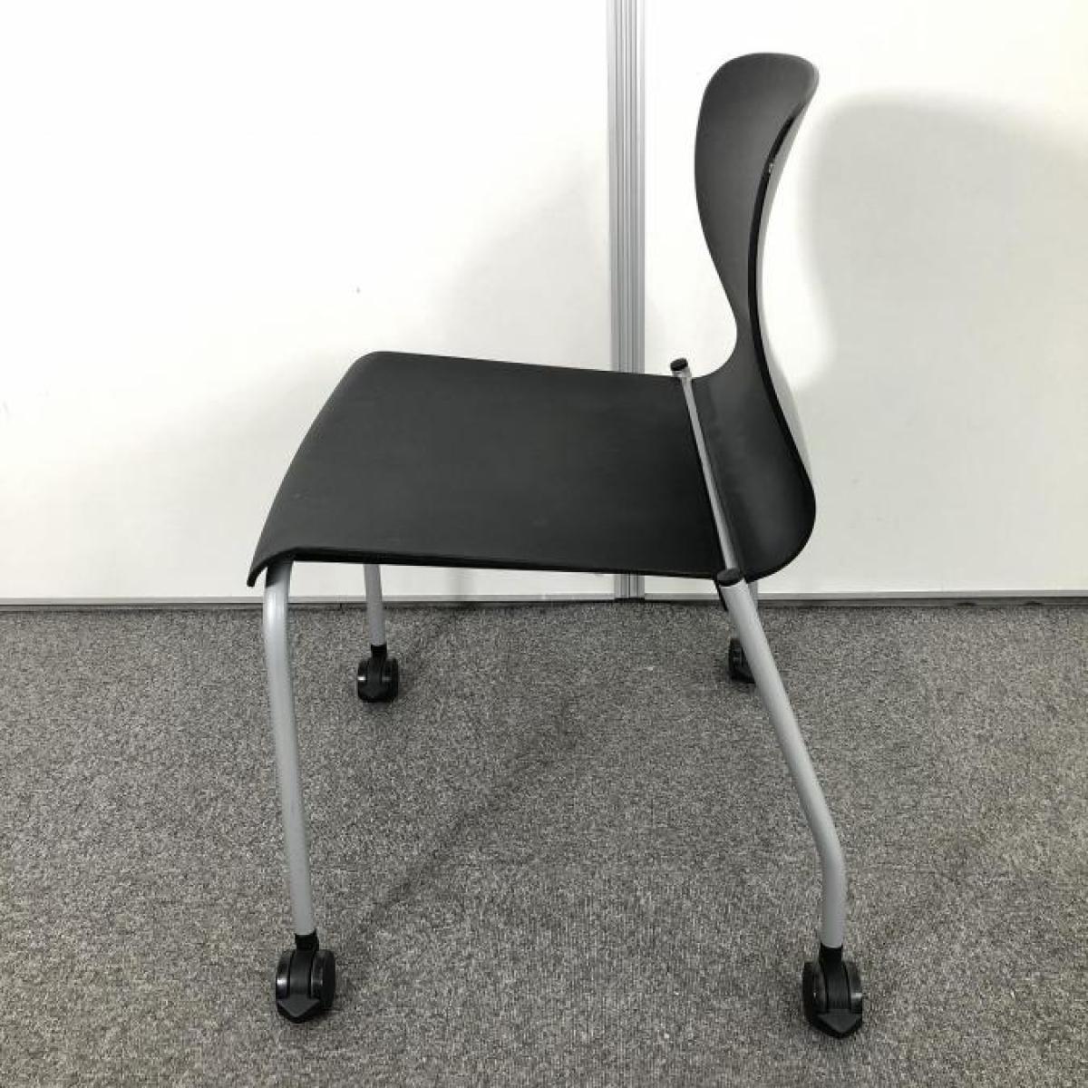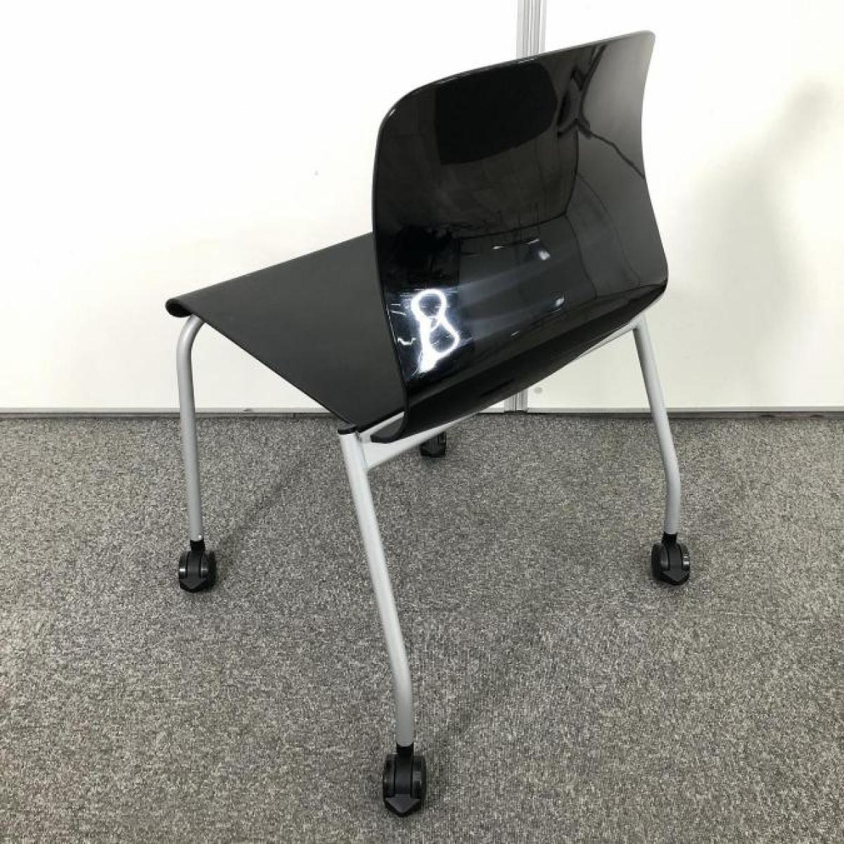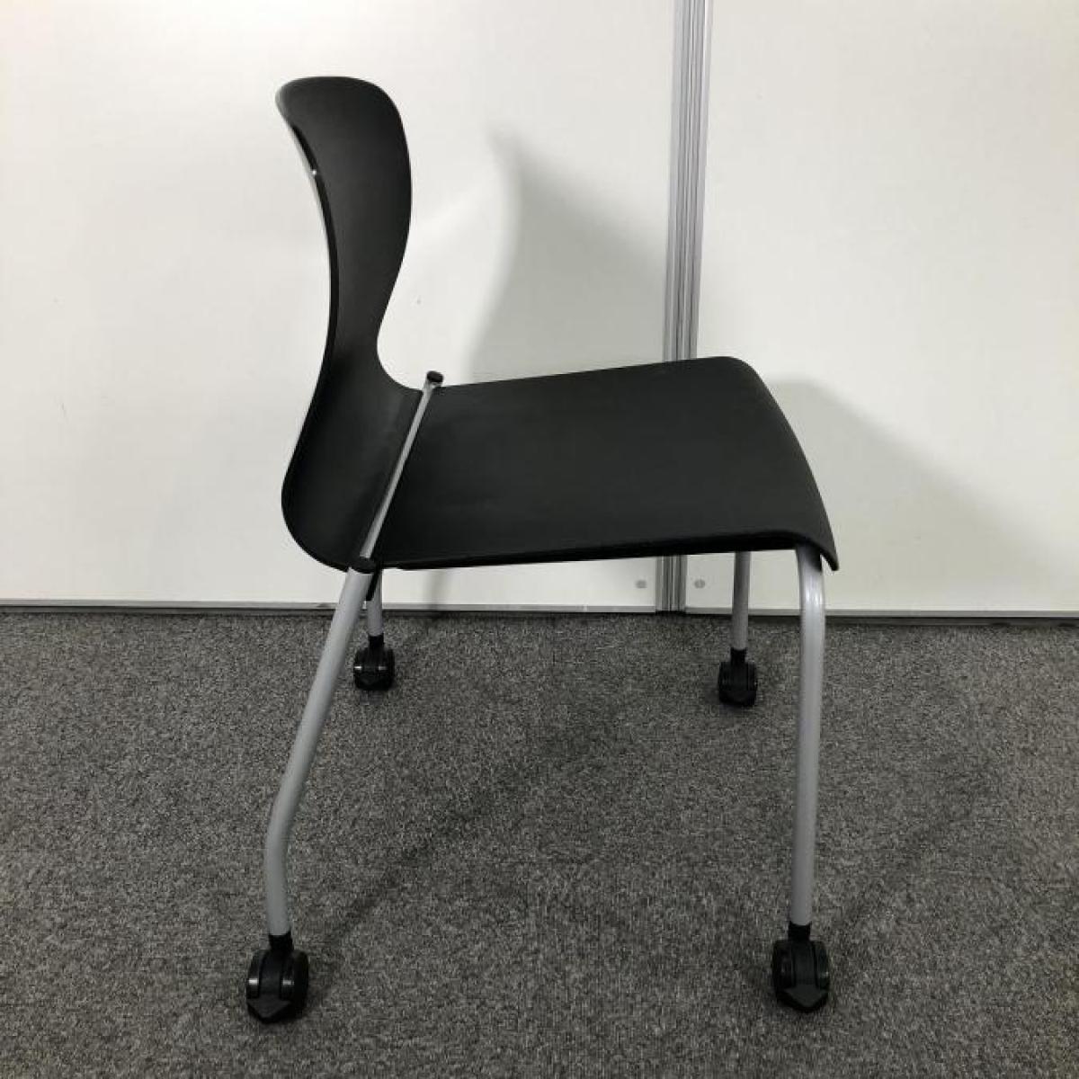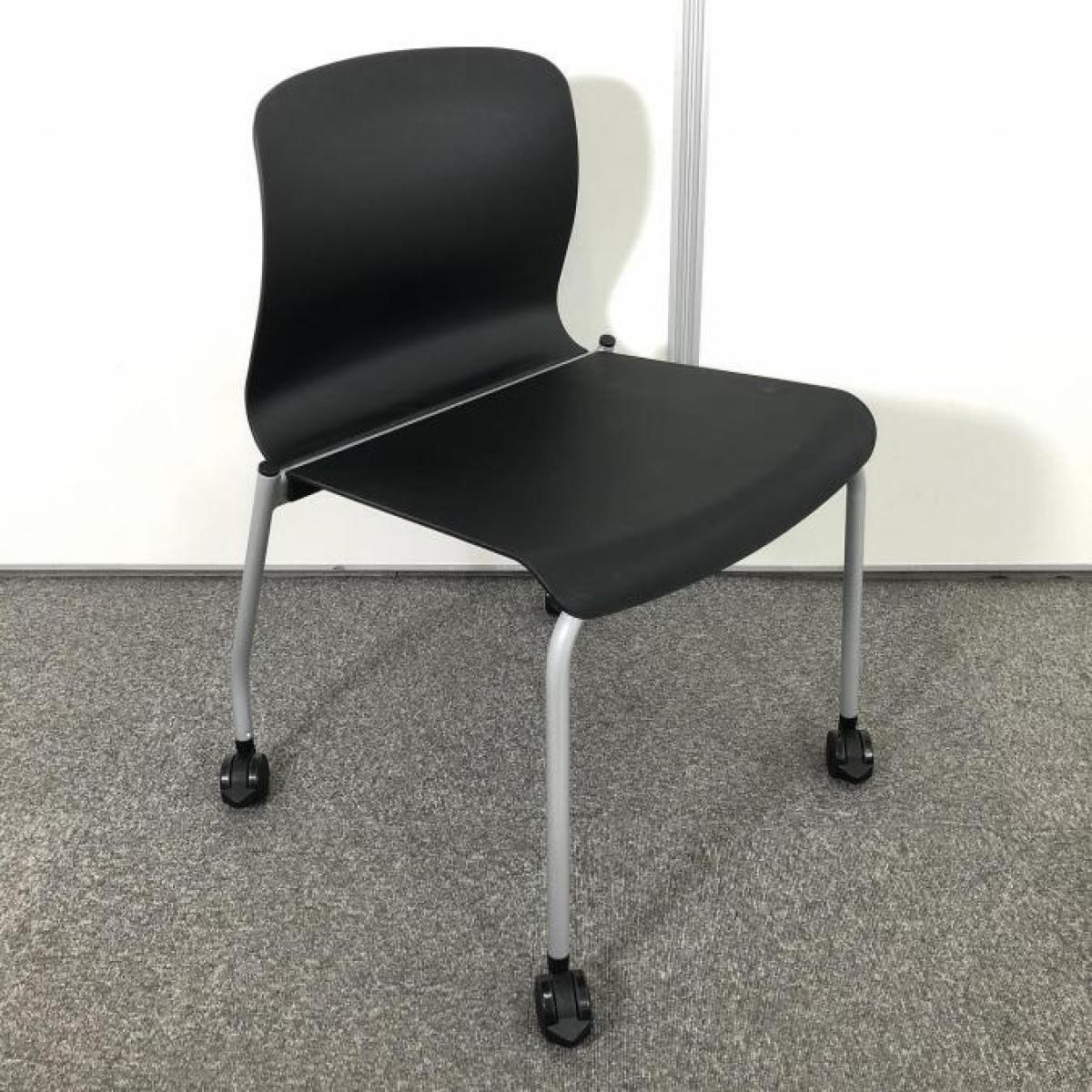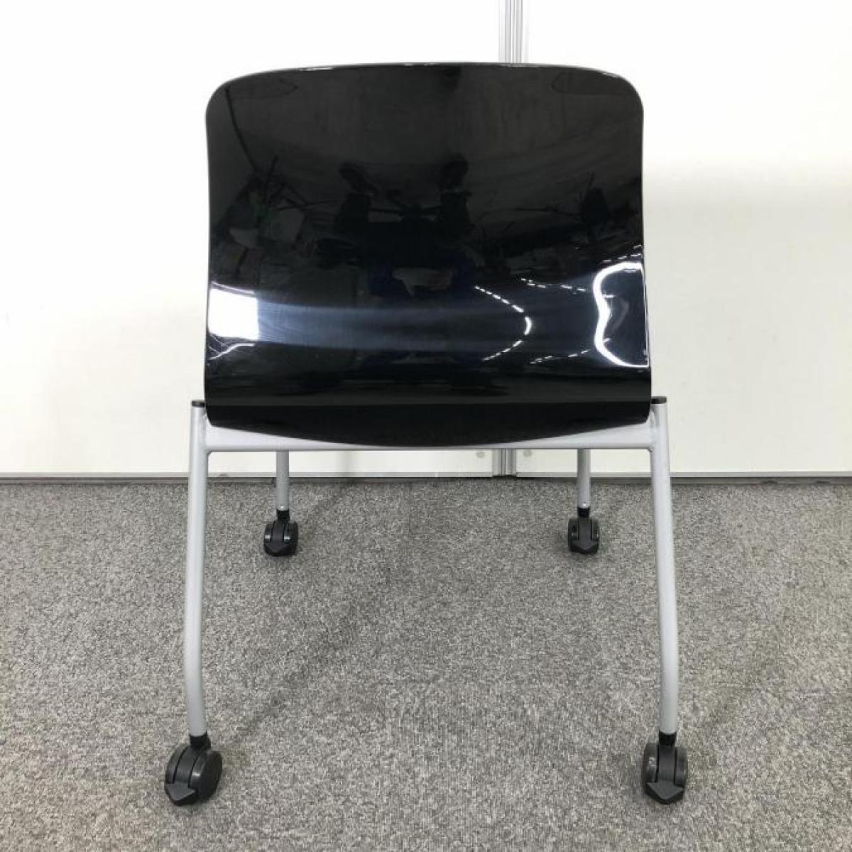【背の曲線が美しい!人気のスタッキングチェア!キャスター付きで移動も楽々!】■コクヨ アリーナC スタッキングチェア ミーティングチェア 肘無し キャスター付き ■ブラック 【ON】【倉庫在庫品】- 春日部・越谷店