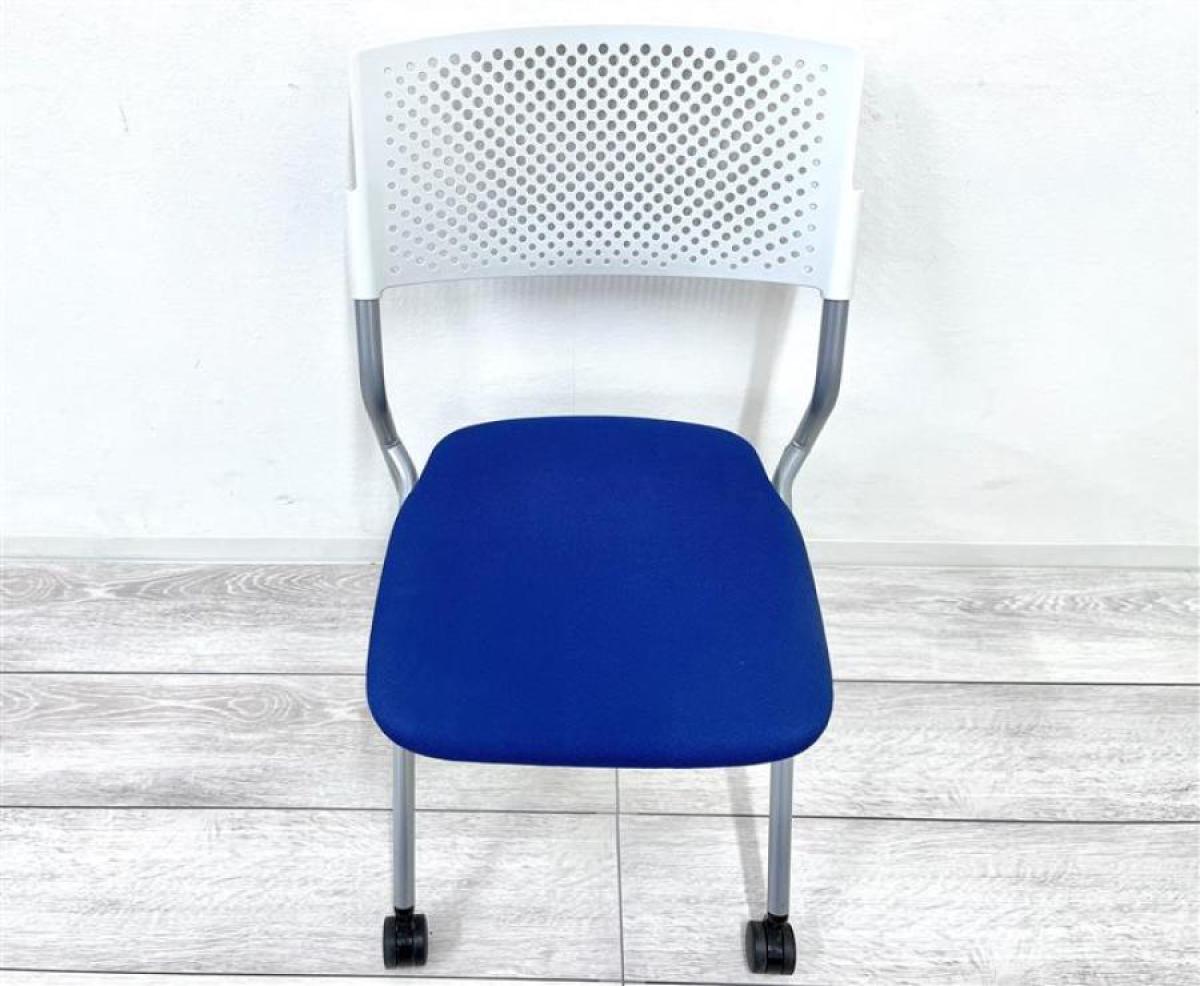 【6脚限定】【在庫入替品】【スタイリッシュなネスティングチェア!シンプルデザインで様々なミーティングシーンにぴったりフィット!】■ウチダ(UCHIDA)製 FM265 ネスティングチェア ■座面ブルー×ホワイト背面 ■キャスター付 ■背面樹脂メッシュ オフィスバスターズ 梅田本店【T9】