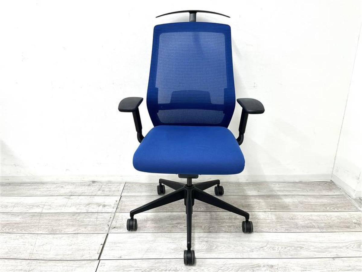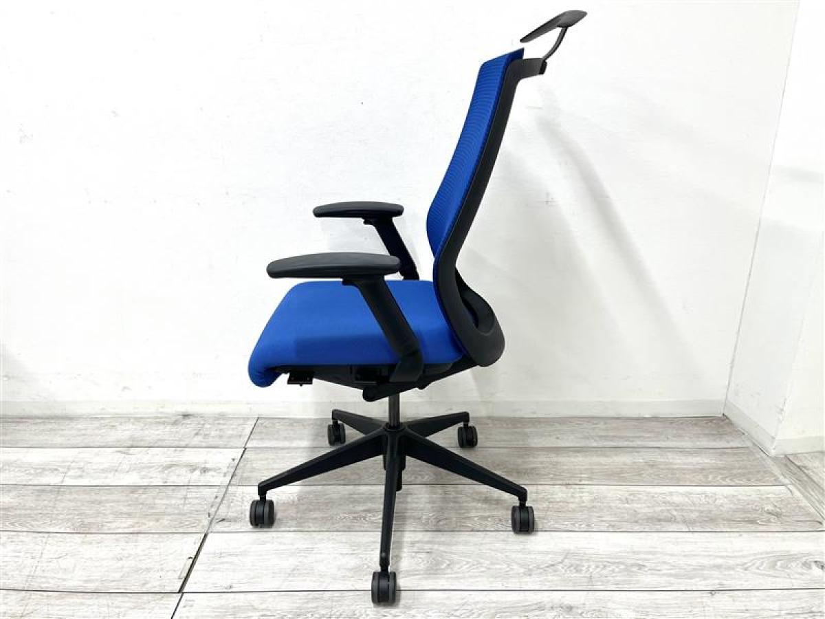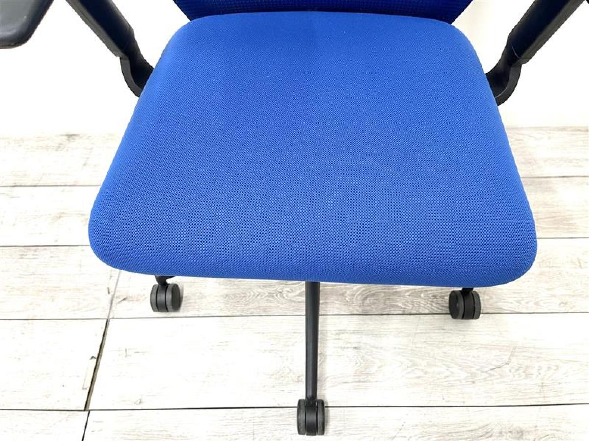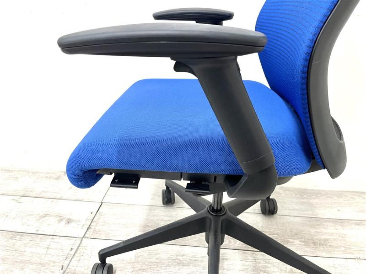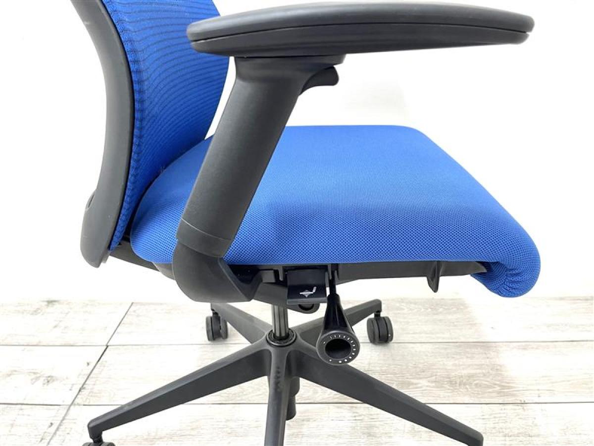 【定価約13万円】【リアルシンクロリクライニング機能により、他のチェアには無いスムーズな動作】■内田洋行/セレッツァ ■肘付OAチェア ■ブルー ■可動肘 ハンガー付き- 在庫数