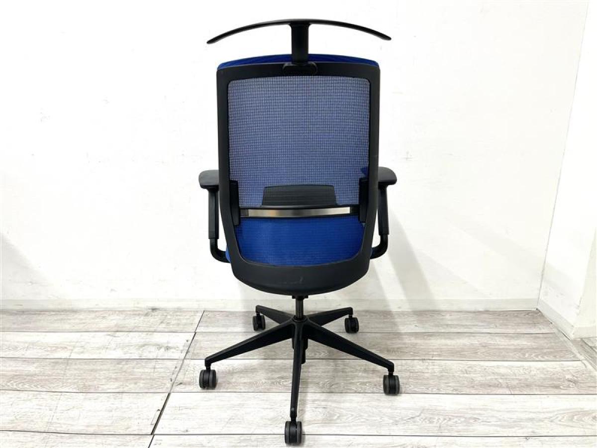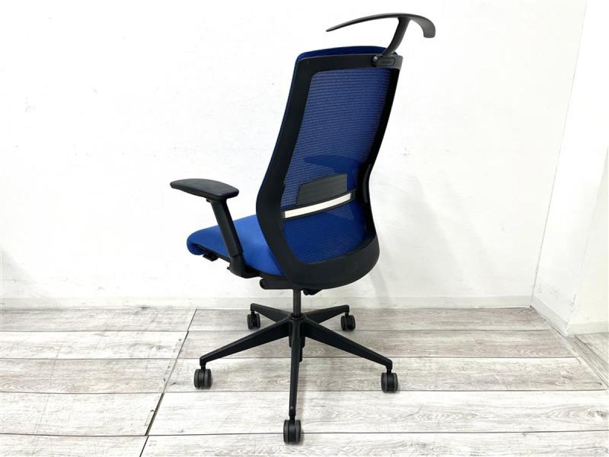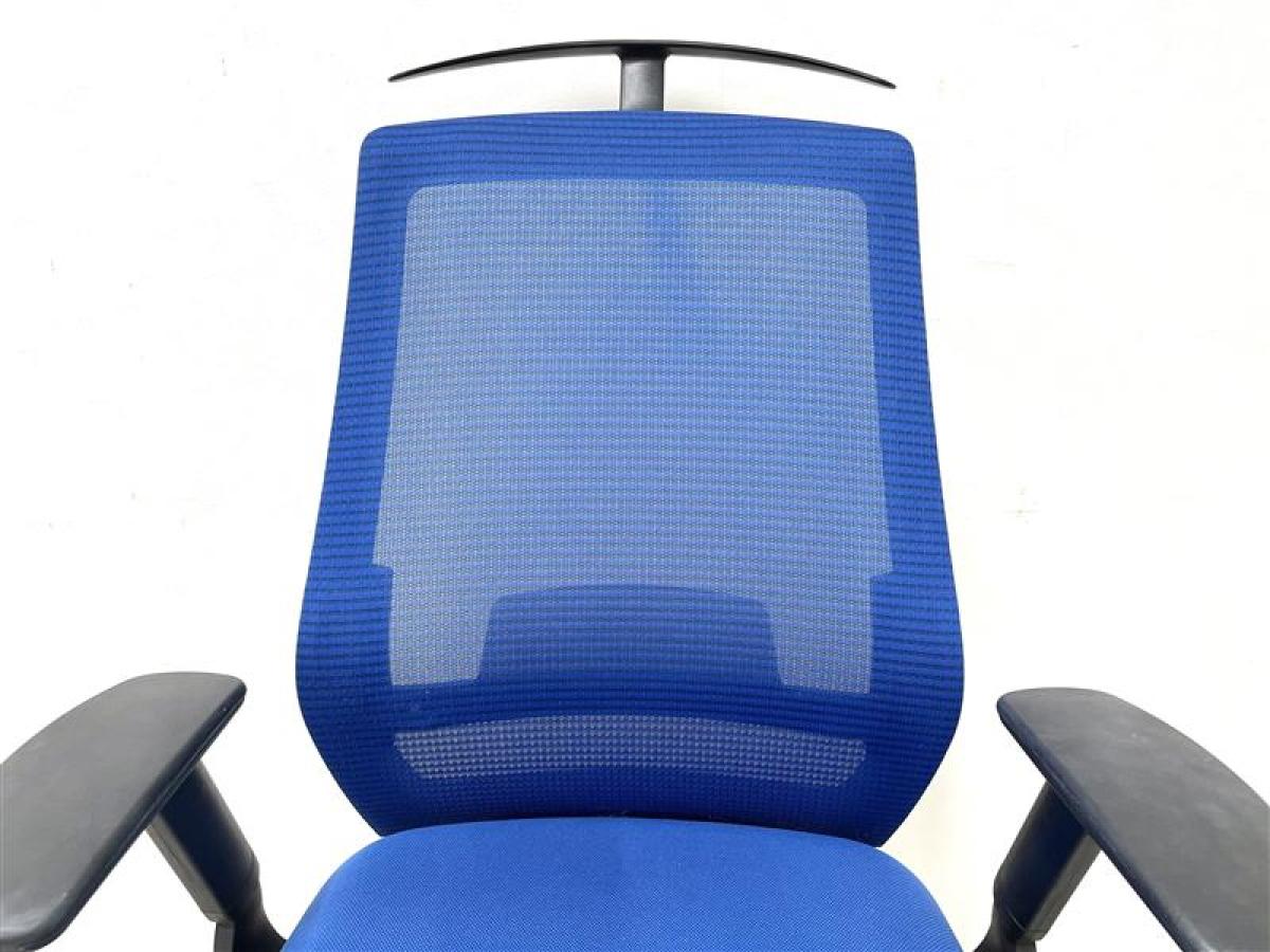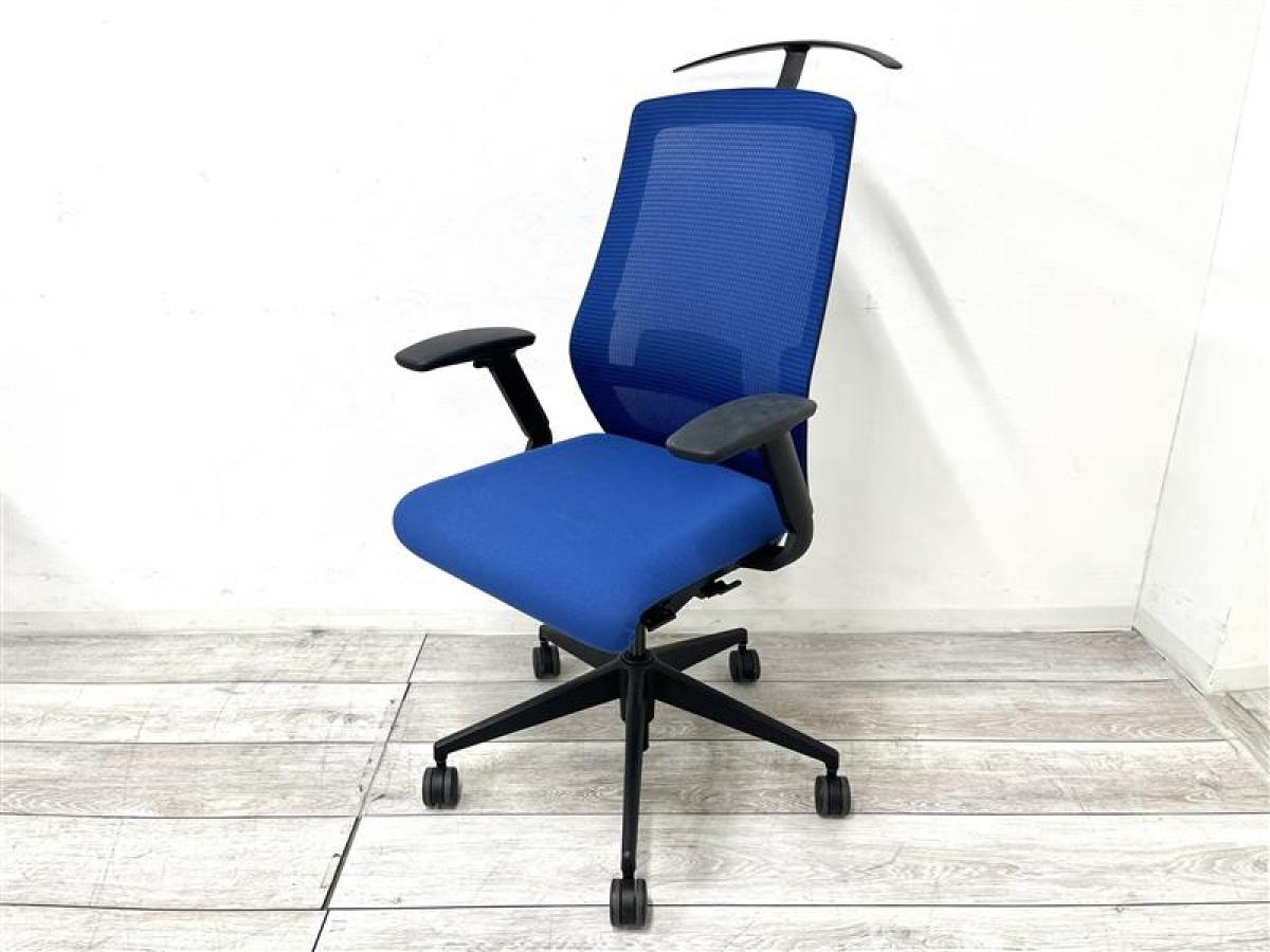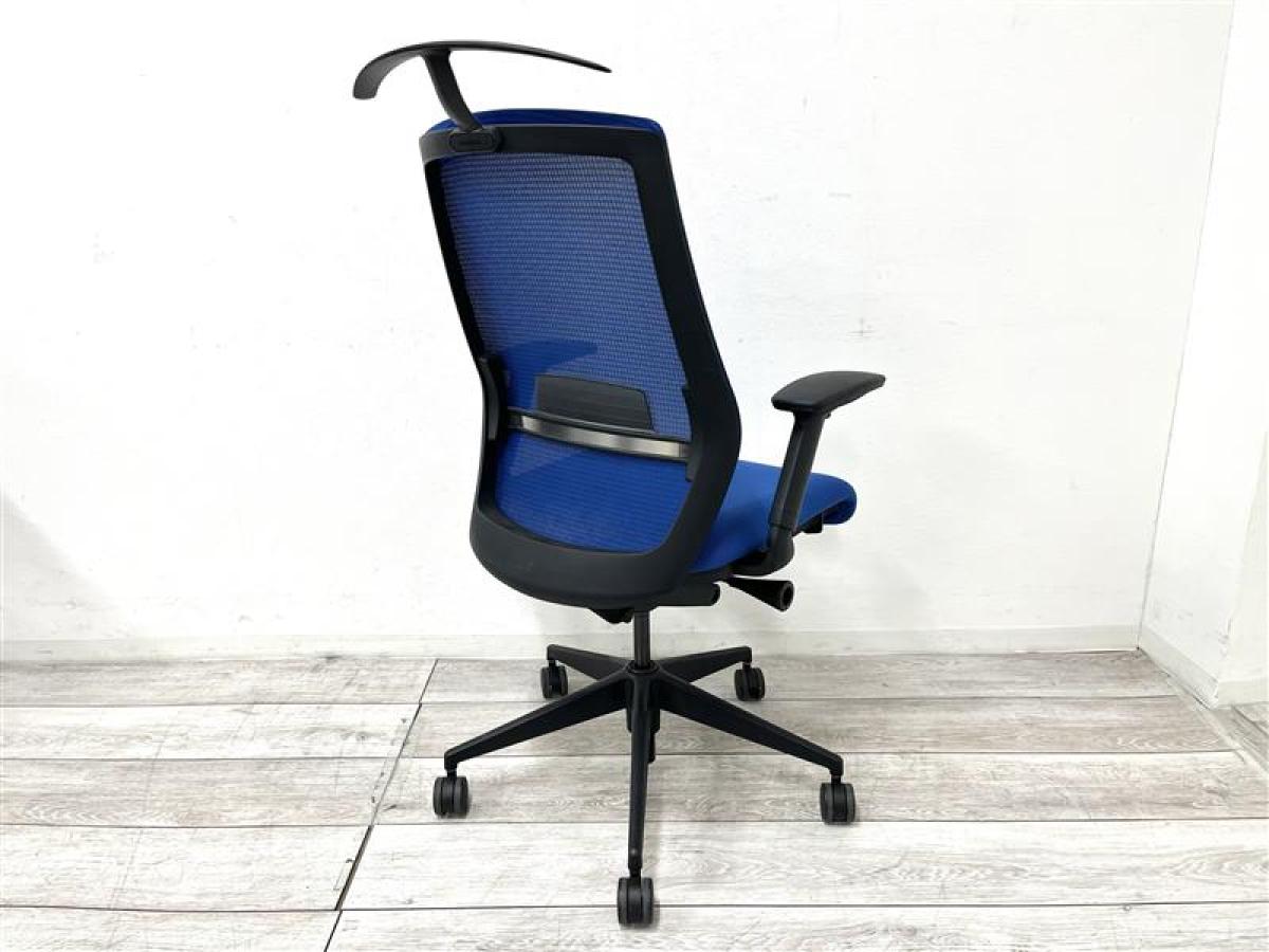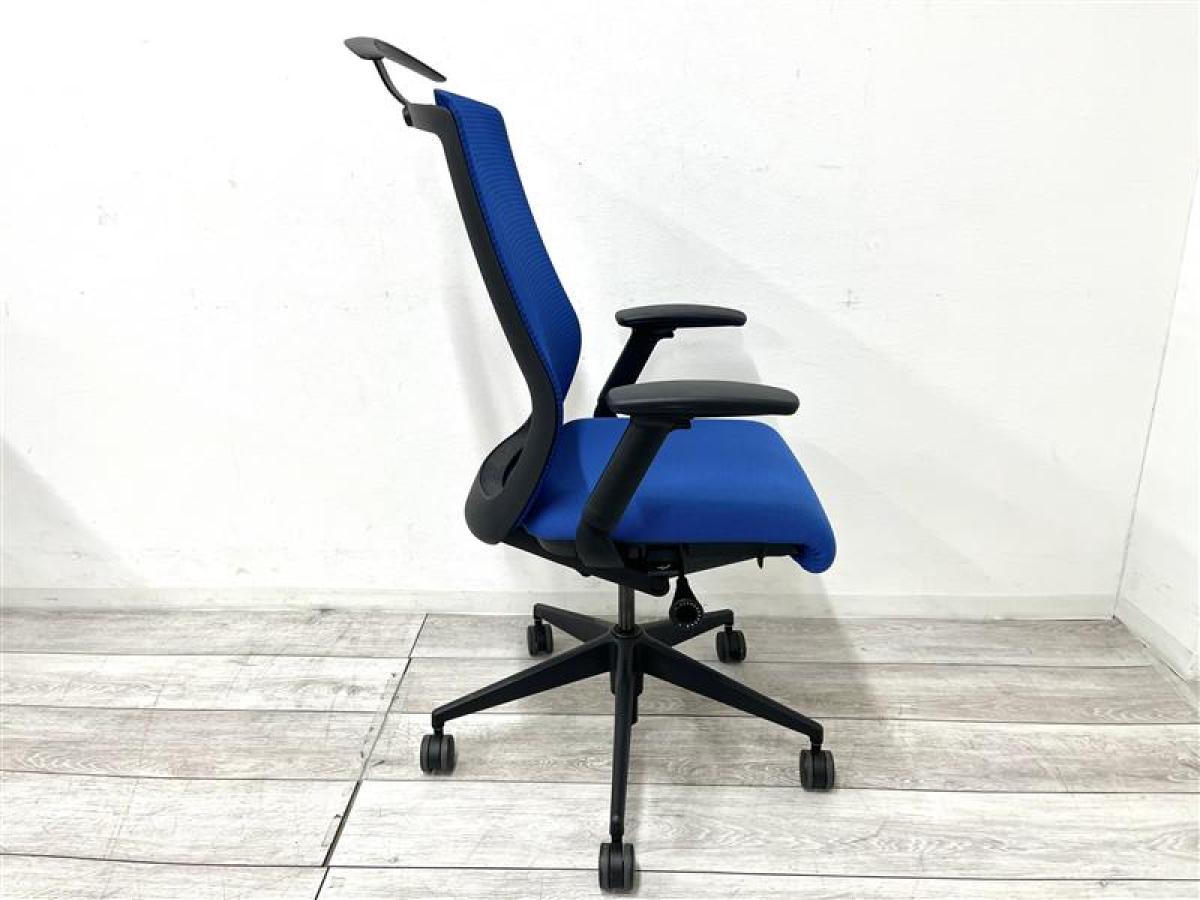 【定価約13万円】【リアルシンクロリクライニング機能により、他のチェアには無いスムーズな動作】■内田洋行/セレッツァ ■肘付OAチェア ■ブルー ■可動肘 ハンガー付き- 在庫数