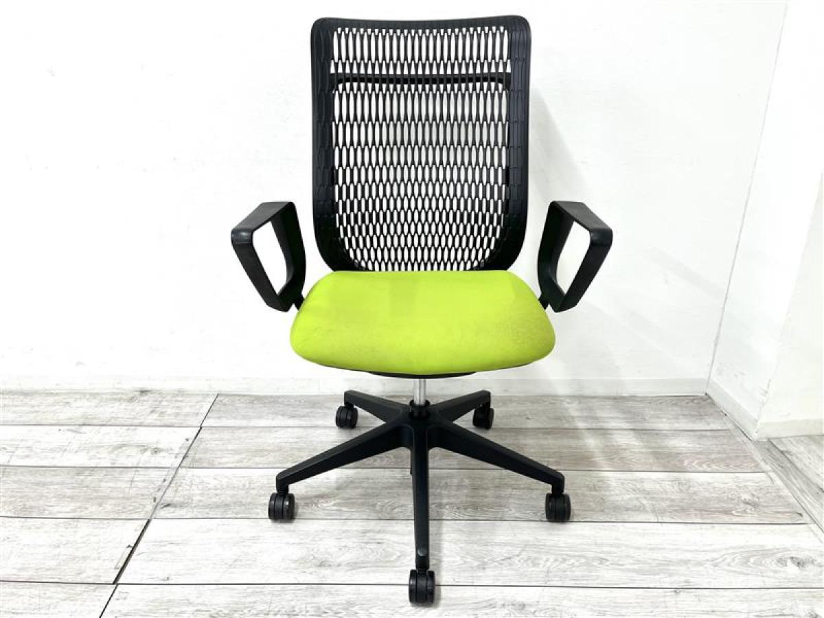 【定価約7万円】【しなやかにフィットする3Dメッシュ!ゆったり背中をサポートするハイバック!】■ウチダ製 AJチェア 肘付ハイバック ■座面グリーン×背面・脚ブラック ■背面樹脂メッシュサーキュラーバリューCO2削減量の算出について