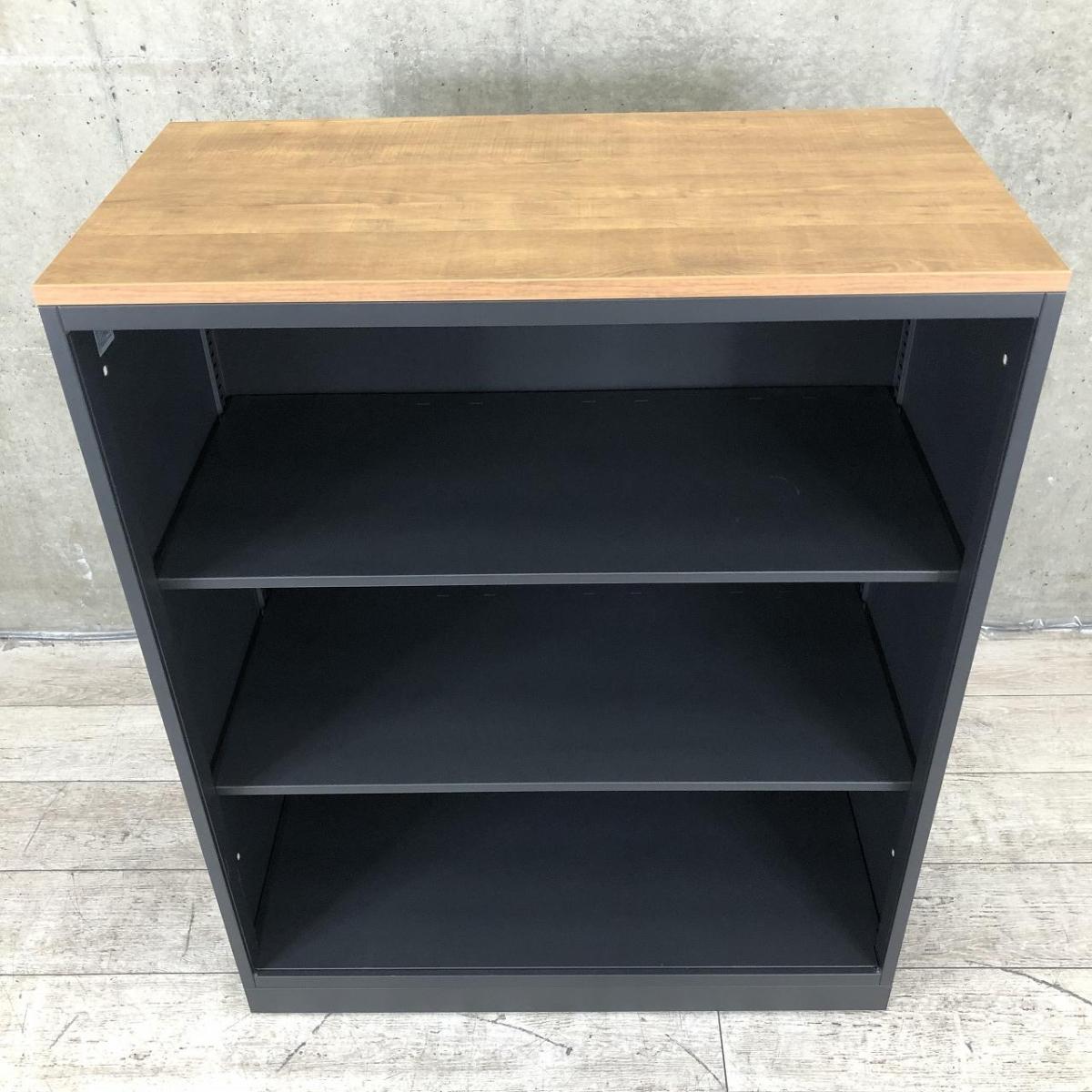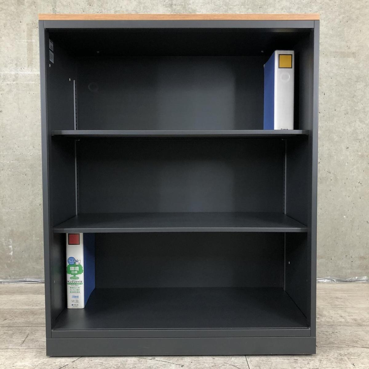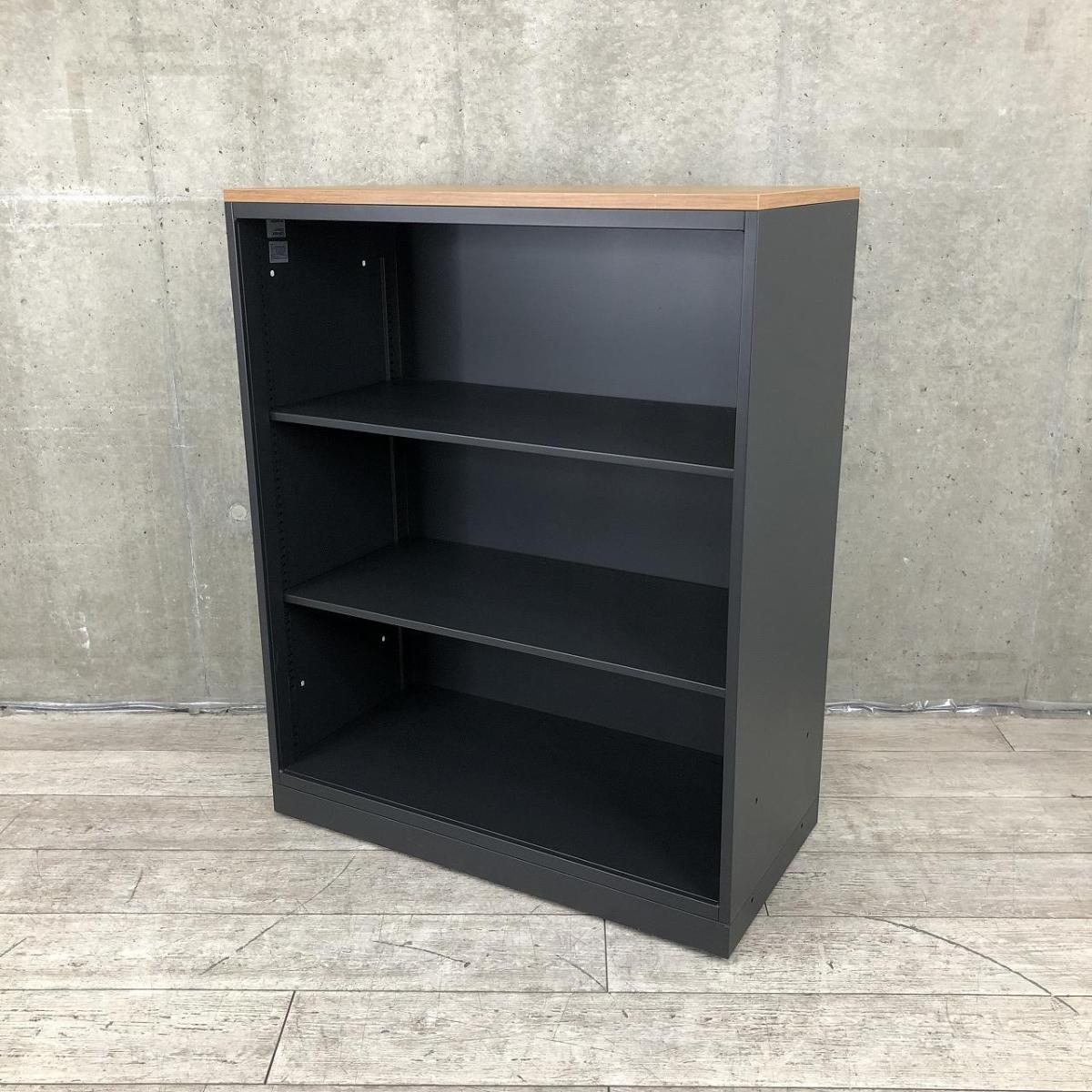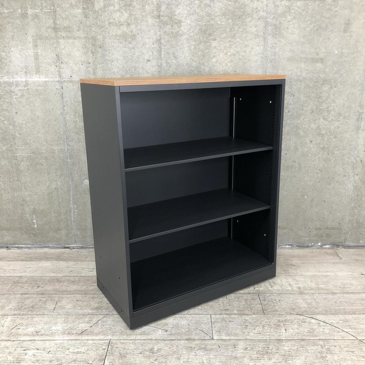 【レアなブラックカラー入荷!視認性に優れたオープンキャビネット!便利な天板付き!】■イトーキ(ITOKI)製 エスキャビネット(eS) オープン書庫 ローキャビネット W900×D450㎜ ■本体:ブラック/天板:木目ナチュラル- 品川・三田店