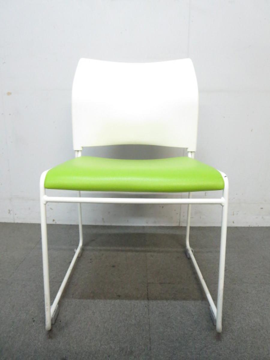 【明るいイスで気分も明るく!会議室/セミナー/食堂】■スタッキングチェア グリーン&ホワイト!- 在庫数