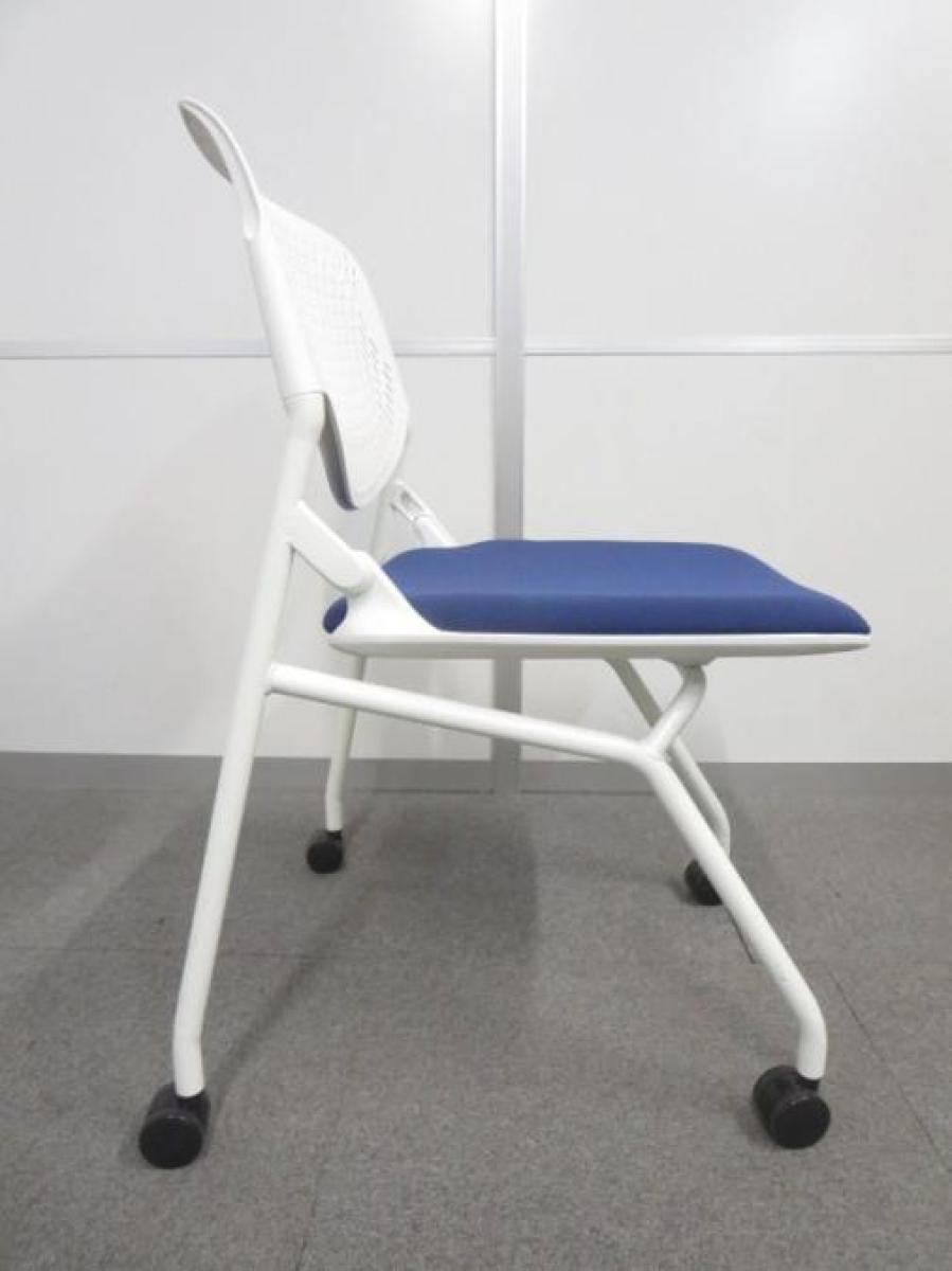 【在庫入替セール】オカムラ ルナ ネスティングチェア 背パッドなし ミディアムブルー×ホワイトフレーム 会議用・打ち合わせ用に最適のチェア 【愛知・名古屋・豊田・静岡・浜松】
