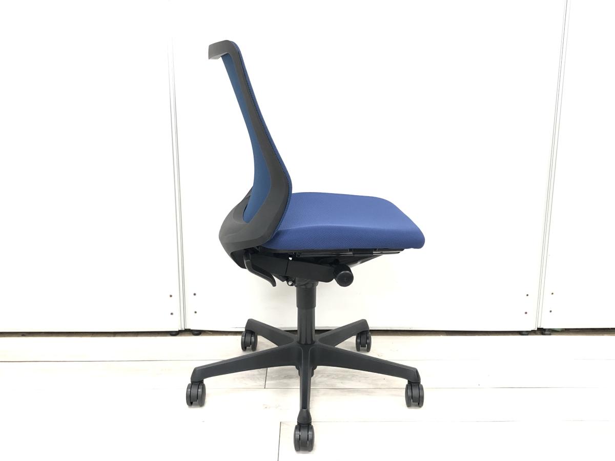 【背中を立体的に包み込む!】■オカムラ(okamura)製 フルーエントチェア(Fluent) ローバック 肘無し 背面メッシュ ■ミディアムブルー×ブラックシェル【入替セールにつき40%OFF!】