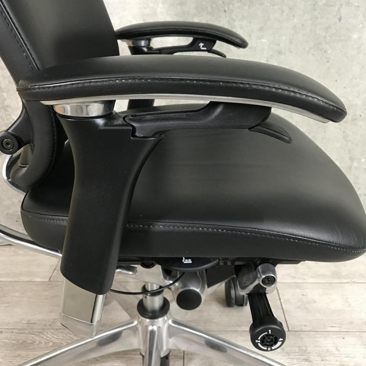 【世界で認められた革新的タスクチェア!レアなレザー張地で入荷!!】■オカムラ(okamura)製 コンテッサ(Contessa)チェア 肘付 ハイバック ■可動肘/ヘッドレスト付 ■レザー張地 ■ブラック 【人間工学に基づいた快適な座り心地を実現!】- 茨城南店