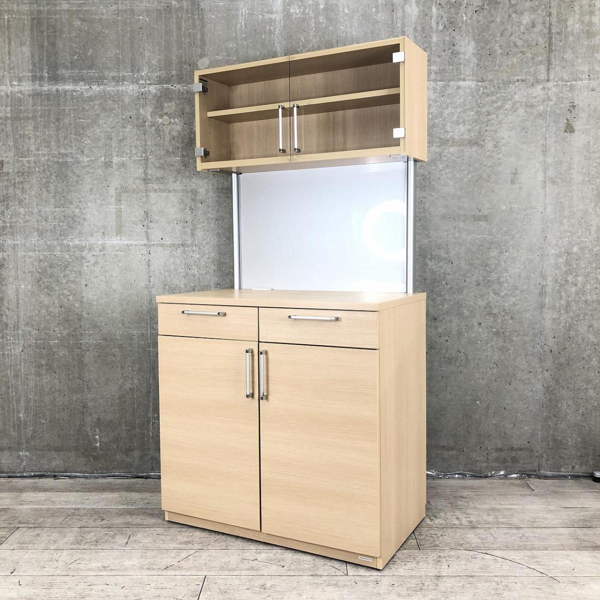 【おしゃれなキッチンキャビネット!給湯室にオススメ】■オカムラ(okamura)製 アルトカフェ(Altcafe)シリーズ キッチンキャビネット ■W900×D540×H1785㎜ ■コンセント付 ■木目ナチュラル- 茨城南店