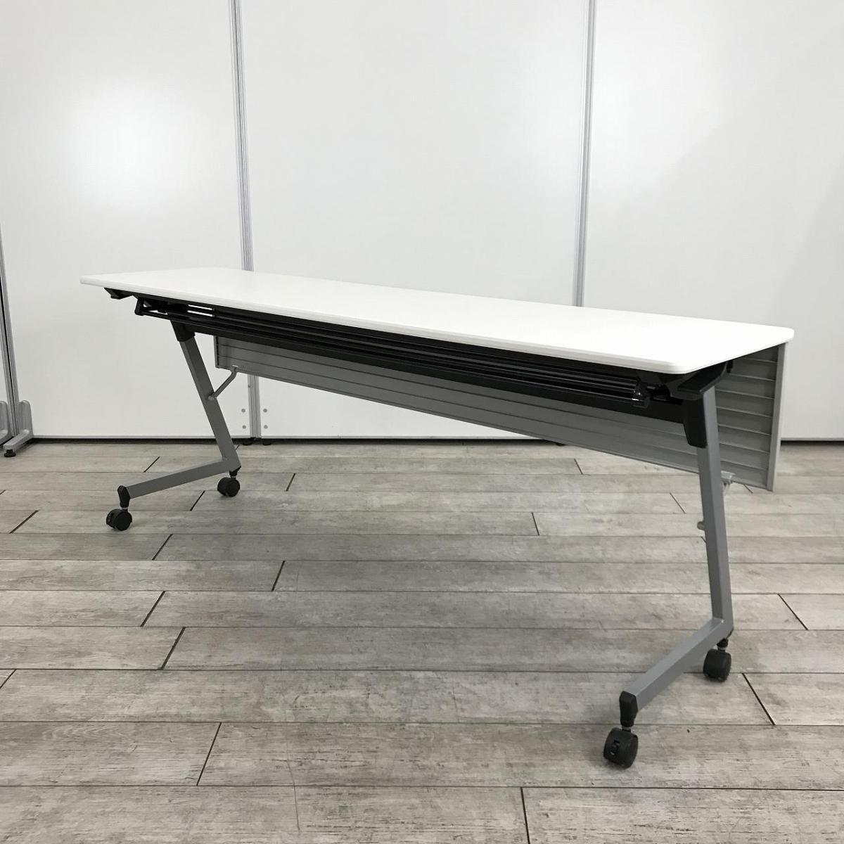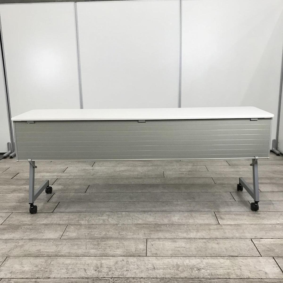 【在庫入替セール】【1台限定】【会議室の作成や増設に!平行スタックで省スペース!】■イトーキ(ITOKI) HXシリーズ サイドスタックテーブル ミーテイングテーブル ■W1800×D450㎜ ■ホワイト ■幕板付き(色:グレー) ■キャスター付き【T8】- 神戸・三宮店