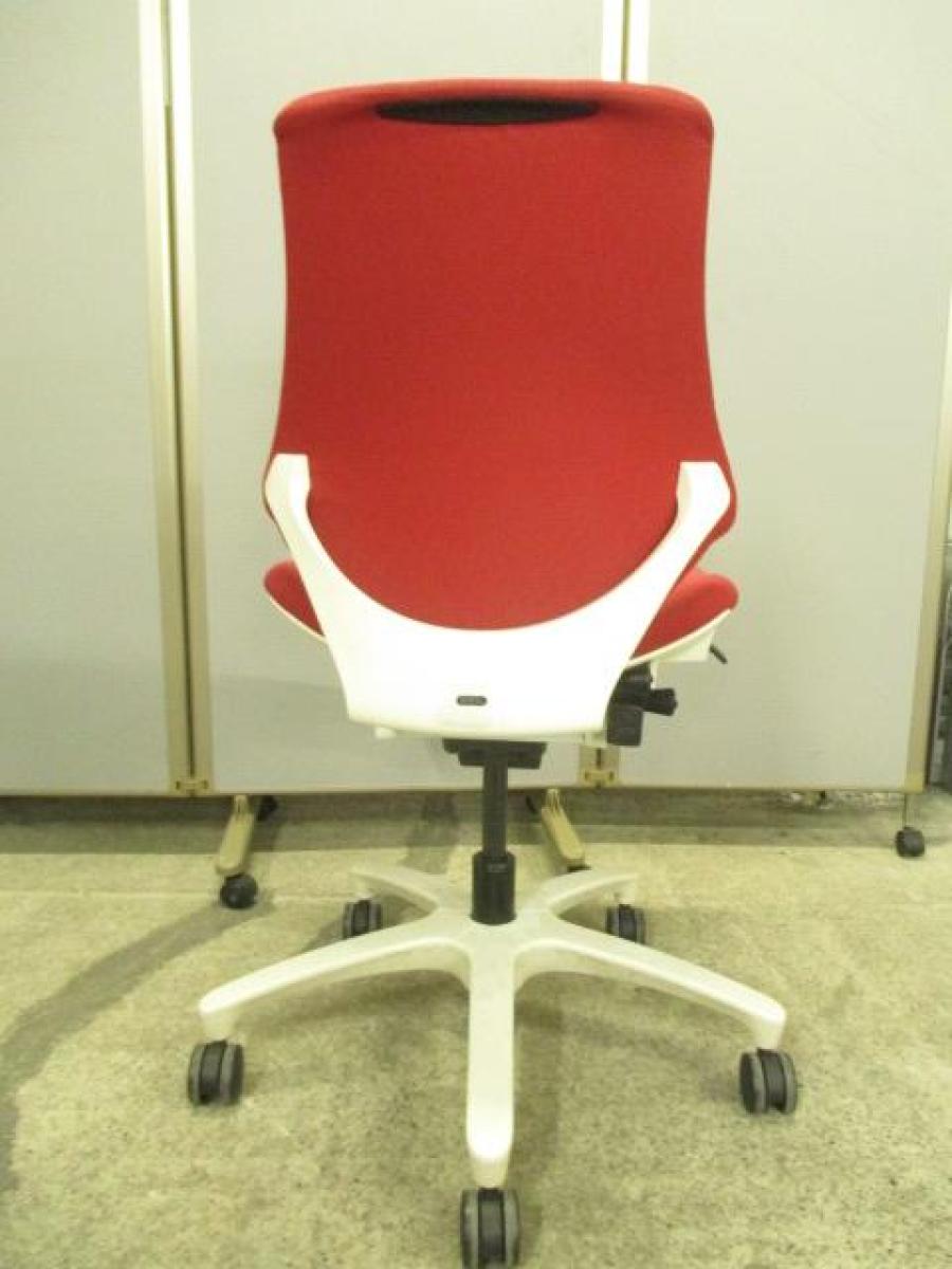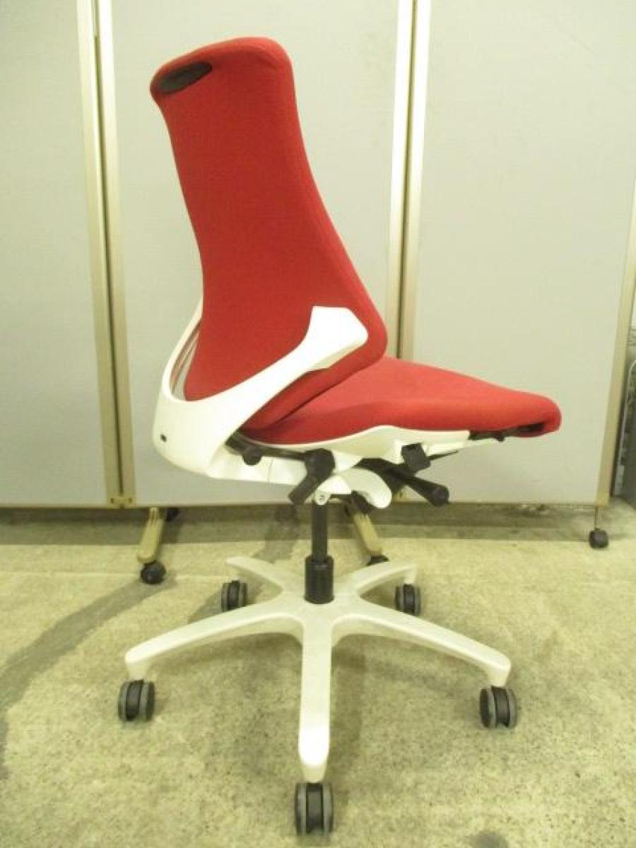 【肩から腕を開放する美しいフォルム!】■イトーキ製 エフチェア レッド クロスタイプ ホワイトフレーム ■姿勢の変化にフレキシブルに対応!サーキュラーバリューCO2削減量の算出について