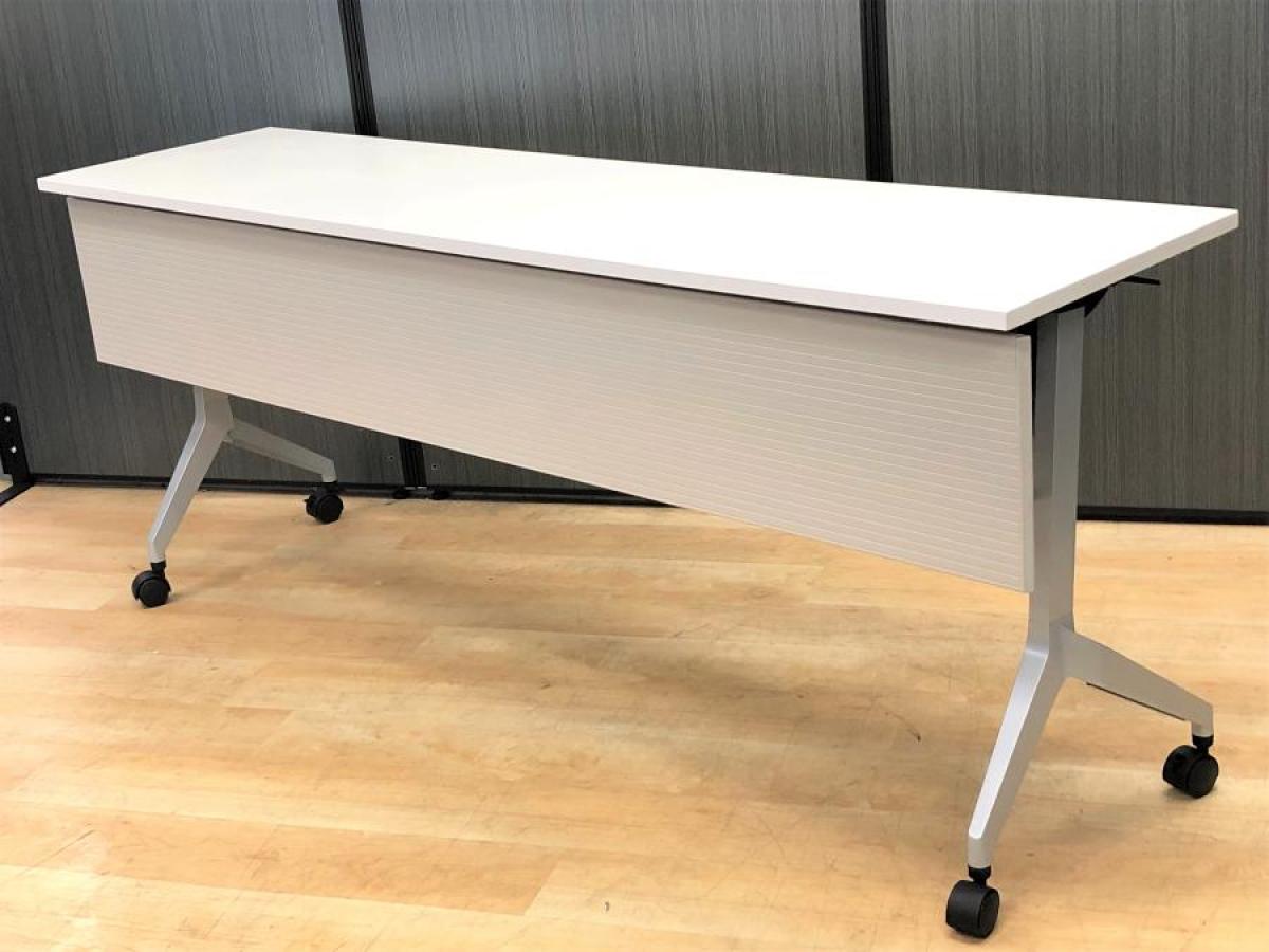 【定価約7万円】コンパクトな幅800㎜サイズのスタッキングテーブル! ■内田洋行/パラグラフ/ホワイト フラップテーブル 天板跳ね上げ 幕板付き