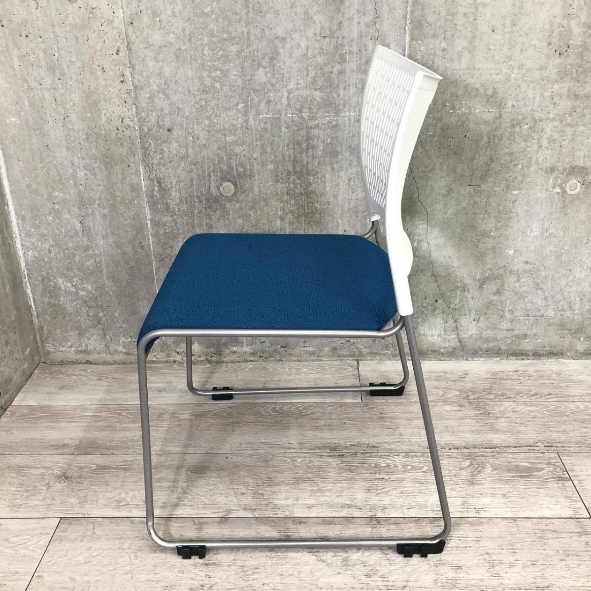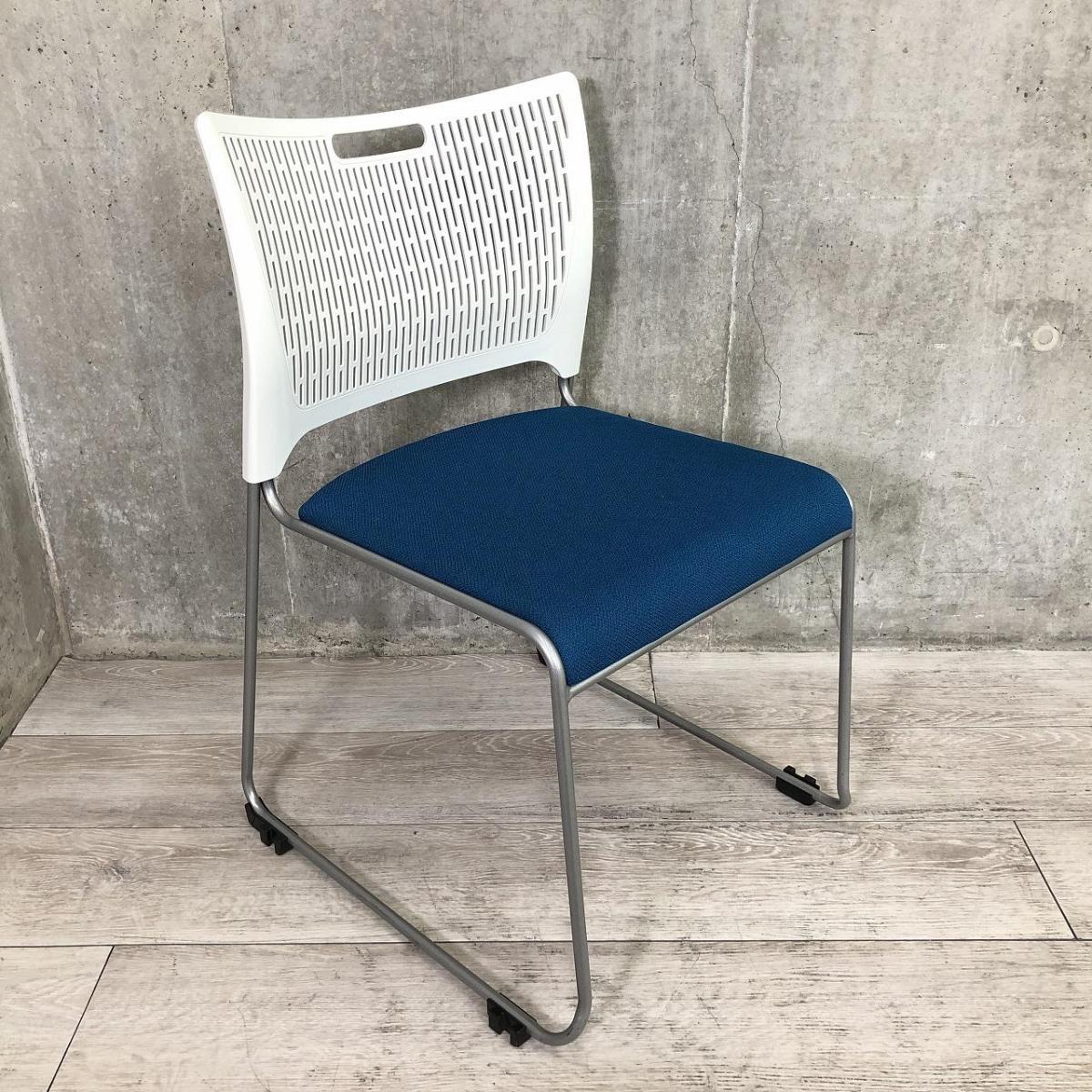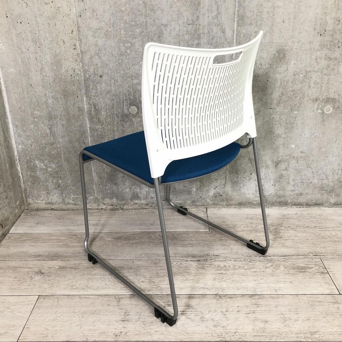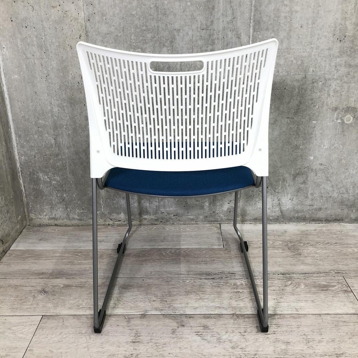 【重ねて収納可能!さわやかなカラーとシンプルデザイン!】■オカムラ製 レーテ スタッキングチェア ミーティングチェア ■キャスター付き ■座面ブルー×背面ホワイト【2412】弊社使用欄【A00990049】
