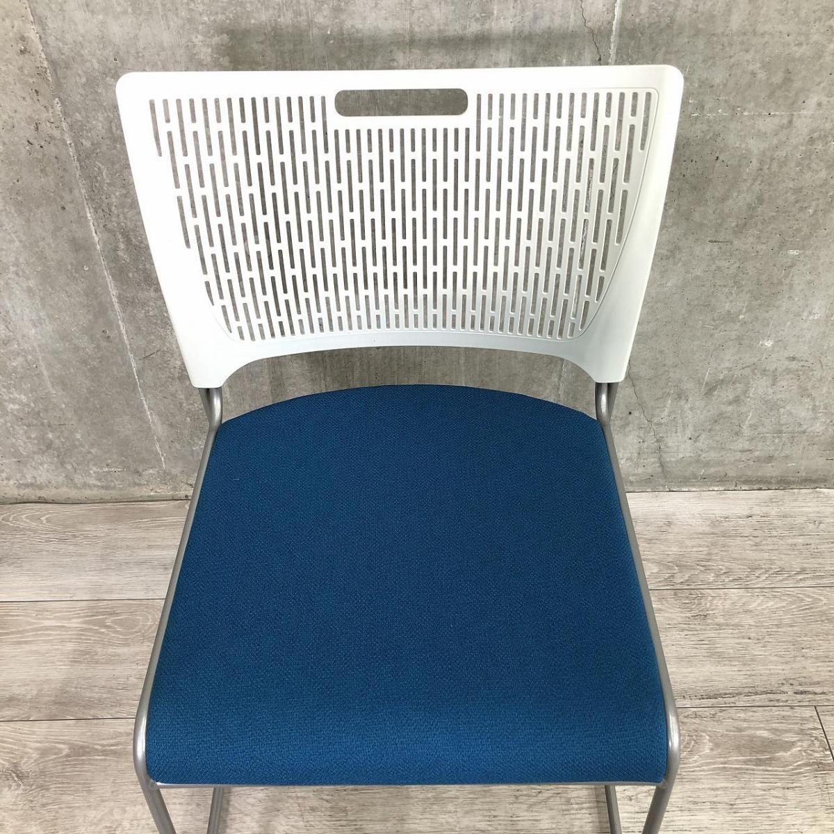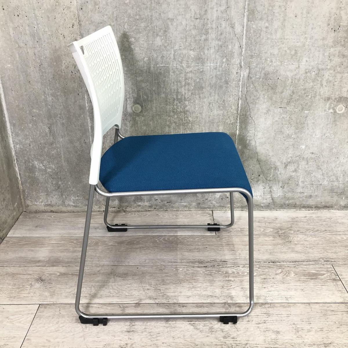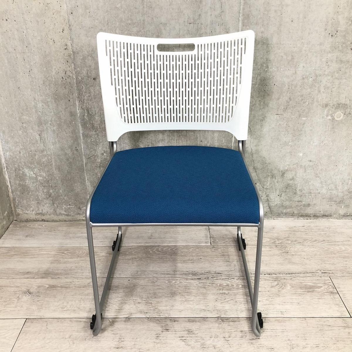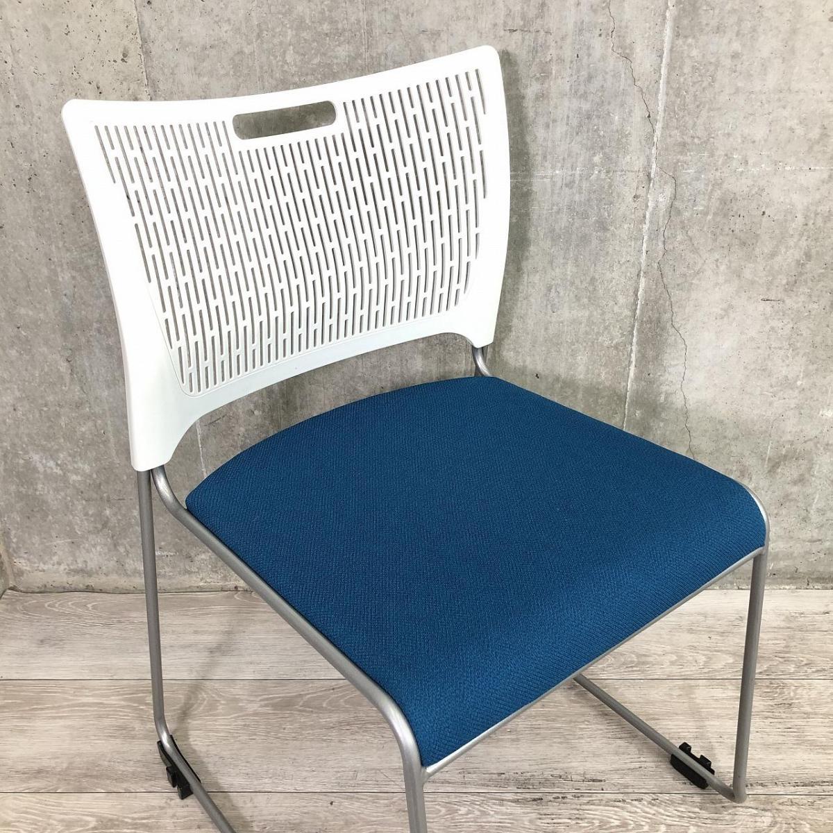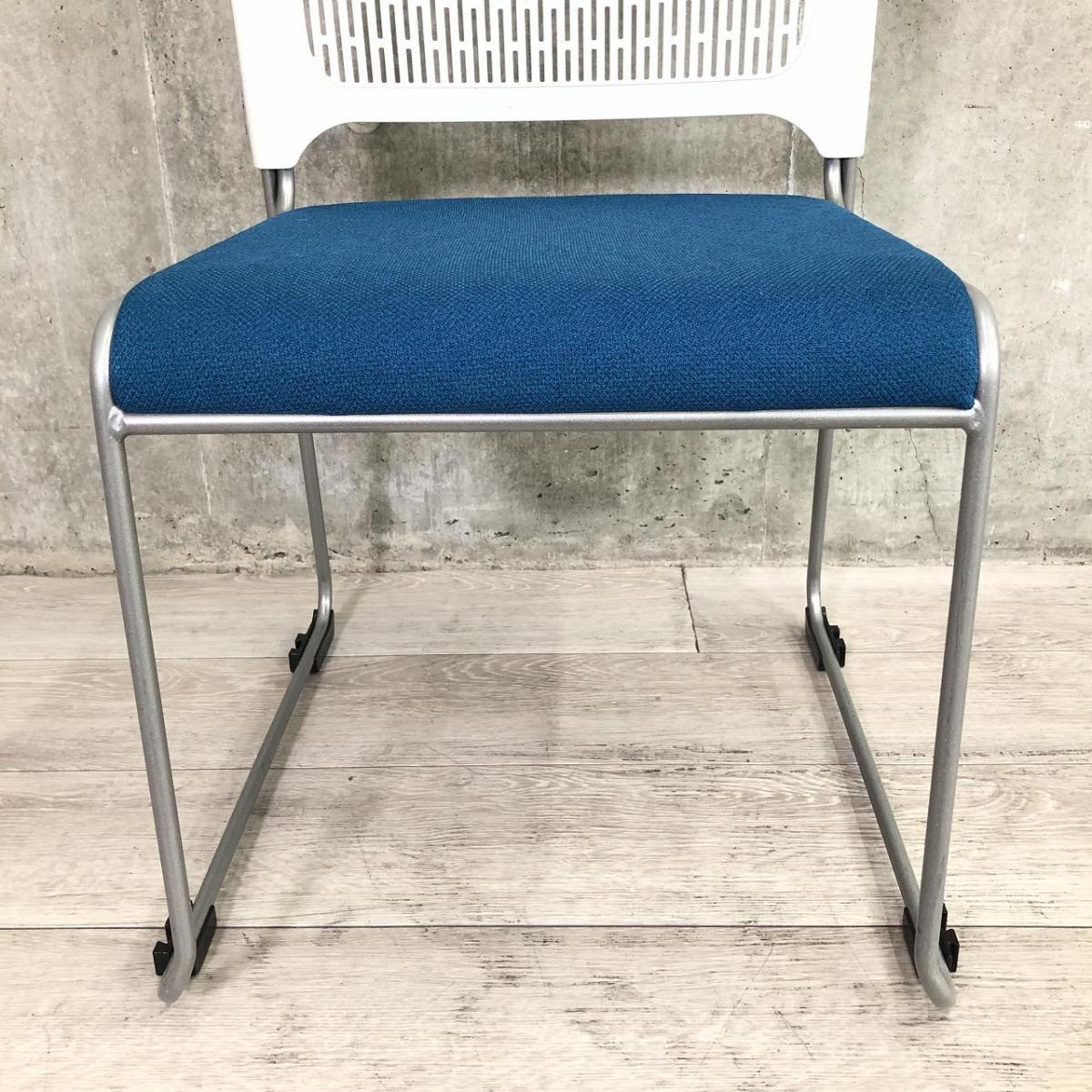【重ねて収納可能!さわやかなカラーとシンプルデザイン!】■オカムラ製 レーテ スタッキングチェア ミーティングチェア ■キャスター付き ■座面ブルー×背面ホワイト【2412】弊社使用欄【A00990049】