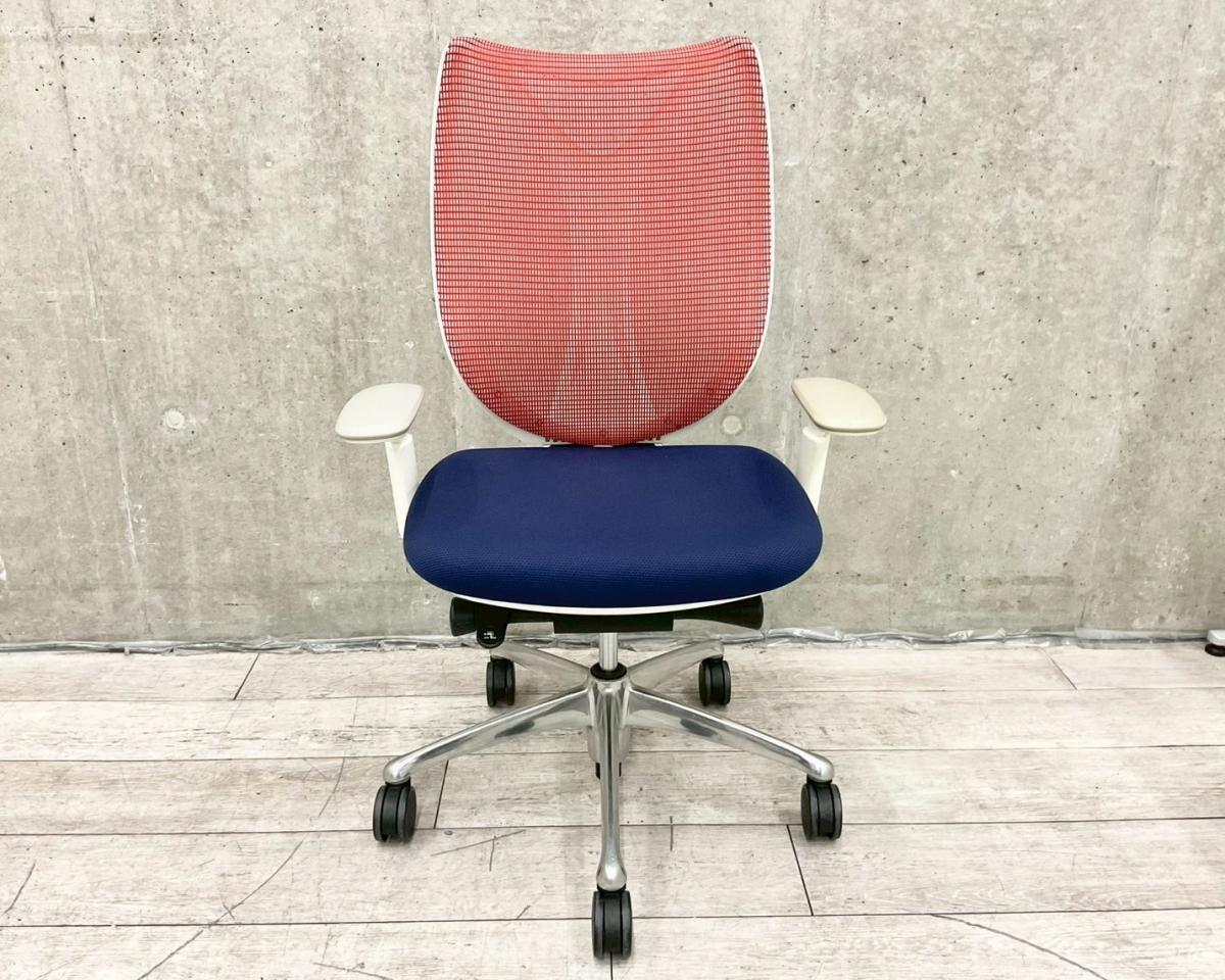 【在庫入替セール】【人間工学から生まれた最先端のワーキングチェア!】■オカムラ サブリナチェア 可動肘付 背:レッド / 座:ダークブルー ■流れるような美しいフォルム!姿勢に心地よくフィット!【T8】- なんば日本橋店