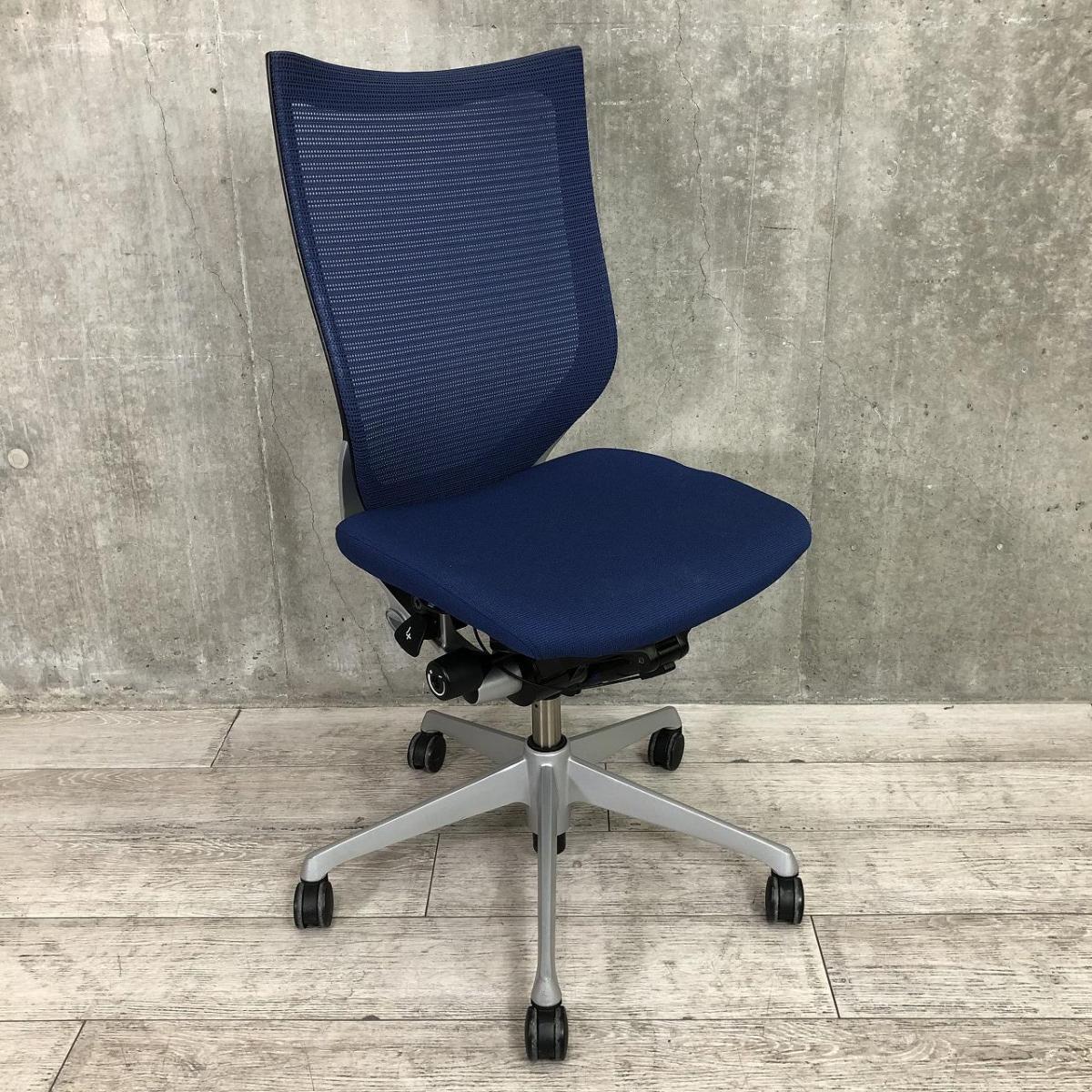 【2脚入荷】【状態要考慮】人気のオカムラ製バロンチェア!ブルーの背面がかっこいい!座面クッション&肘かけなしタイプ【A01030407】【202508】※