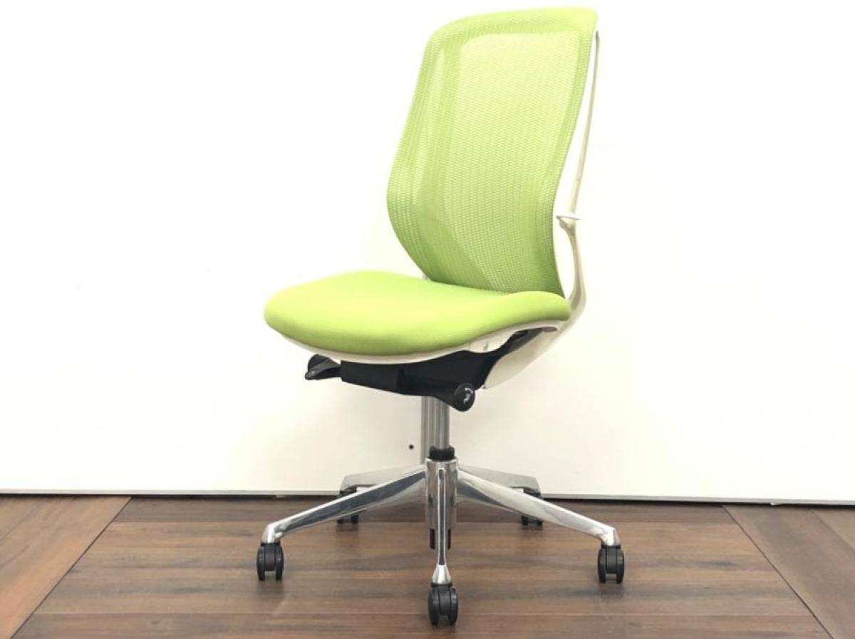 オカムラ製 シルフィ ライムグリーン ブラックフレーム 背面メッシュ ハイバック ハンガー付 樹脂脚 前傾チルト機能付き! オカムラ製品で最も人気を集める高機能メッシュチェア! 肘無しハイバックチェア!!