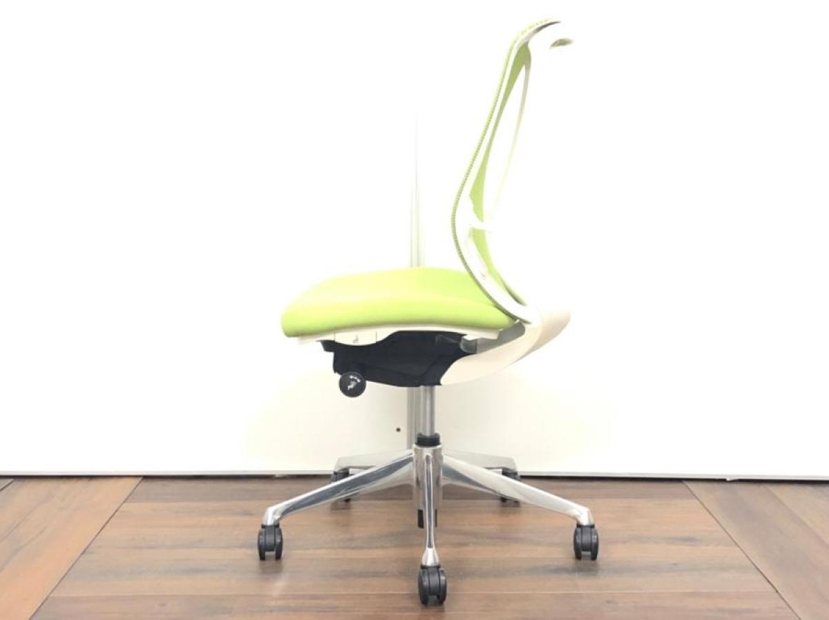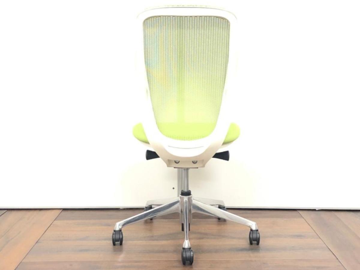 【三次元曲面が快適にフィット!!前傾チルト機能付の大人気メッシュチェア!】■オカムラ(okamura)製 シルフィー(Sylphy) 肘無ハイバック ■メッシュバック ■ライムグリーン × ホワイトシェル- なんば日本橋店