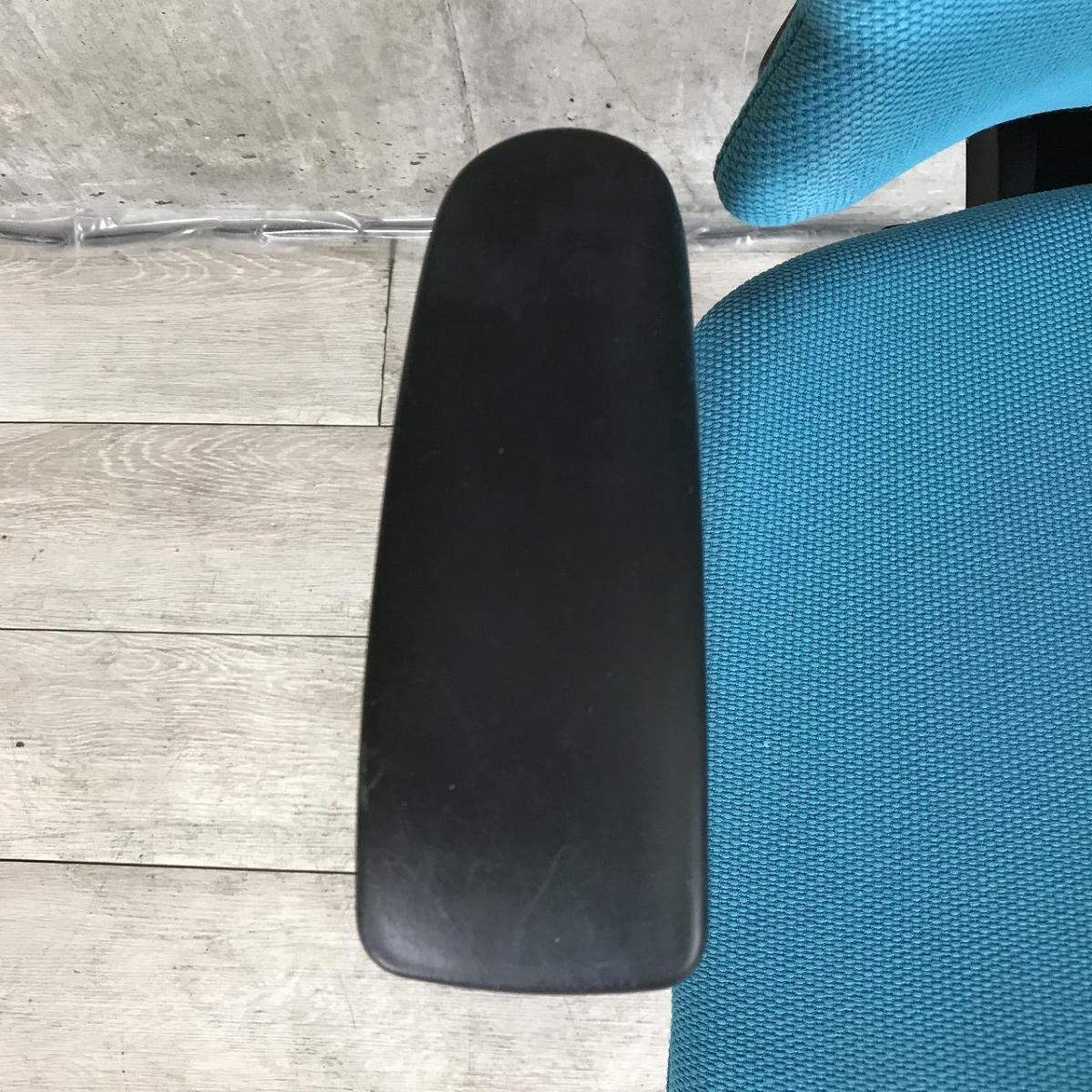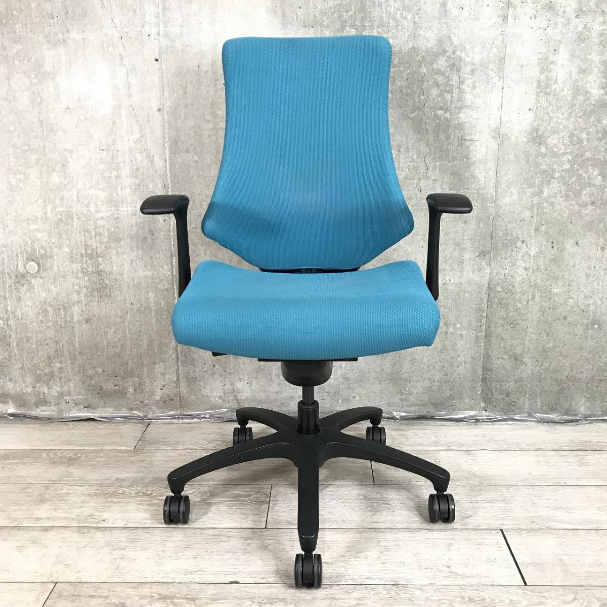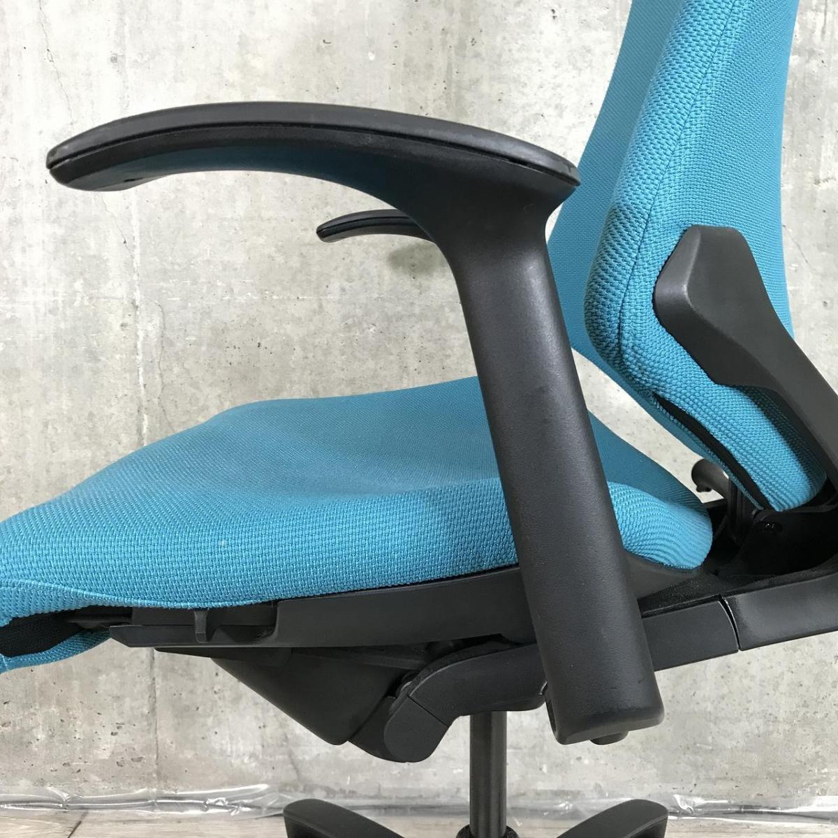 【厚めの座面が優しく包み込む!機能充実のハイパフォーマンスチェア!】■イトーキ(ITOKI)製 エフクロスチェア 肘付 ハイバック ■固定肘 ■ブルー×ブラックシェル- 品川・三田店