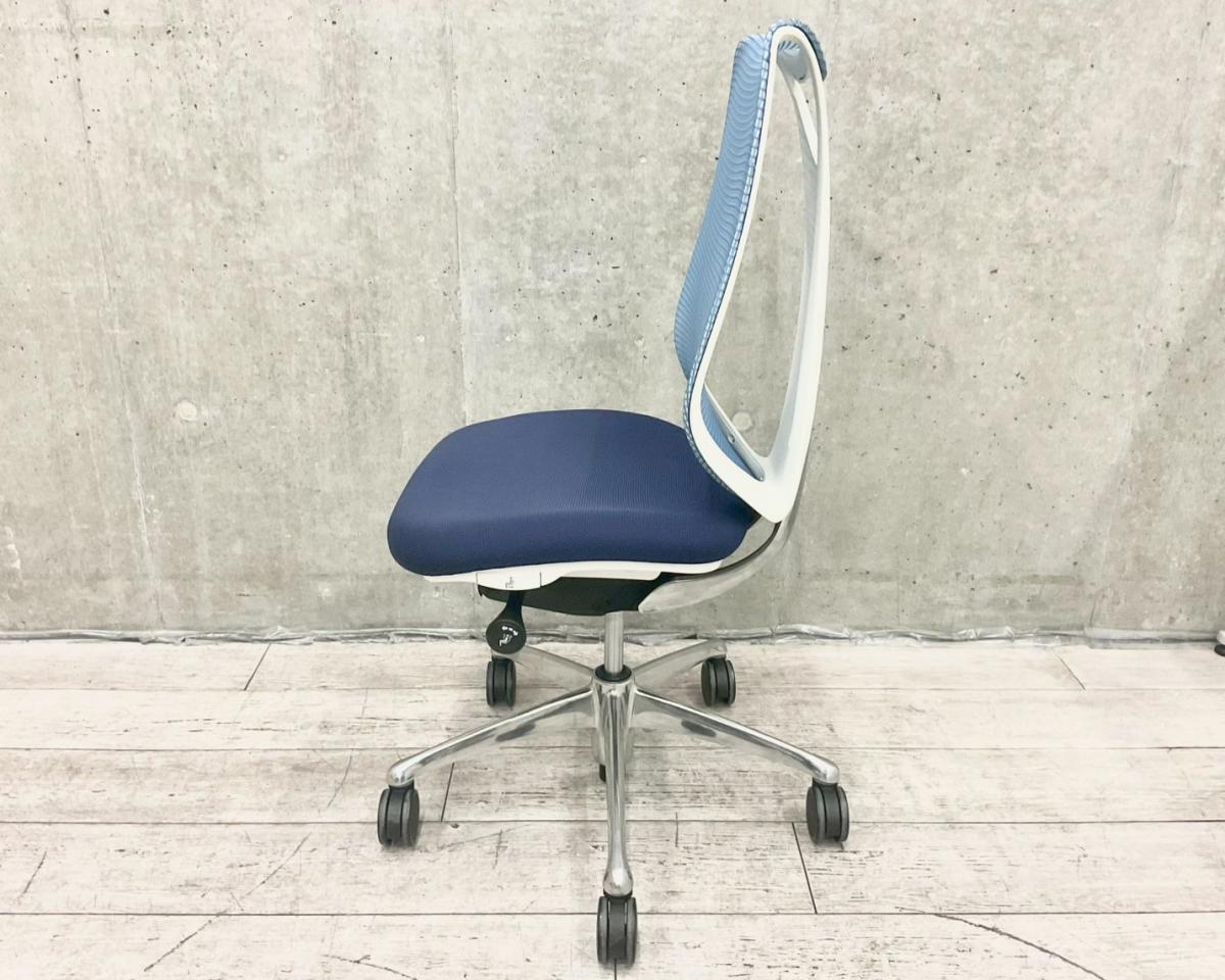 【在庫セール品】【定価約13万円】【前傾機能付きで作業効率アップ!オフィスにもご自宅用にも人気の一品!】■オカムラ(okamura)製 Sabrina(サブリナ) ハイバック 肘無 ■背面メッシュ ■背:アクアブルー /座:ダークブルー × ホワイトシェル